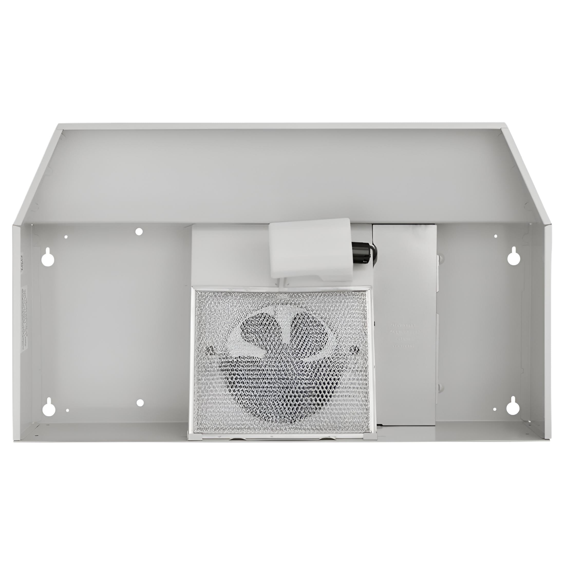 Provides installation flexibility with 4-way convertibility to fit virtually all applications Simple to use rocker switches let you adjust the fan speed and the light setting separately Two fan speeds help you tackle a variety of venting jobs 160 – 190 CFM blower helps quickly remove smoke and other cooking odors from the air Vertical and horizontal exhaust option lets you connect the ductwork to the top or rear of the range hood Removable, reusable, dishwasher-safe aluminum mesh filter for easy cleaning and maintenance; supports ductless filtration via non-ducted filter (purchase separately) Uses up to a 75-Watt in incandescent light to brightly illuminate the cooking area (bulb sold separately) Includes a 3-1/4 in. x 10 in. damper/adapter and a 7 in. round adapter for easy installation (7 in. damper sold separately) Enclosed light and fan/filter assemblies, mitered corners and hemmed edges for good looks and easy cleaning One year limited warranty