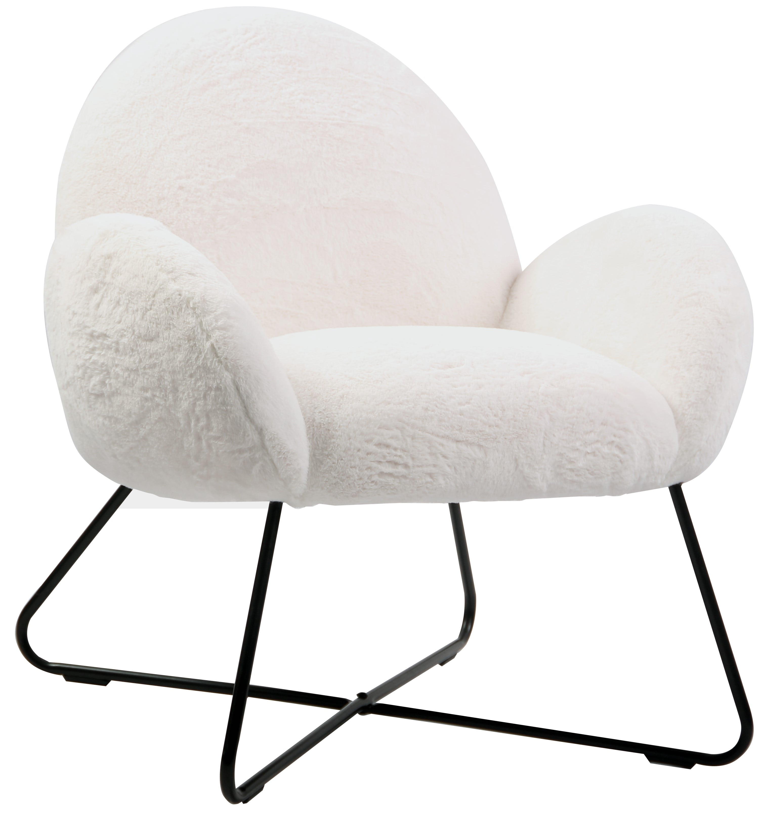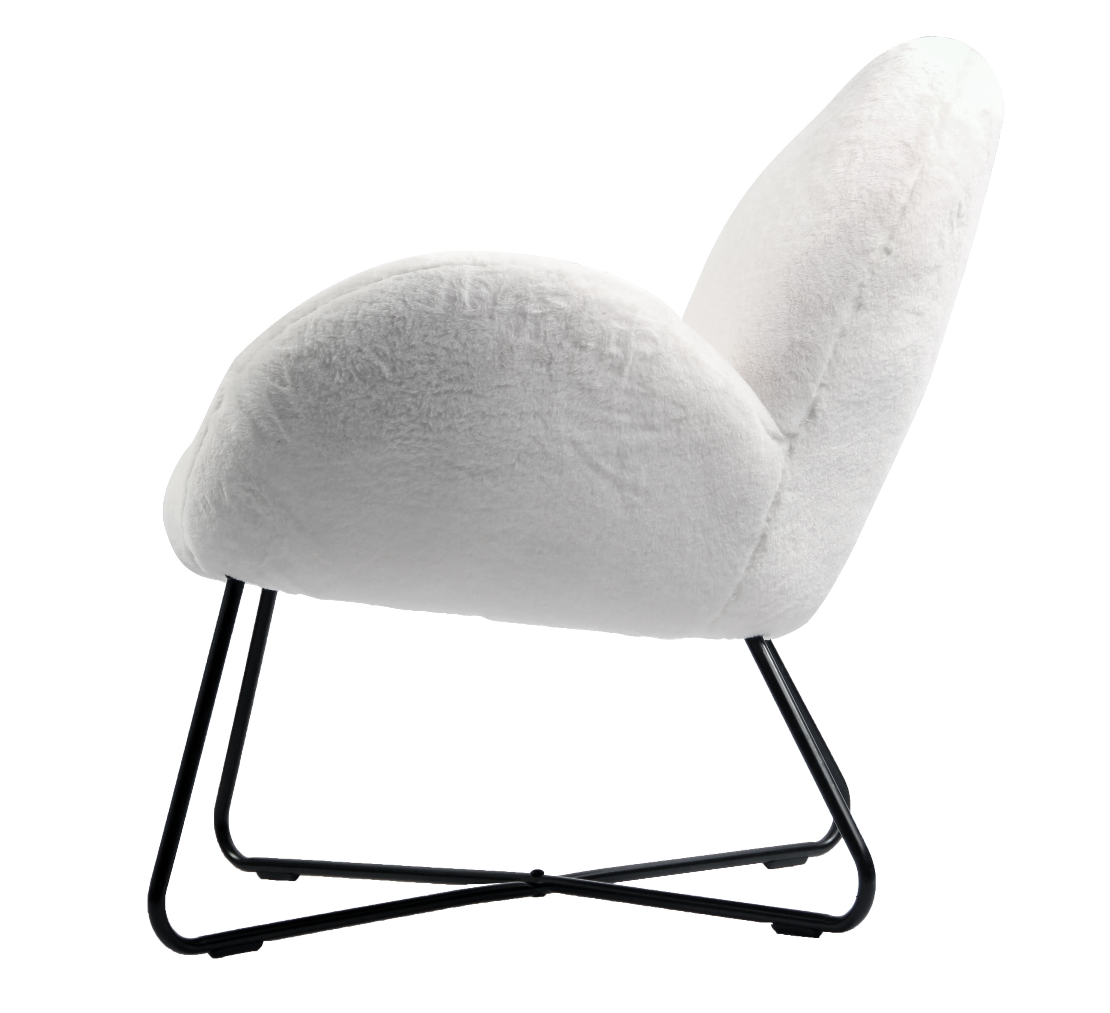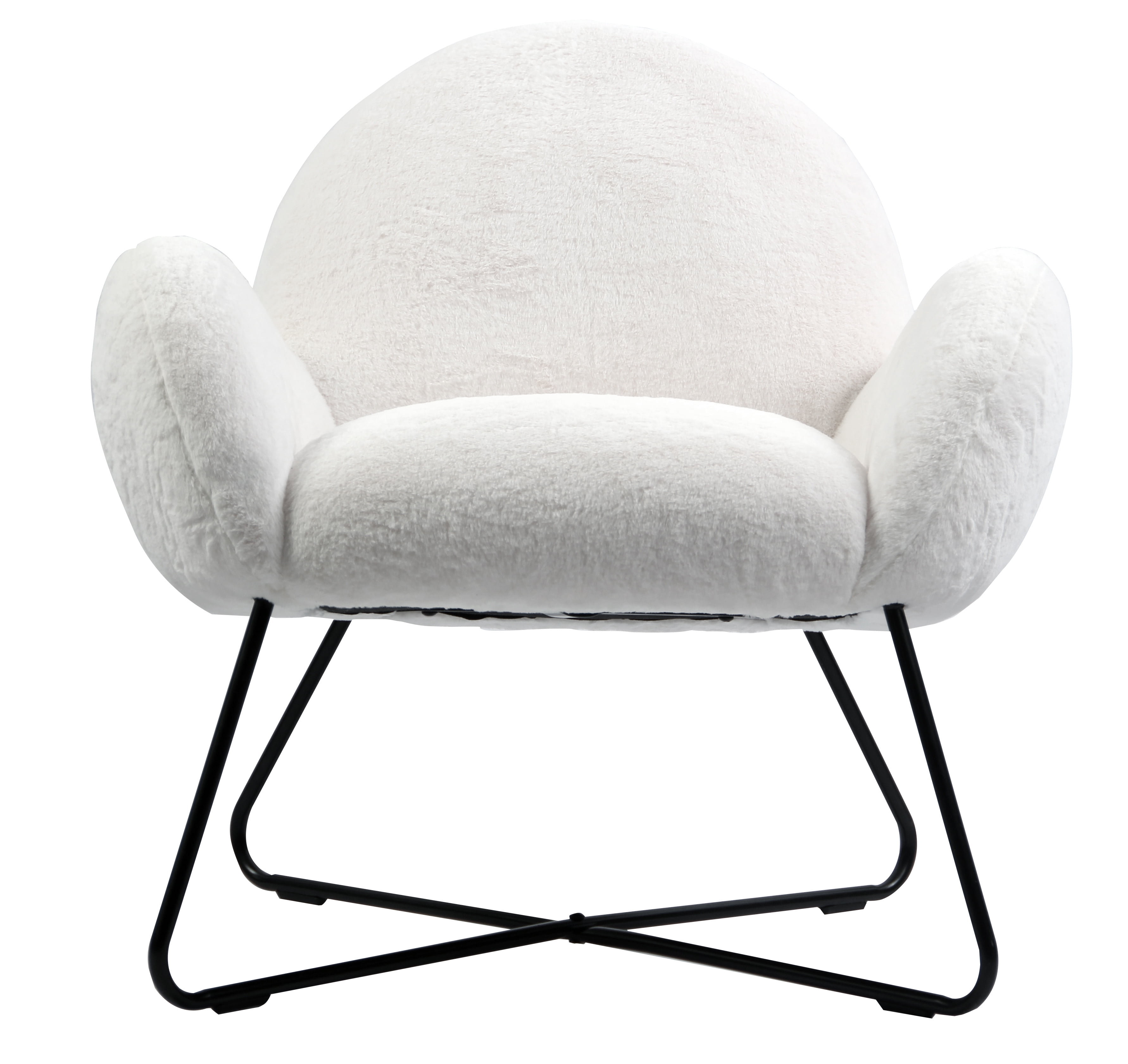 MODERN ACCENT CHAIR: Add style and comfort to your home with this cozy accent chair PLUSH FABRIC: Upholstered chair features white sherpa fabric for a plush feel CONTEMPORARY DESIGN: X-shaped matte black base gives the eye-catching design a contemporary look COMFORTABLE SEATING: With its curved arms and back, this modern chair conforms to your body and adds comfortable seating to your living room, bedroom, or anywhere else you need it IDEAL SIZE: Measuring 31.5″ x 29.92″ x 32.28″, this chair is great for small spaces that need a stylish accent