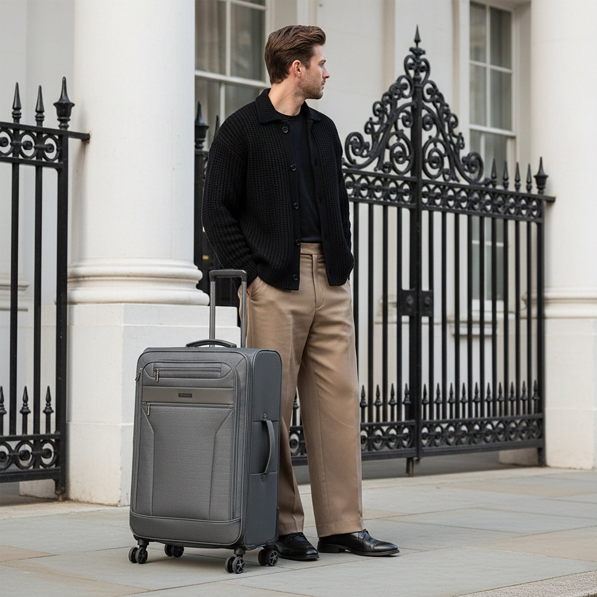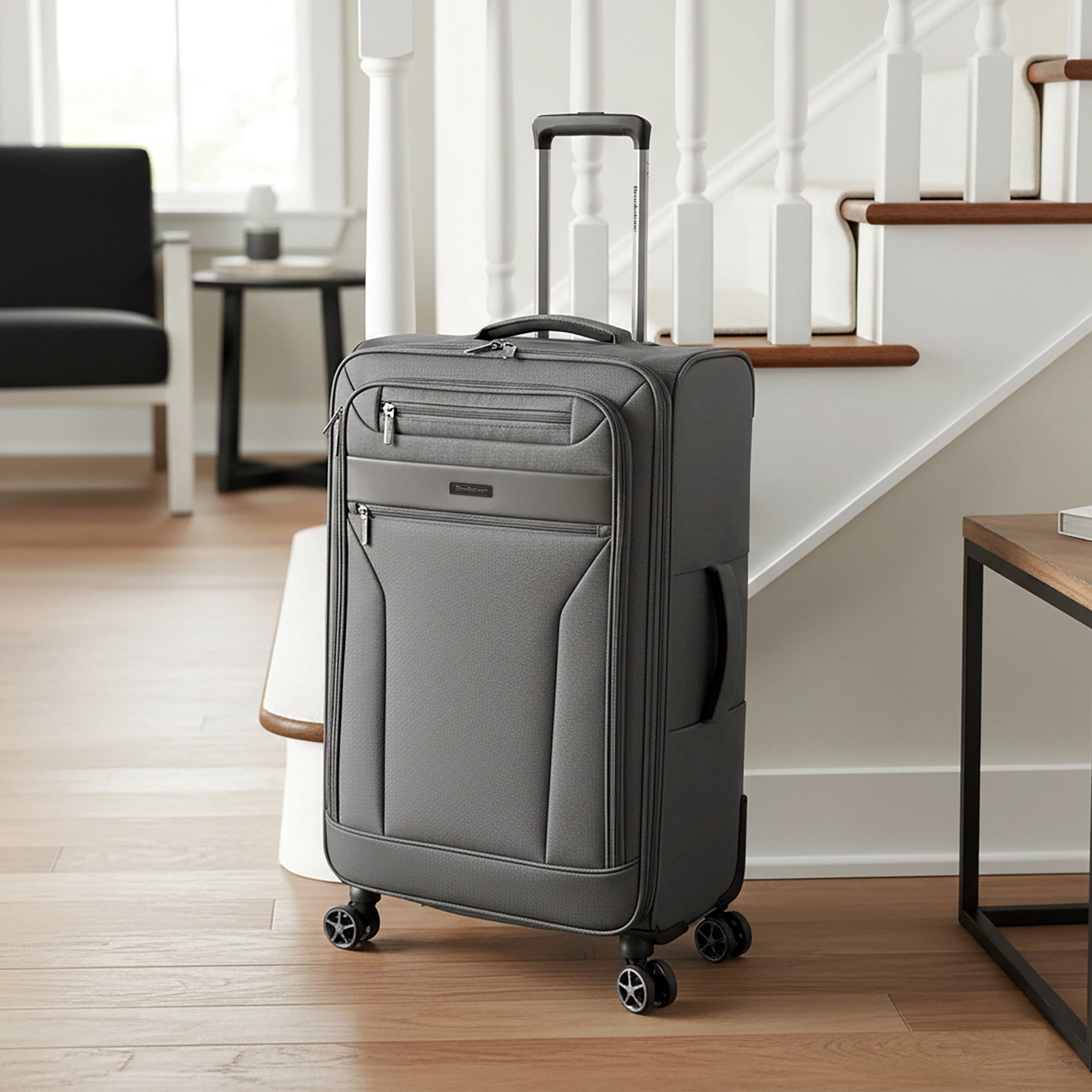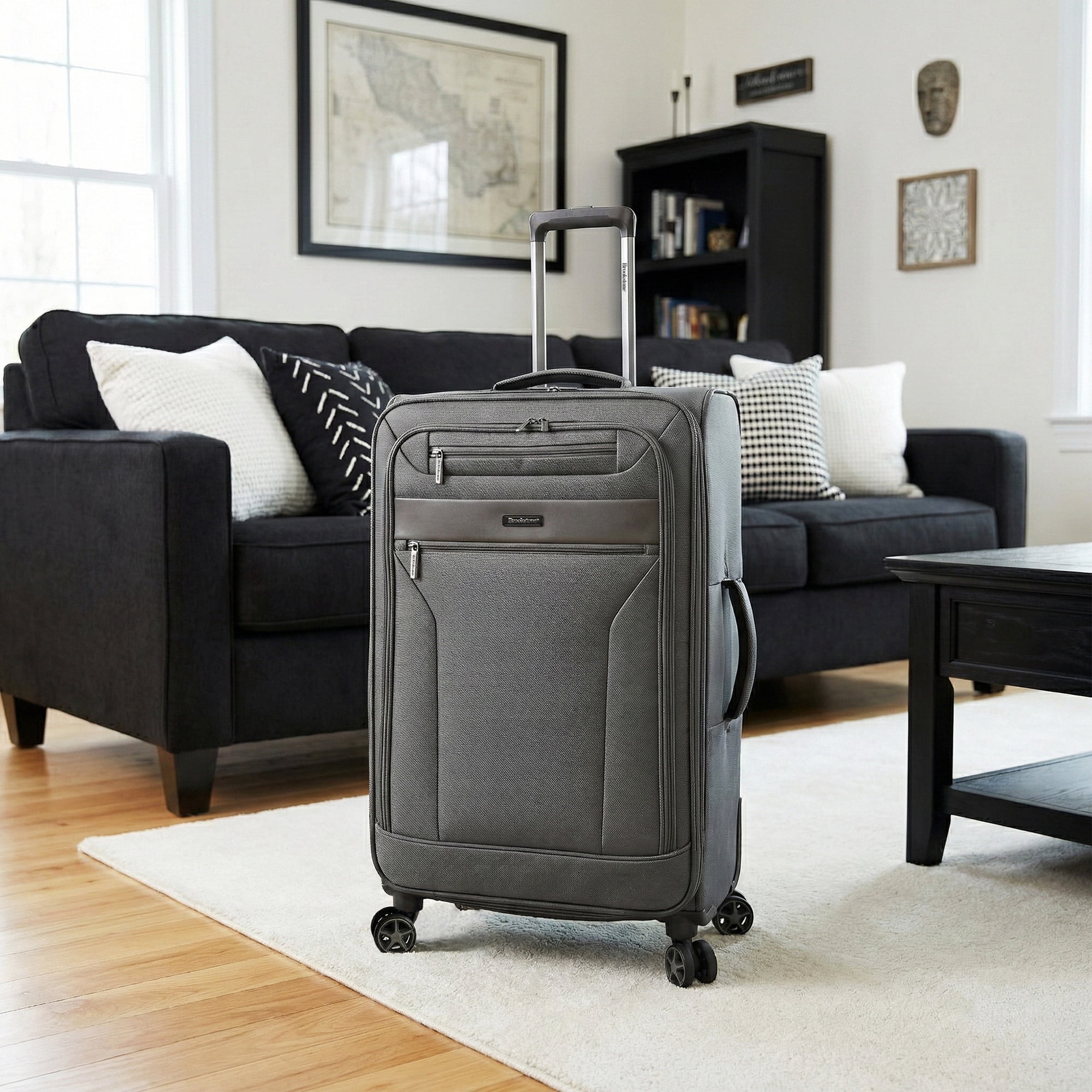 Travel in style with the Harbour 22″ Carry-On Softside Spinner Luggage by Brookstone. This versatile bag features a removable toiletry kit and is expandable for extra packing space, making it perfect for short trips or weekend getaways. Constructed from high-density polyester fabric, it combines durability with a sleek design. The 8-wheel 360-degree spinner system ensures smooth maneuverability, while the lightweight frame and push-button aluminum trolley handle provide ease during travel. Top and side carrying handles make lifting a breeze, and the fully lined interior, complete with a mesh pocket and tie-down straps, keeps your belongings organized.