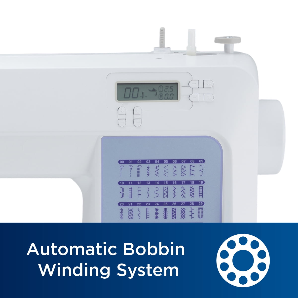 Includes 70 built-in stitches, including utility, decorative, heirloom, and quilting stitch functions, and 7 auto-size buttonholes Easier than ever to use, the needle threader reliably pushes the thread through the needle Includes a wide table, 10 sewing feet plus a quilt guide, protective hard case, and more Durable metal frame, quality construction allows your machine to tackle any project ranging from thick denim to heavy quilts The needle is fixed in place while you work, allowing for cleaner stitching and even lines A larger workspace with increased width in needle-to-arm space allows users to work on larger projects, including quilts Condition: New Machine Type: Computerized Sewing Machine Offering free technical support via online, live chat, or phone for the life of your machine