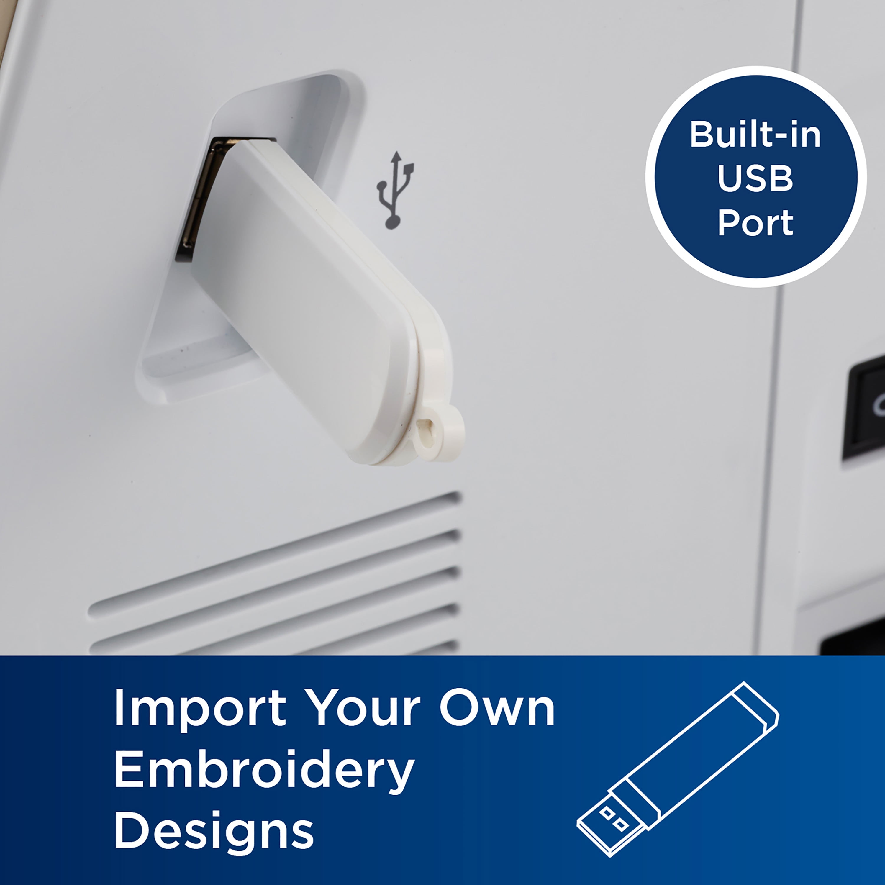 Brother PE550D 4 in x 4 in Embroidery Machine with Built-in Disney Designs: 125 Built-in designs: Featuring 125 Built-in designs including 45 Disney designs, the PE550D allows you to bring magic to any project 9 Built-in fonts: Personalize your projects with 6 English and 3 Japanese lettering font styles USB Port: Import your embroidery designs into your PE550D’s built-in memory through the USB port Large color touchscreen: Preview your designs before embroidering with the large, 3.2 inch LCD color touchscreen display 4 in x 4 in Embroidery field: This embroidery-only machine comes with a 4 in x 4 in hoop, an embroidery foot and built-in alignment tools The PE550D is an embroidery machine and does not function as a traditional sewing machine For beginner to advanced users Specifications: UL/CSA Listed Voltage: 110v Built-in-Designs: 125 Included Embroidery Hoops: 4″ x 4″ On-Screen Editing: Yes Material: Plastic, Metal Carton Dimensions (W” x D” x H”): 16.535″ x 21.181″ x 15.512″ Unit Dimensions (W” x D” x H”): 16.5″ x 12.08″ x 7.76″ Unit Weight (lbs): 14.99 What’s in the box: Brother PE550D Embroidery Machine 1-4″x4″ hoop 1-embroidery arm 1-embroidery foot