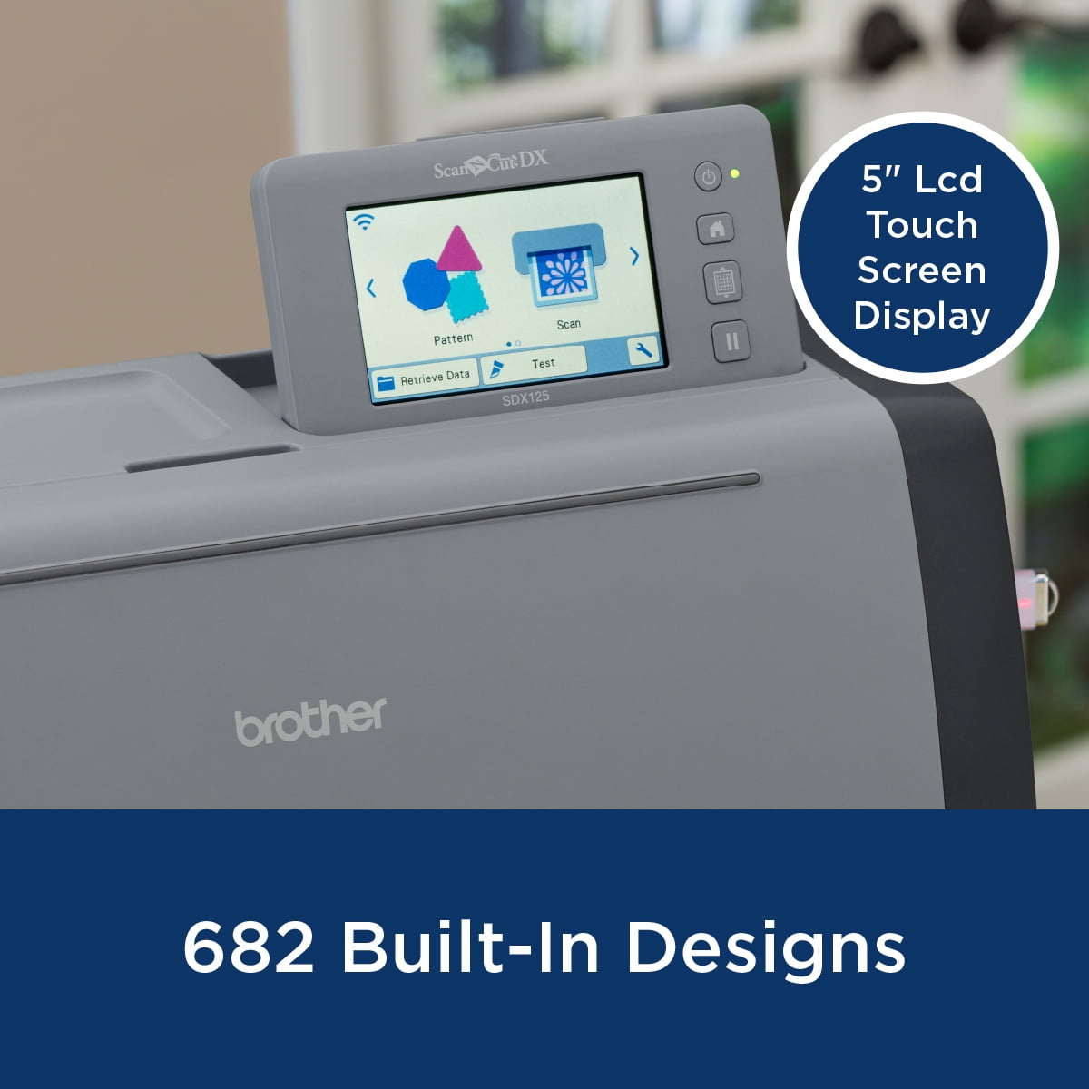 Brother ScanNCut DX SDX125e Electronic Cutting Machine:No Material Selection Required: The SDX125EGY has revolutionary Auto Blade technology which can detect the thickness of material, no blade adjustment and material selection required. Always perform a trial/test cut to confirm a successful cut.Built-in Scanner: ScanNCut is the only series of home and hobby cutting machine with a built-in scanner, scan hand-drawn designs, ideas, concepts for more personalization.Optional use of Computer and Mobile Device: 680 total built-in designs, including 100 quilt patterns, and 9 letter fonts, has a generous 5” LCD display that allows you to do fast and easy edits, adjustments, or rewrites to your designs. Additional designs and patterns can be found on the Brother free software CanvasWorkspace.Cuts up to 3 mm (0.1 in) Thickness: The Brother Home Electronic Cutting Machine effortlessly cuts materials up to 3mm thick such as paper, vinyl, fabric, balsa wood, chipboard, foam and felt