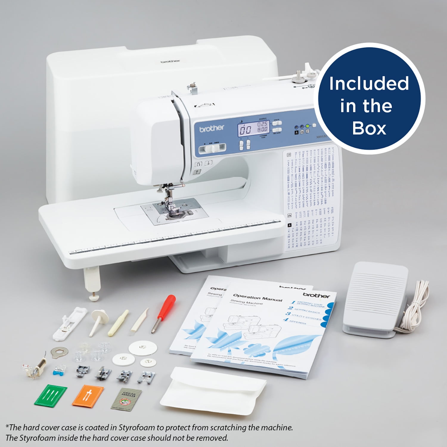 Brother XR9550 Computerized Quilting Sewing Machine with LCD Wide Table Condition: New Machine Type: Computerized Quilting and Sewing Machine LCD SCREEN: The intuitive LCD display allows you to easily choose your stitches and settings with the push of a button. AT YOUR SIDE SUPPORT: The XR9550 quilting and sewing machine comes with Brother At Your Side support offering free technical support via online, live chat or phone for the life of your machine. AUTOMATIC NEEDLE THREADER AND DROP-IN TOP BOBBIN: The Brother F.A.S.T. needle threading system takes care of threading the needle for you and a convenient, jam resistant drop-in top bobbin INCLUDED ACCESSORIES: Included with the XR9550 quilting and sewing machine is a protective hard cover, wide table, 8 sewing feet, instructional DVD and more 165 UNIQUE BUILT-IN STITCHES: The Brother XR9550 machine includes 110 built-in utility, decorative and heirloom stitches including 8 styles of auto-size buttonholes, plus 55 alphanumeric sewing stitches SUGGESTED USER: Beginner to Advanced Users