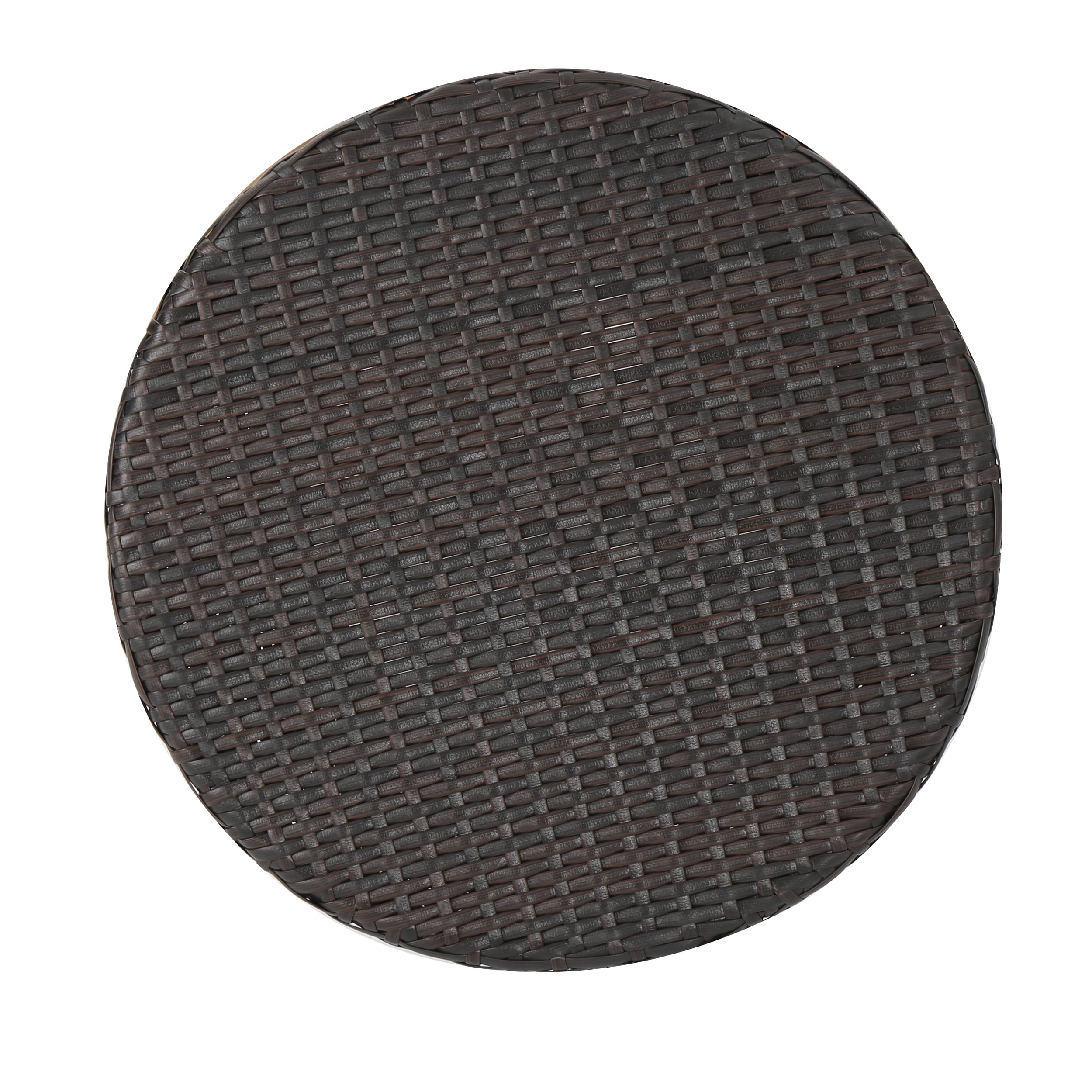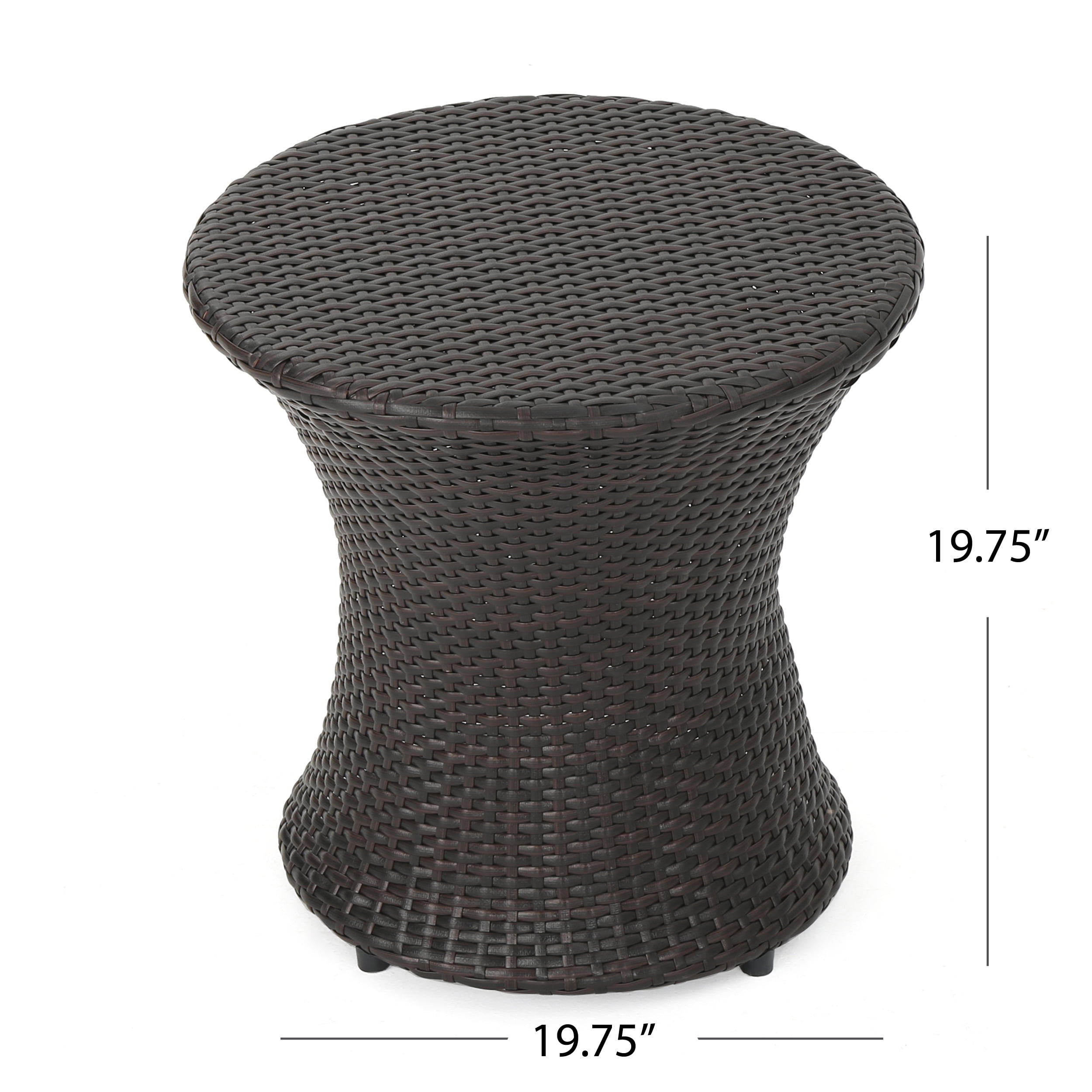 One (1) Table Materials: Metal and Resin Wicker Color: Multibrown No assembly required Dimensions: Table: 19.69 inches high x 19.69 inches wide 19.69 inches deep