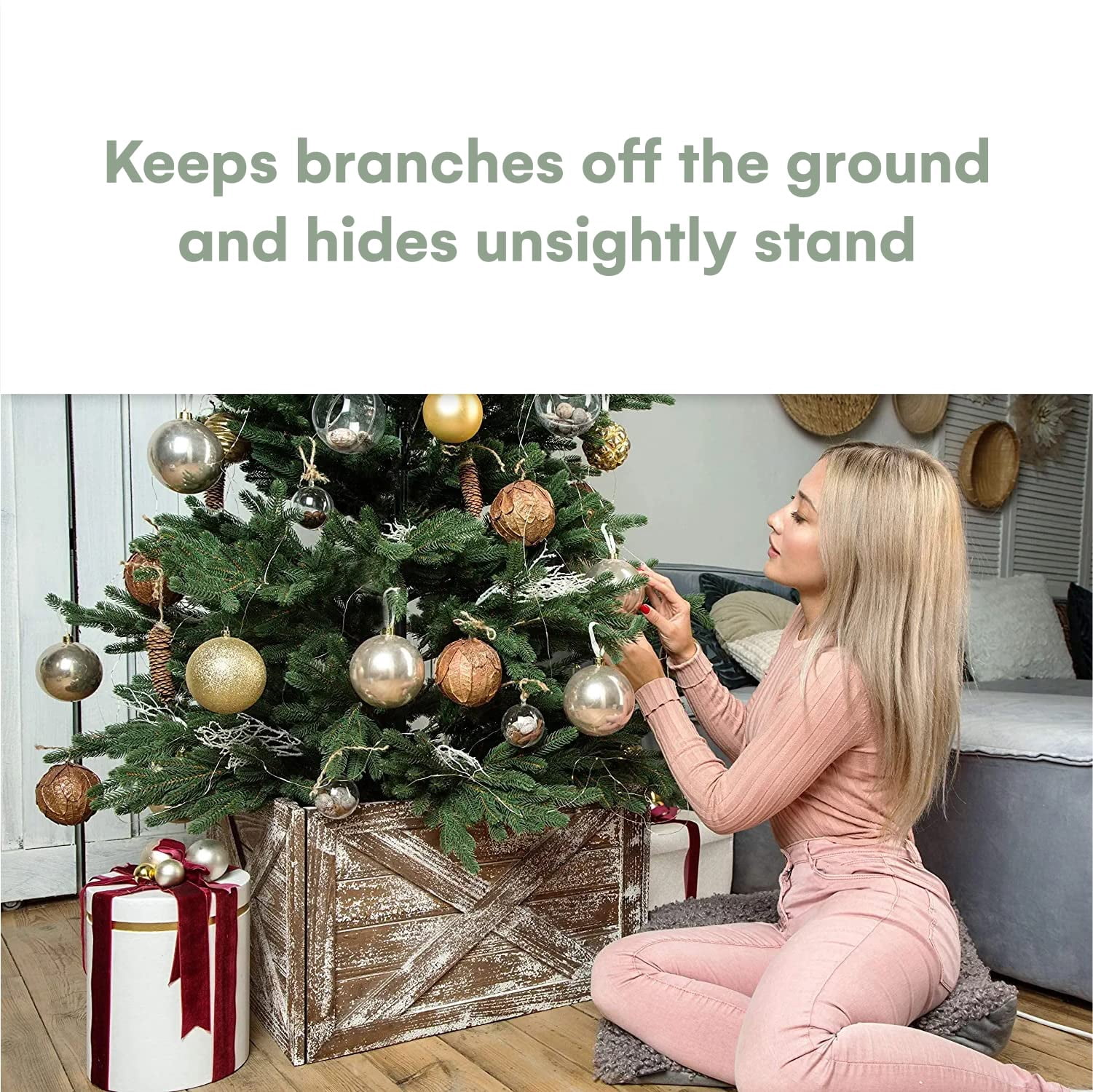Brown Wooden Tree Collar Box – 23.5 x 15 inch Christmas Tree Figurine Farmhouse Rustic Decor for Christmas