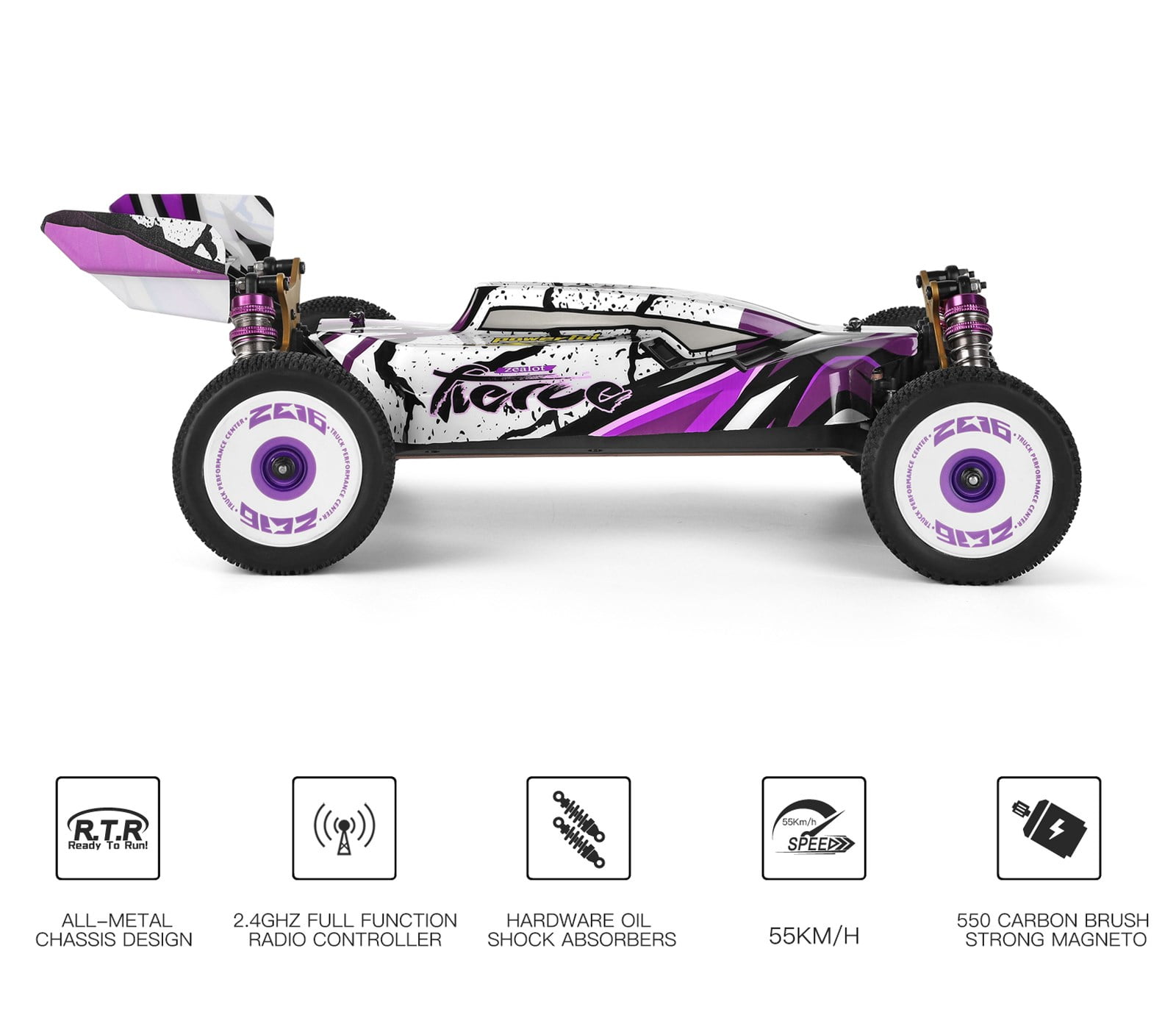 Exceptional Speed: Equipped with a powerful magnetic motor that enables the car to reach speeds of up to 37 mph, providing a thrilling racing experience. Advanced 2.4GHz Remote Control: Features a 2.4GHz radio system with anti-jamming technology, allowing for simultaneous racing on the same track with a control range of up to 328 feet. Durable Construction: Built with a high-strength aluminum alloy base, wear-resistant zinc alloy gears, and aluminum alloy shock towers for enhanced stability and a long lifespan. Versatile Performance: Includes hardware hydraulic shock absorbers, enabling the car to perform well on various terrains, such as beaches, snow, grass, mountain roads, and rocky paths. Comprehensive Racing Kit: Comes with everything needed to start racing right out of the box, including the RC car, remote controller, battery, charging cable, and a user manual, making it an ideal gift for speed enthusiasts.