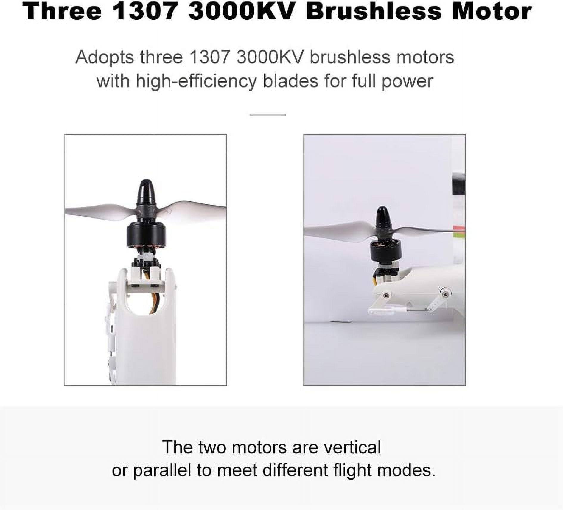 Advanced Durability: Constructed from impact-resistant EPO materials, reinforced with internal carbon fiber rods for enhanced resilience against impacts. Powerful Performance: Equipped with three 1307 3000KV brushless motors, high-efficiency blades, and high-precision digital servos for robust power and precise control. Versatile Flight Capabilities: Features a 6-axis gyroscope with air pressure settings for stable flight in 3D/6G modes, suitable for beginners and capable of vertical takeoff/landing, with multiple flight modes for diverse flying experiences. Extended Flight Time: Comes with a high-capacity 11.1V lithium polymer battery providing over 13 minutes of flight time, ensuring longer periods of enjoyment between charges.