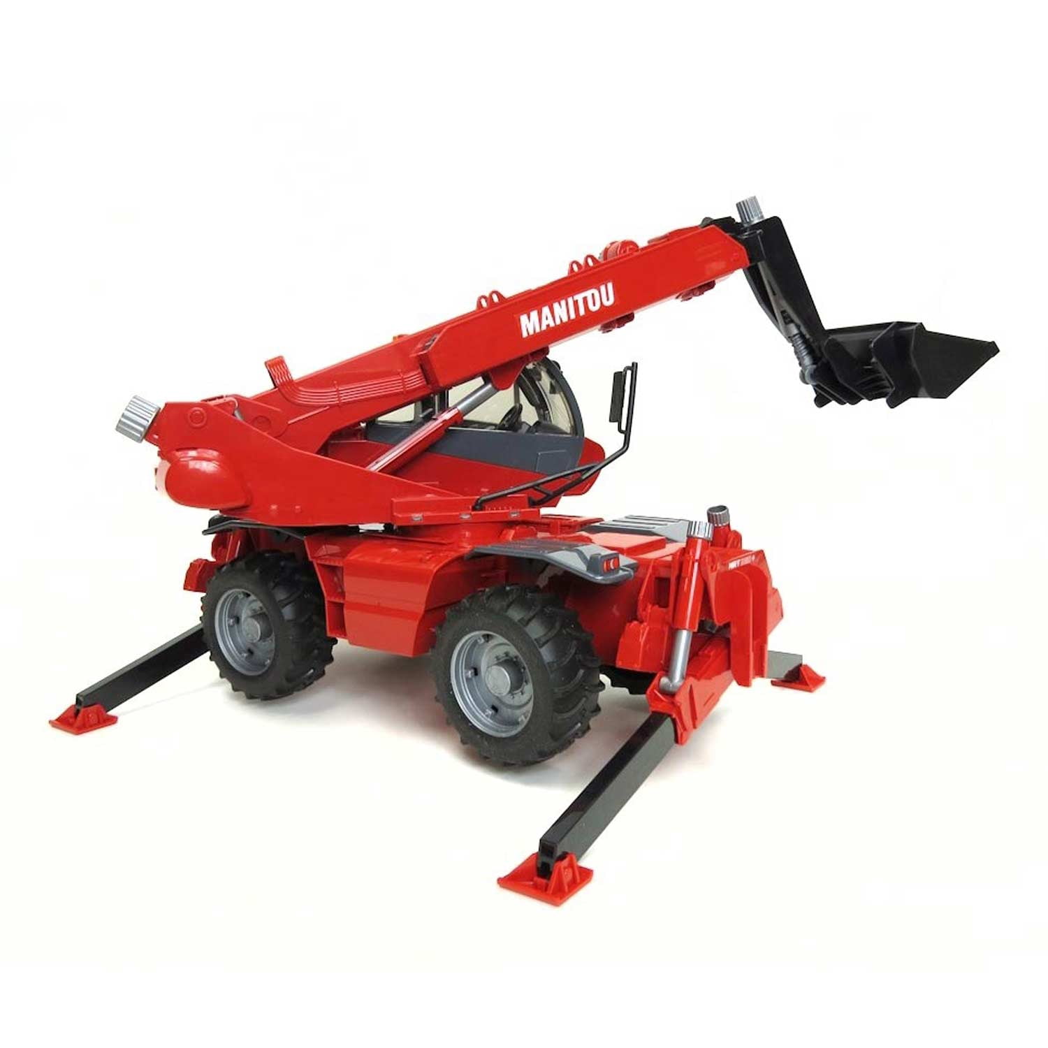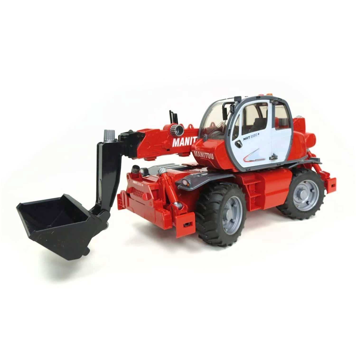 The truck’s cab can be rotated through 360°, allowing for easy material distribution to all sides of the construction site. The truck features four-wheel steering with a small turning radius. The handwheel for steering control is strategically placed behind the openable driver’s cab, ensuring easy reach during play. Attachments include Fork-lift Bucket Basket Approx dimensions 21 x 6.5 x 8 inches The toy features a telescopic arm that can be extended, allowing children to adjust the inclination level of the forks as desired, replicating the functions of the original Manitou MRT 2150 PRIVILEGE telehandler.