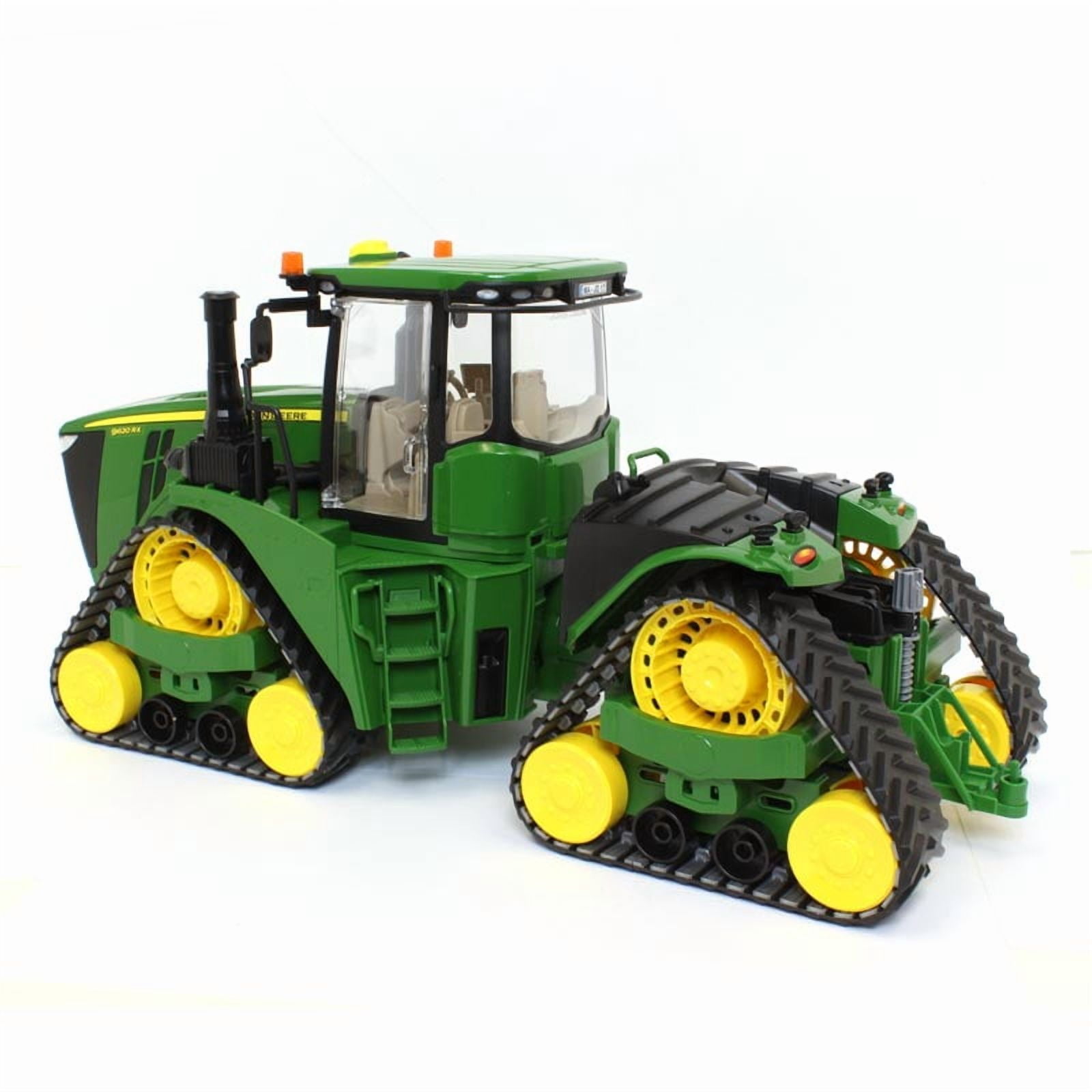 As demands to modern farms are ever increasing, it is more important nowadays to boost your machine’s output. The 9620RX is John Deere’s most powerful and largest crawler drive articulated tractor, Thanks to the Cummins Diesel 14.9L 6 cylinder engine output of up to 670 HP. The four crawler drives provides it with stunning tractive power and simultaneously The best possible protection for the soil. This vehicle is the perfect partner when heavy-duty pulling up to an amazing 12, 000 lbs. This impressive 162″ Tall tractor with its unique brooder attention to detail is now also available in our range at a mane gable scale of 1: 16, only 9.3″ Tall. Just like the real thing, The model features the recently developed crawler drive as well as the off-road articulated steering. The cab features one opening door and the impressive bonnet can also be folded upwards to showcase the massive engine. Numerous attachments from brooder agricultural range are suitable for the height-adjustable tow coupling.