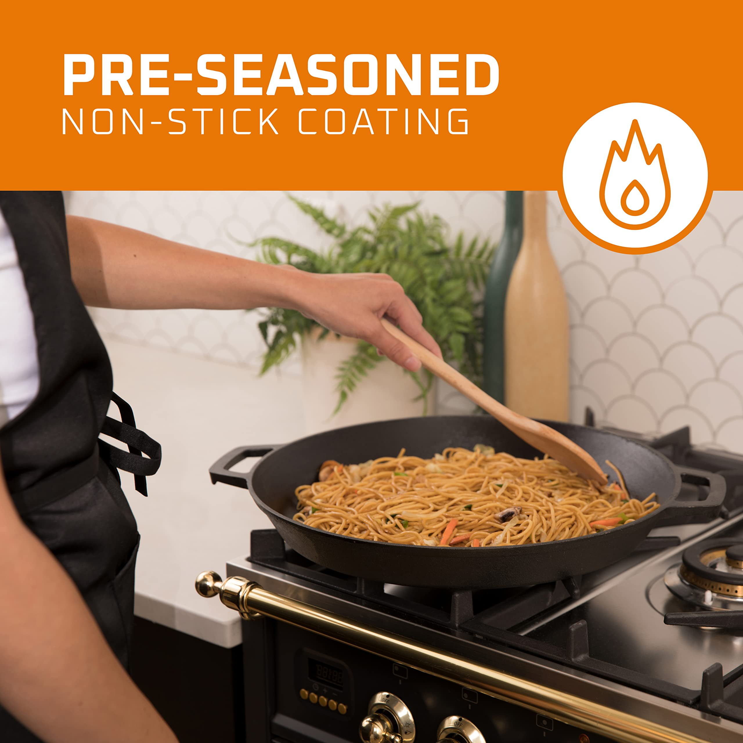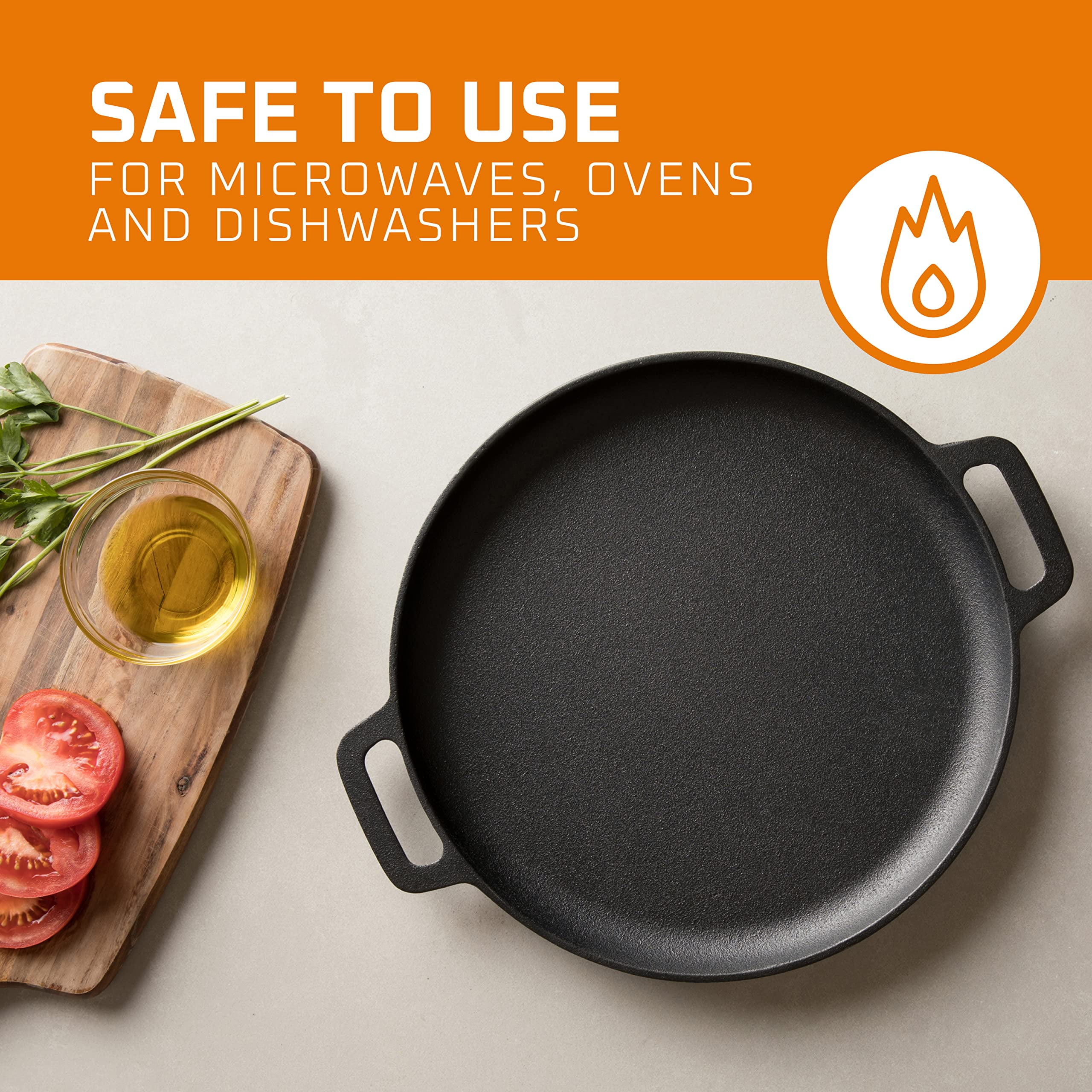 Bruntmor Pre Seasoned Cast Iron 16″ Skillet – Dual Handle – Black Pan for Grill, Deep Frying – Oven Friendly, Stovetop