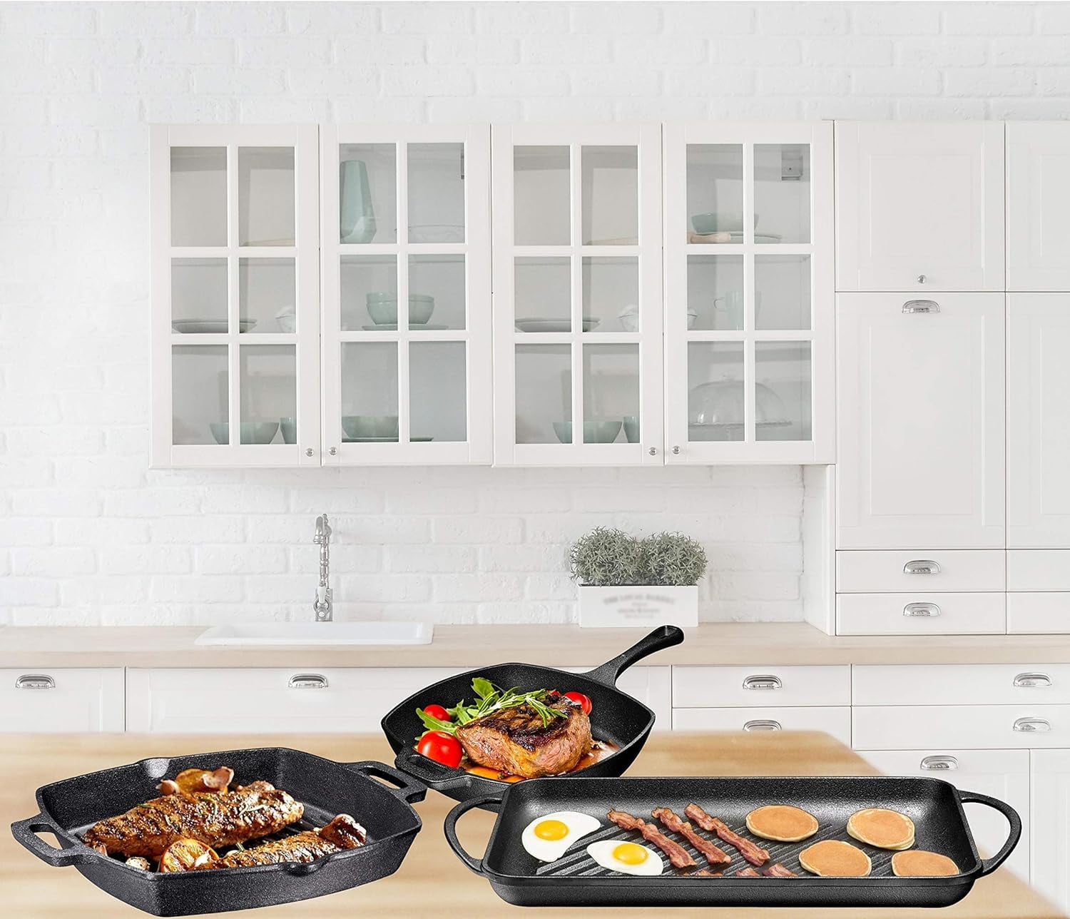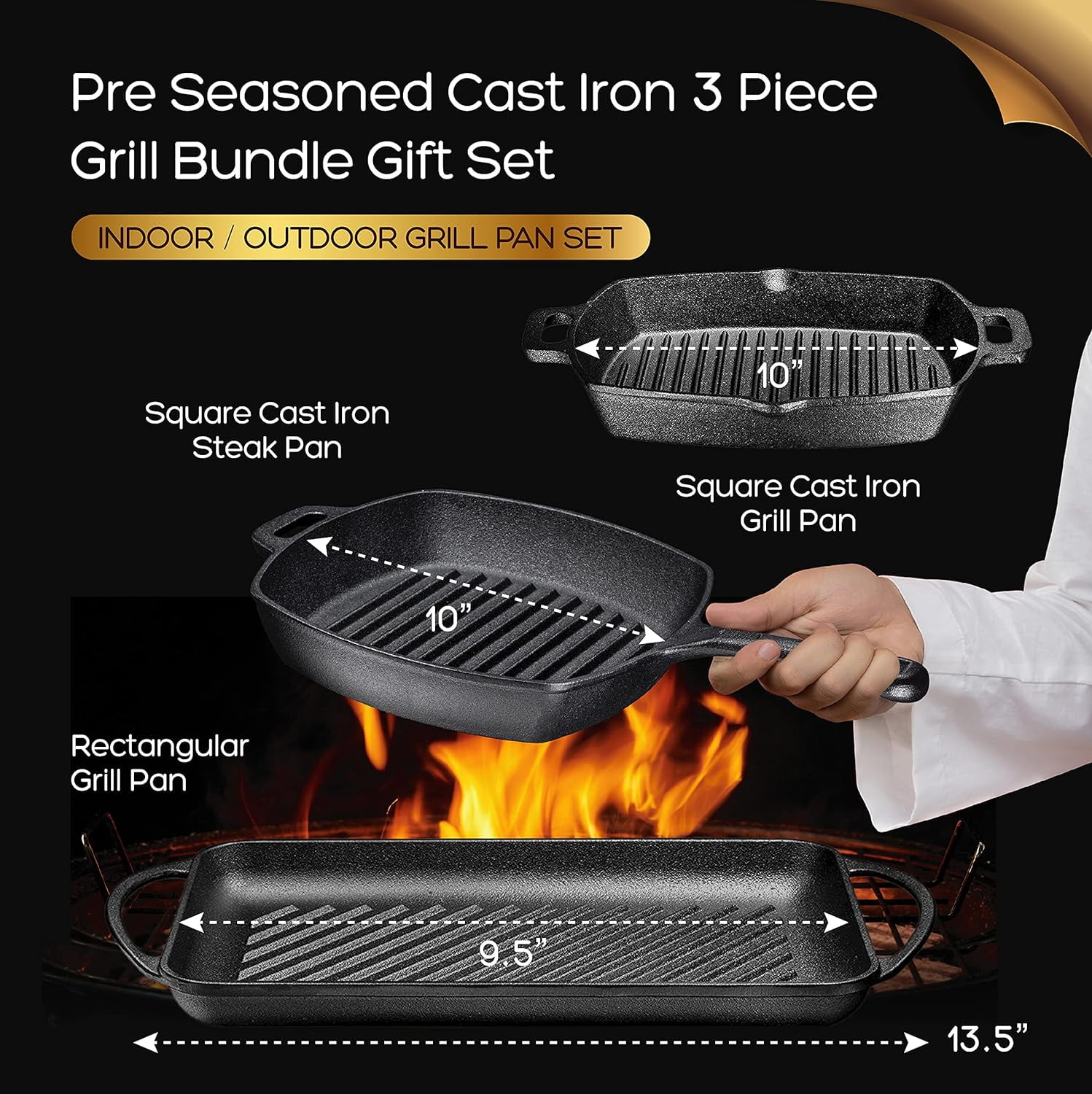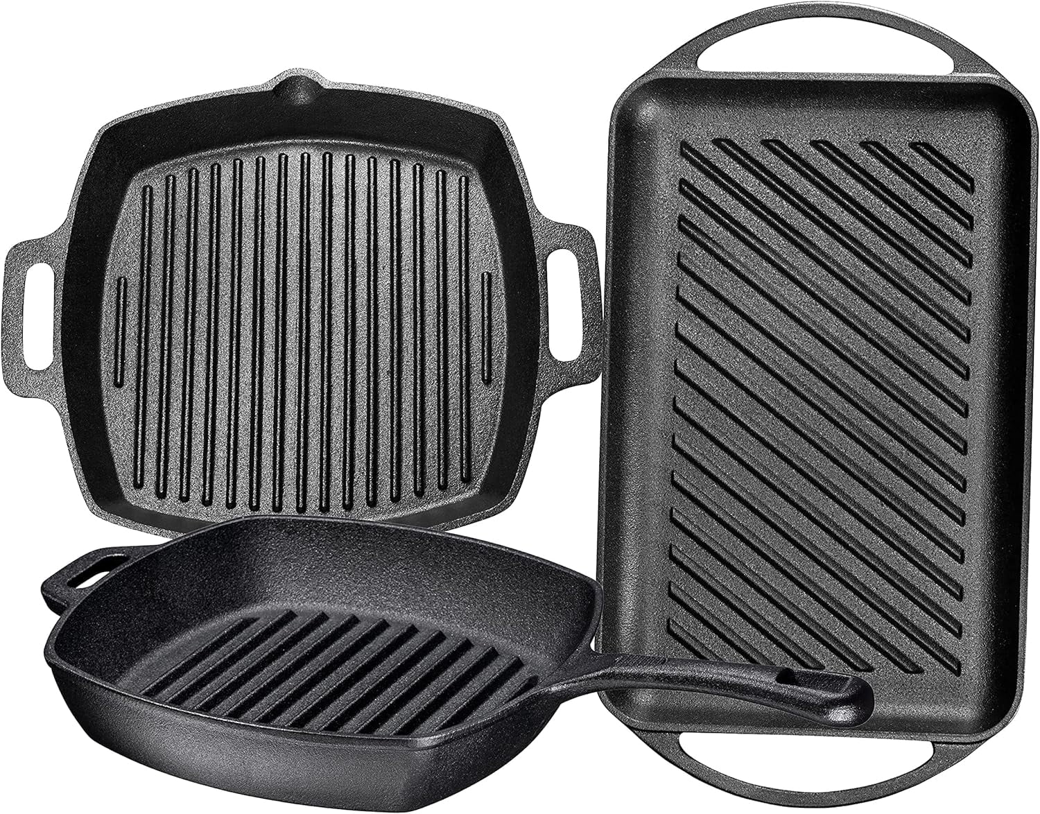 Bruntmor Pre Seasoned Cast Iron 3 Piece Grill Bundle Gift Set