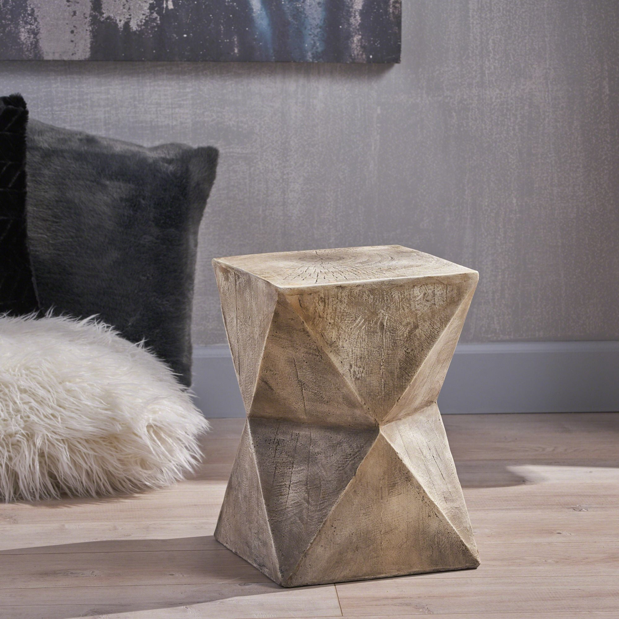 Includes: One (1) Accent Table Material: Lightweight Concrete Finish: Light Gray