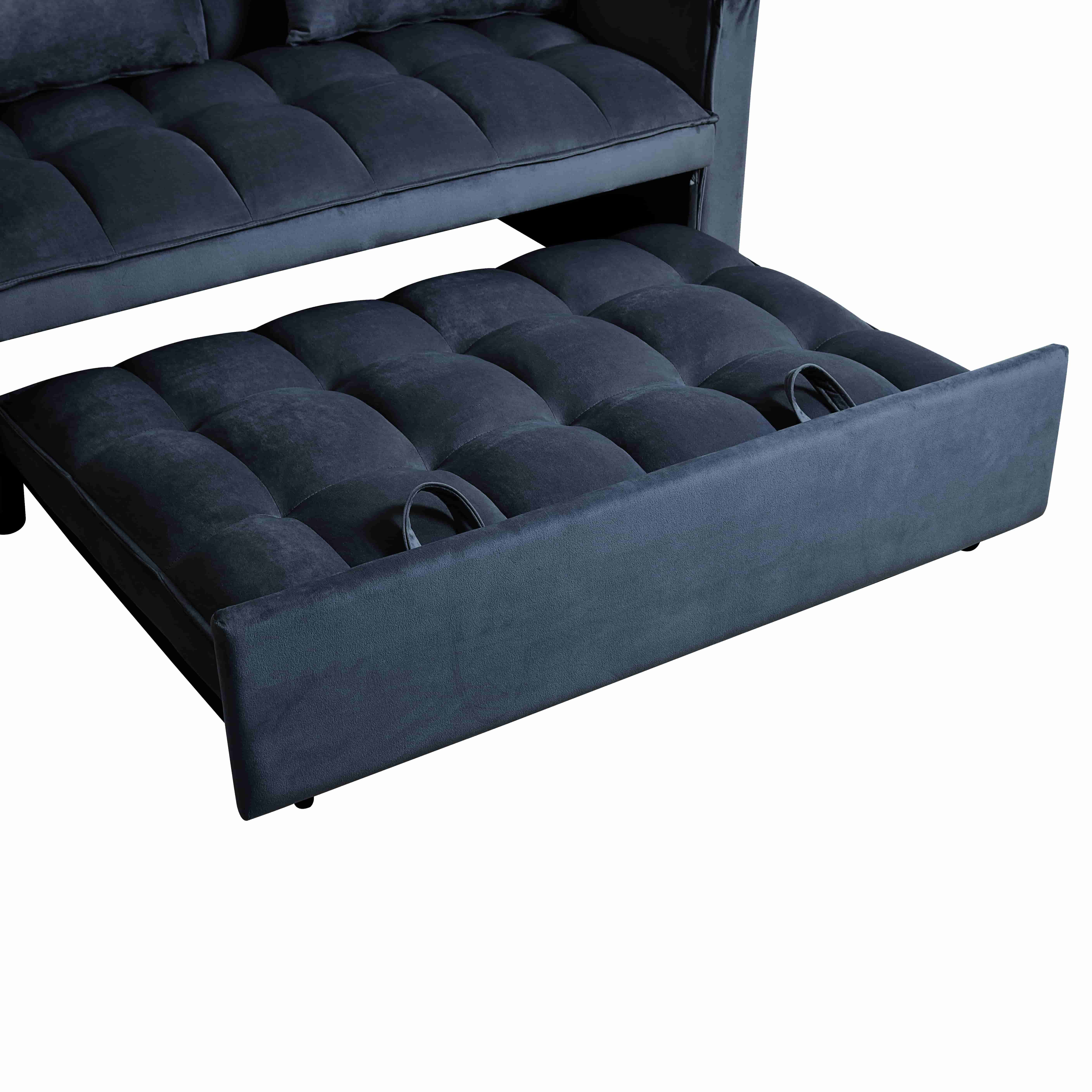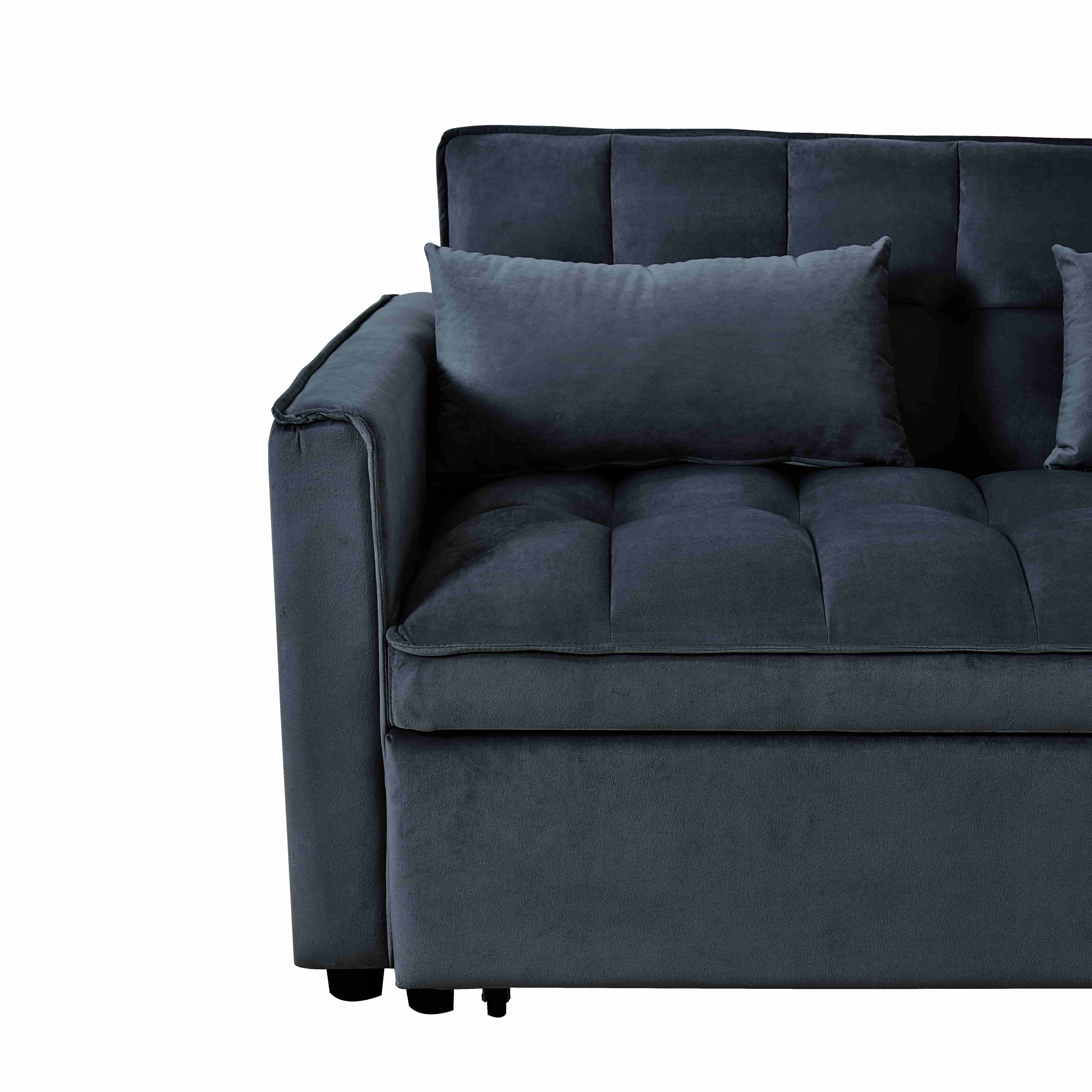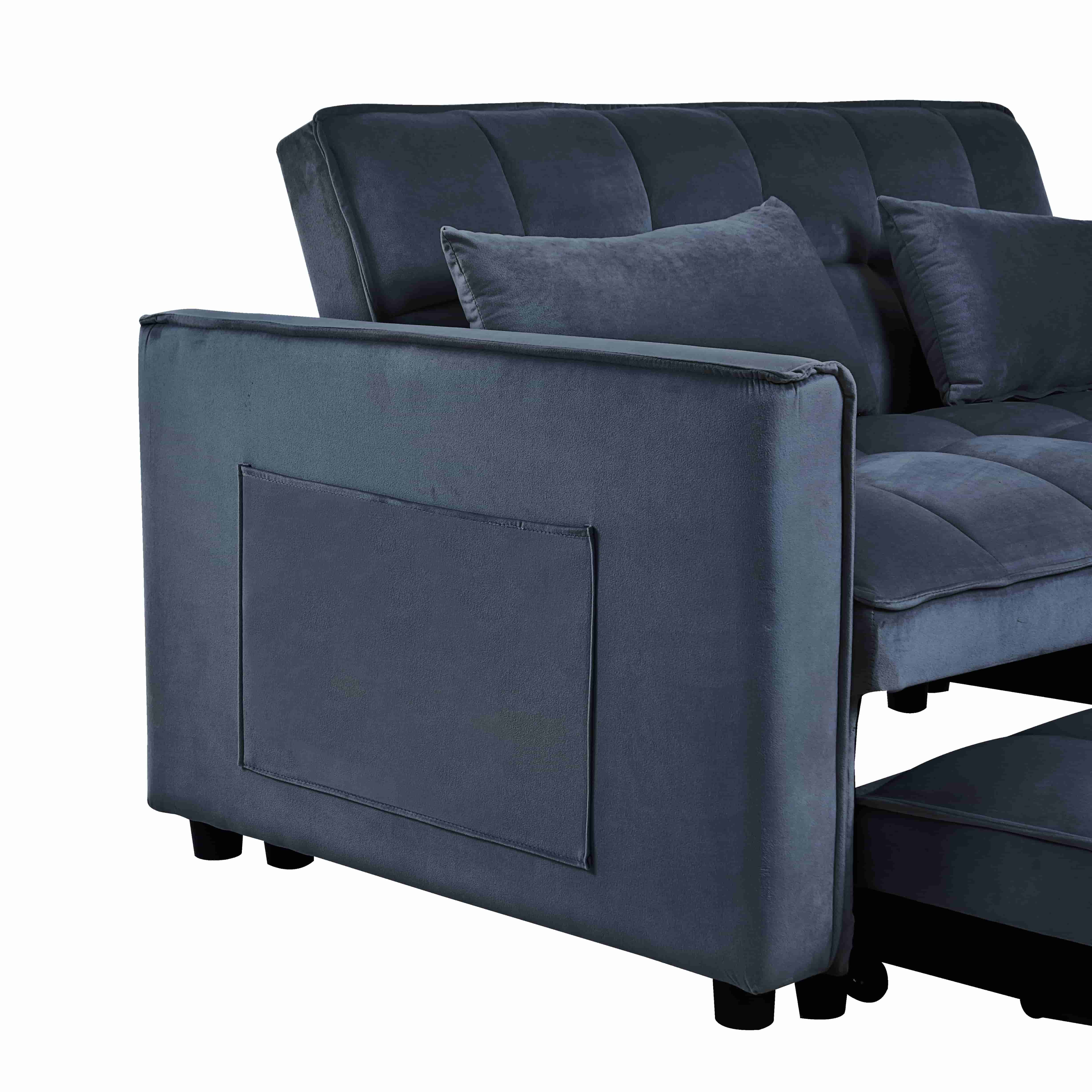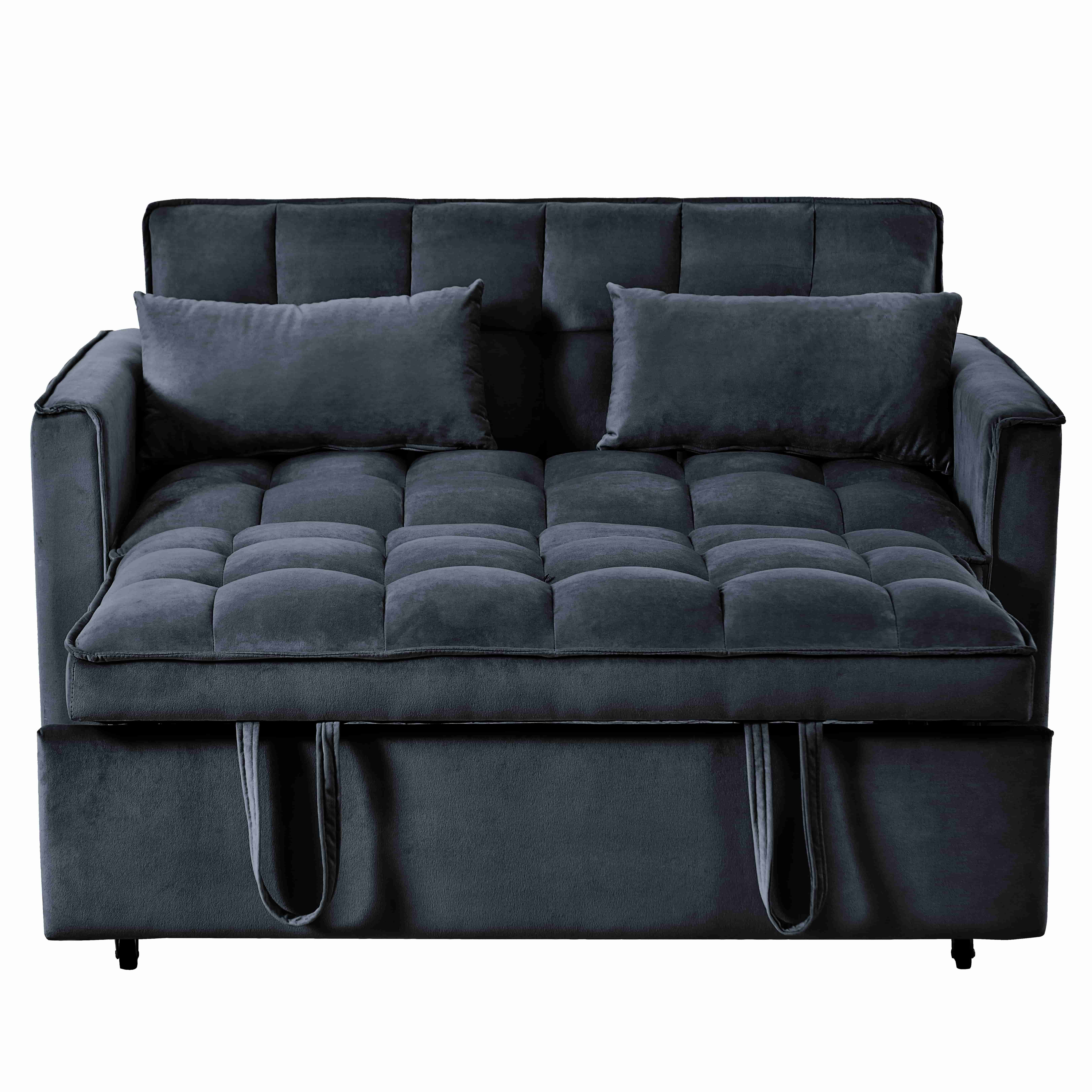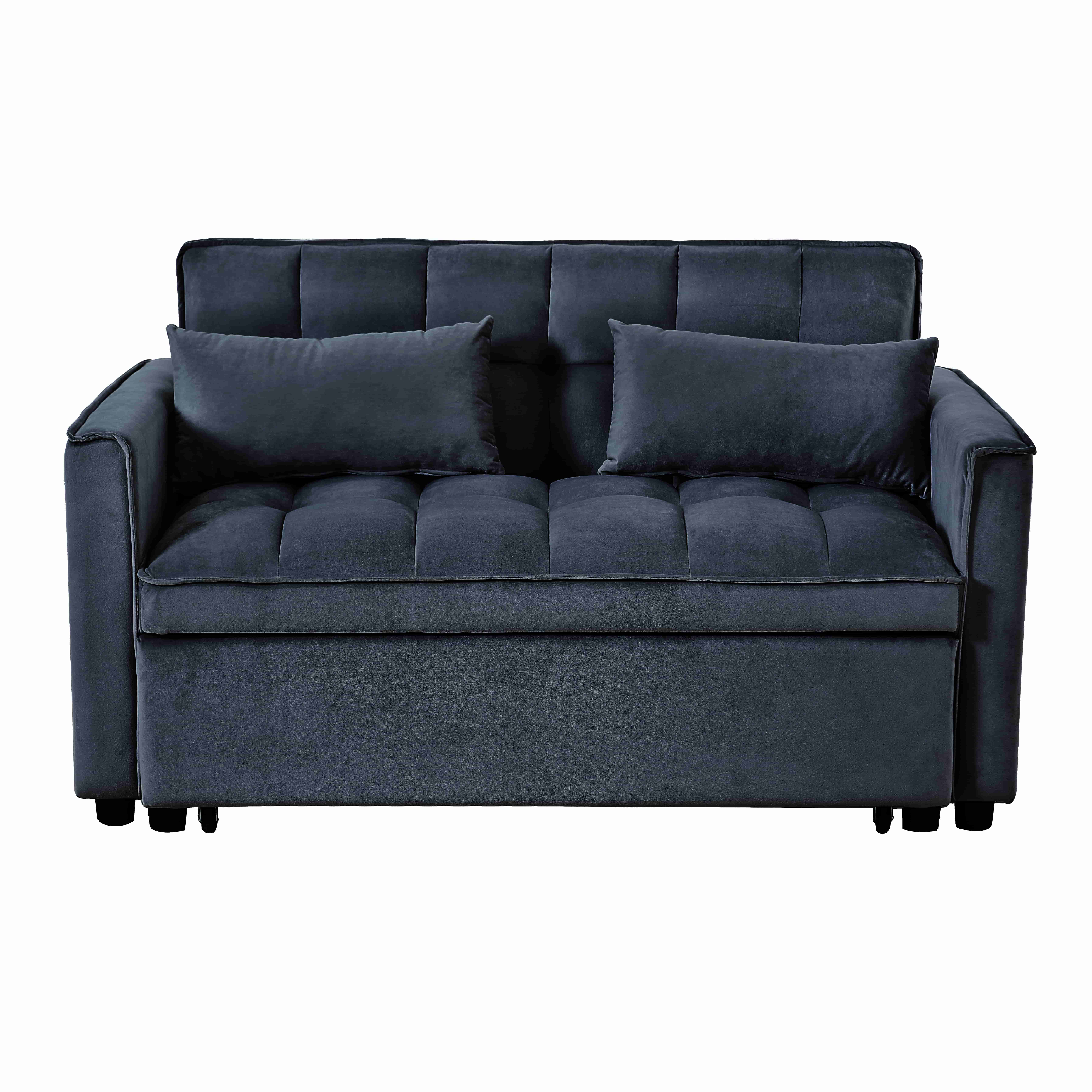 This 54-inch pull-out sleeper sofa bed offers a seamless transition from a stylish sofa to a twin-size bed, making it an ideal solution for accommodating overnight guests with ease. Simply pull the straps along the edge to convert it into a comfortable sleeping space, perfect for small apartments, home offices, or guest rooms. Sturdy & Durable Construction: Crafted with a solid wood frame, this sofa bed ensures long-lasting stability and support. The robust build guarantees durability, whether used for daily seating or as an occasional bed. Luxurious Velvet Upholstery: Upholstered in soft velvet fabric, the sofa provides a plush and inviting seating experience. The refined design features piping-edged detailing on the arms, seat cushions, and back cushions, enhancing both aesthetics and comfort. Two decorative pillows are included for added style and relaxation. Adjustable Reclining Functionality: The 3-angle adjustable backrest allows you to customize your seating position for optimal comfort—whether sitting upright, lounging, reading, or watching TV. offering versatility for various living needs. Convenient Storage Side Pocket: A built-in side pocket provides practical storage for small essentials such as remote controls, magazines, or tablets, keeping your space neat and organized. Quick & Hassle-Free Assembly: Designed for convenience, this sofa bed arrives with clear instructions and all necessary tools, allowing for straightforward assembly in approximately 10–15 minutes. Ideal for Compact Spaces: With its space-saving design and multifunctional capabilities, this sleeper sofa is an excellent choice for studio apartments, dorm rooms, home offices, or guest rooms, combining comfort, functionality, and modern elegance. Product Type: Single Box Product Main Color: Black, Dark Blue, Medium Gray, Pink, Silver Gray, Green Main Material: Velvet Filler: Foam Product Style: Casual Wood Type: Eucalyptus Wood Tone: White Upholstery Materiat: Velvet Frame Material: Wood Arm Style: Square Arms Seats: 2 Seat Seat Plushness: Medium-Soft Customize: Yes Product Dimensions (in.): 54.00 * 38 * 31 Product Weight (lbs.): 105.00 Package Size (in.): 47.00 * 39 * 13 Package Weight (lbs.): 114.00 Product Care: Wipe clean with dry cloth, do not use strong liquid cleaners Country of Origin: Viet Nam Weight Capacity: 300 LBS each seat *** Please review the product dimension and check if it’s suitable for your living room. *** It might be have color difference due to photograph lighting, or computer monitor displayed. It’s not quality issue.
