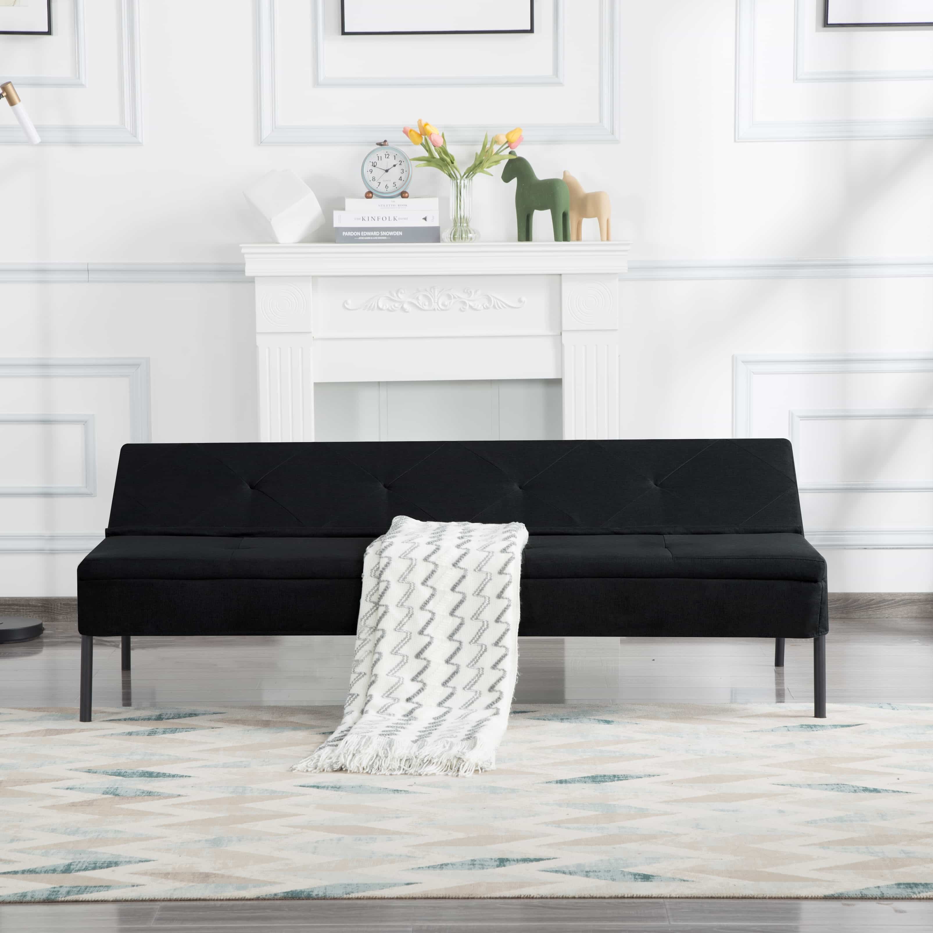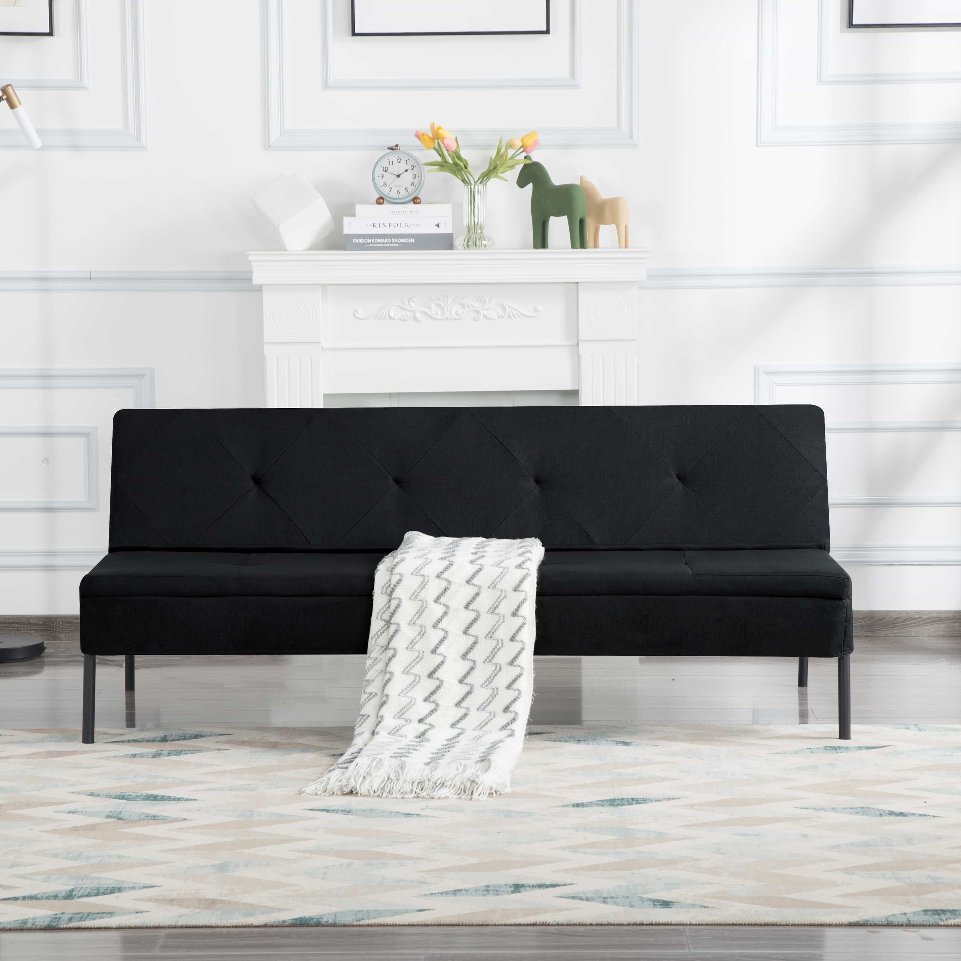 BSHTI 63”Futon Sofa Bed,Upholstered with Polyester Fabric Convertible Sofa Couch for Living Room,Office(Black)