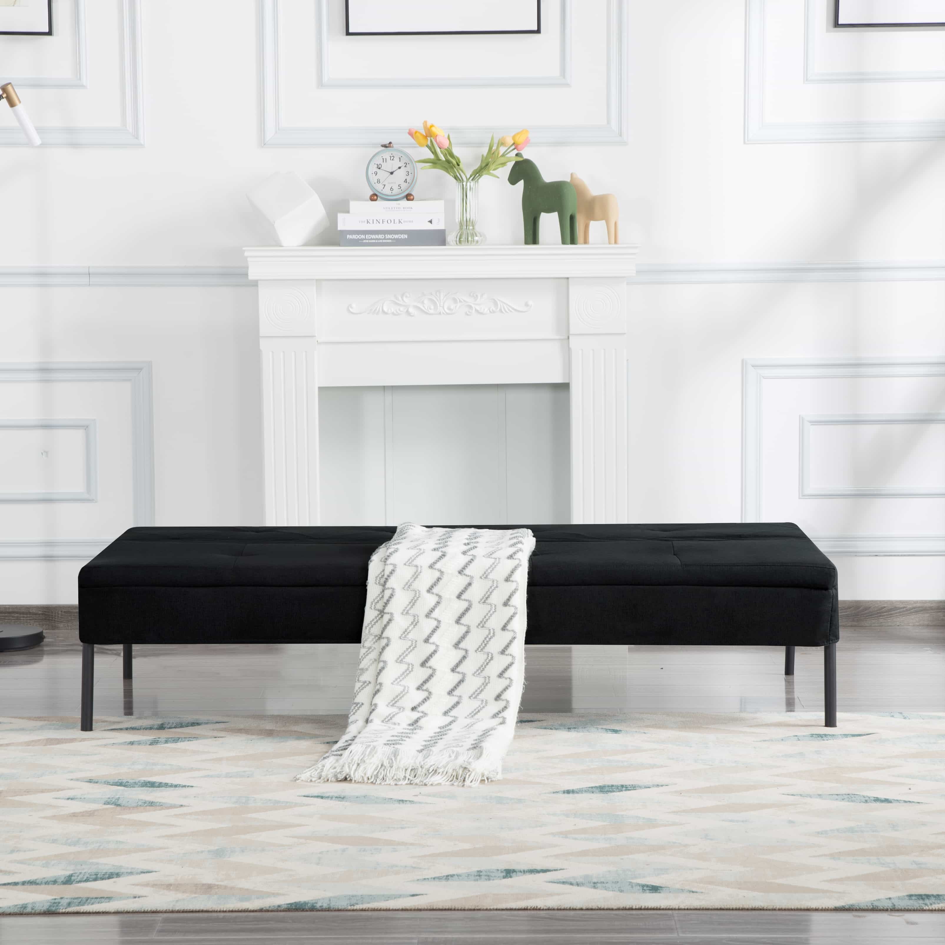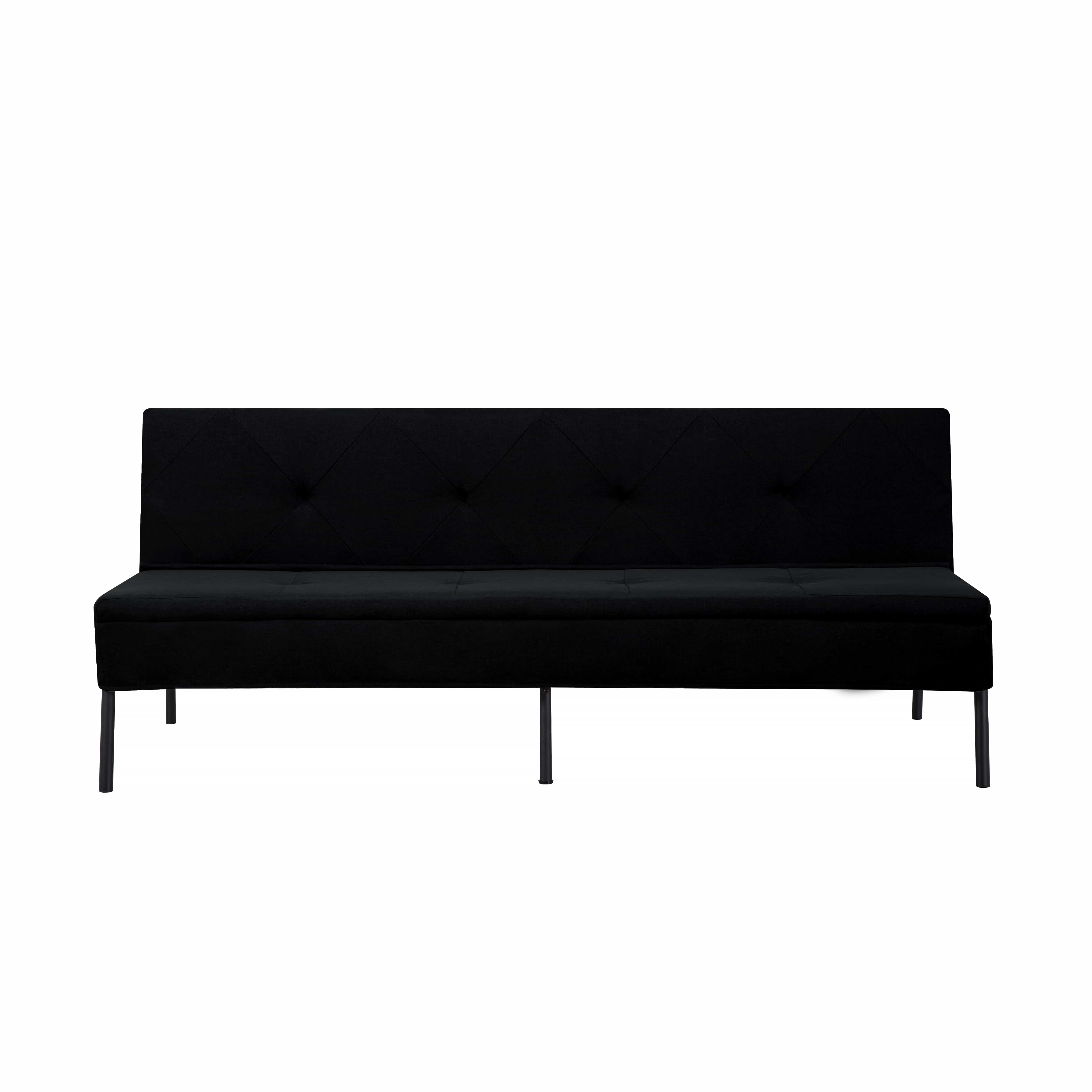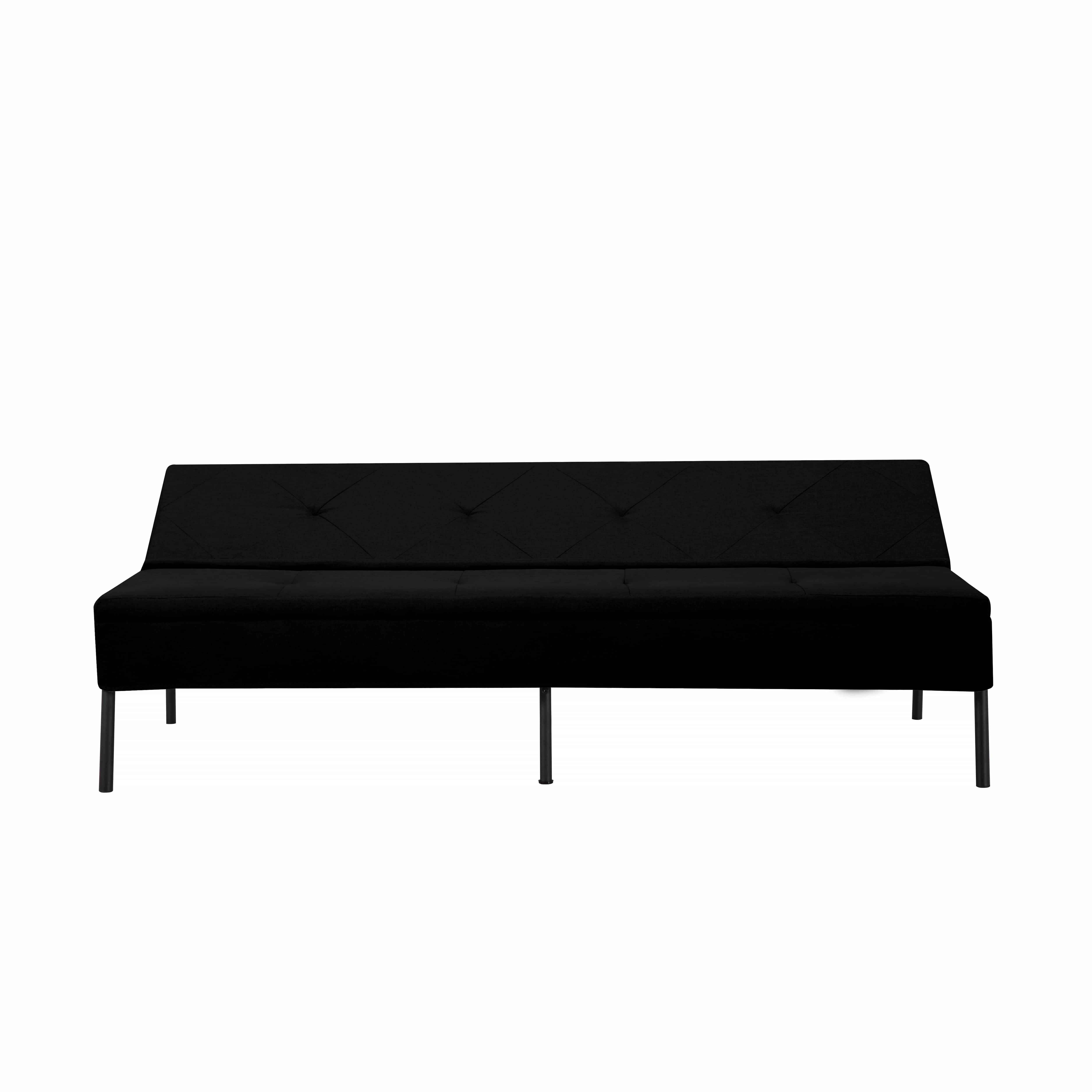 – Futon Sofa bed, can be converted to a fully functioning futon sleeper in few seconds, it is an excellent option for your living room, office, small apartment, dormitory and bedroom, is also perfect for small spaces. – This sofa showcases a clean-lined silhouette perfect for adding a modern touch to any living ensemble. – Upholstered with polyester fabric. – Stability & Durability: the sofa bed frame is made of all iron with black powder coating finish, it’s stable and firm. – Multi-functional design: The backrest has 5 adjustable positions for sitting, lounging and sleeping. Product Type:Futon Design:Convertible sofa Sleeper Size:Twin Size Seating Capacity:3 Overall size:63” x31.5”x 26.4”H -Sleeper:63” x36”x 14”H Back Cushion:13.6”H Seat Height:14” Leg Height:9.8” Reclined Angle Back:95°~180° Product Weight:32.78 LBS Package Weight:37.04 LBS Carton size:64.17×19.69×6.69”, 37.04 LBS Upholstery Material:100% Polyester Upholstery Colour:Black, Dark Gray Seat Fill Material:Foam + Sinuous Spring Back Fill Material:Foam Frame Material:Metal Leg Material:Metal Leg Color:Black Back Type:Tight back Toss Pillows:No Back & Seat:Not removable Storage:No Joinery:Brackets Weight Capacity:300 LBS each seat Intended Use:Residential Use Country of Origin:China Shipping:Courier Minimum Door width:7” Product Care:Wipe clean with dry cloth, do not use strong liquid cleaners Assembly Required:Yes Level of Assembly:Partial Assembly Assembly Time:30 Minutes Adult Assembly Required:Yes Suggested Number of People:2 Additional Tools Required:All tools included Please review the product dimension and check if it’s suitable for your room. It might be have color difference due to photograph lighting, or computer monitor displayed. It’s not quality issue.