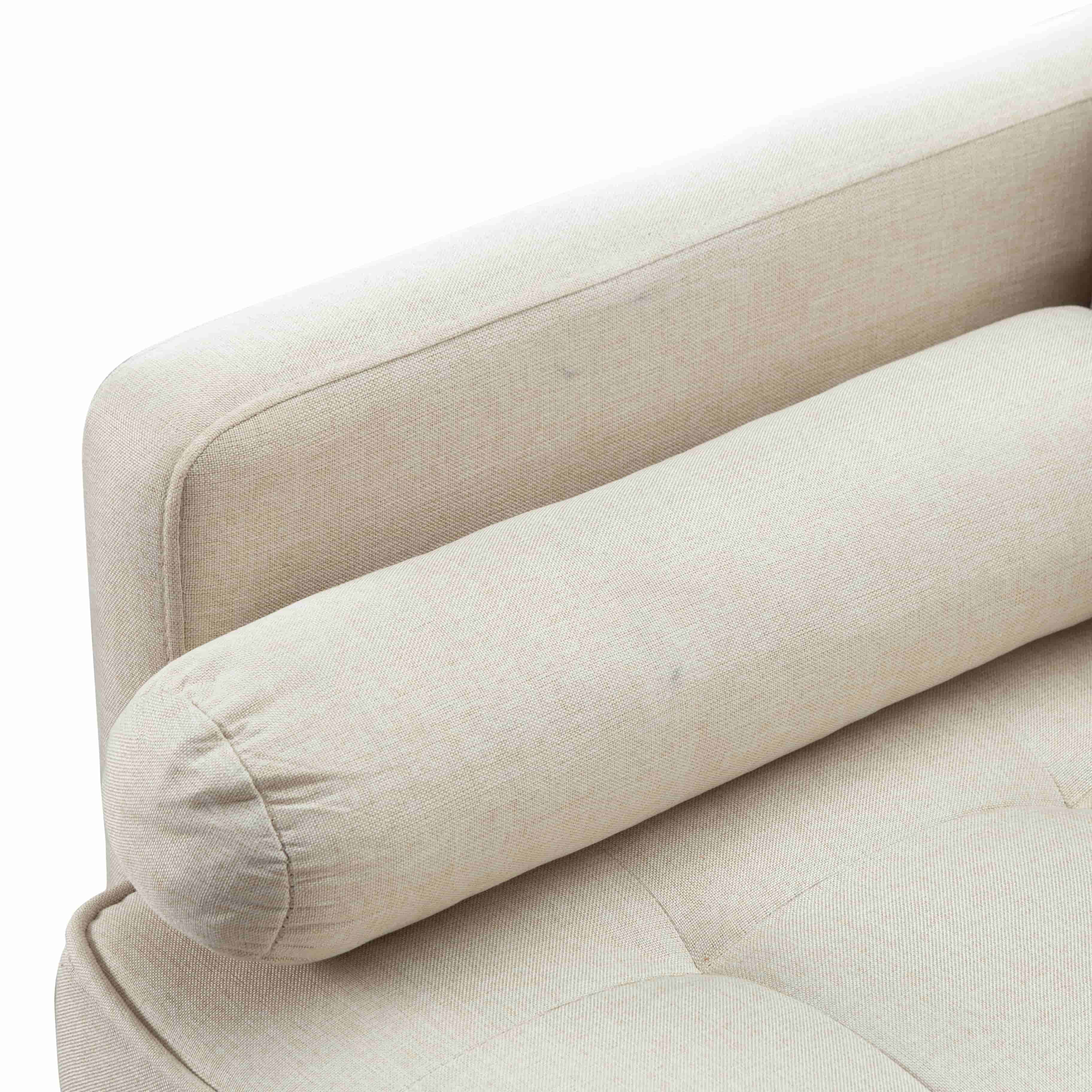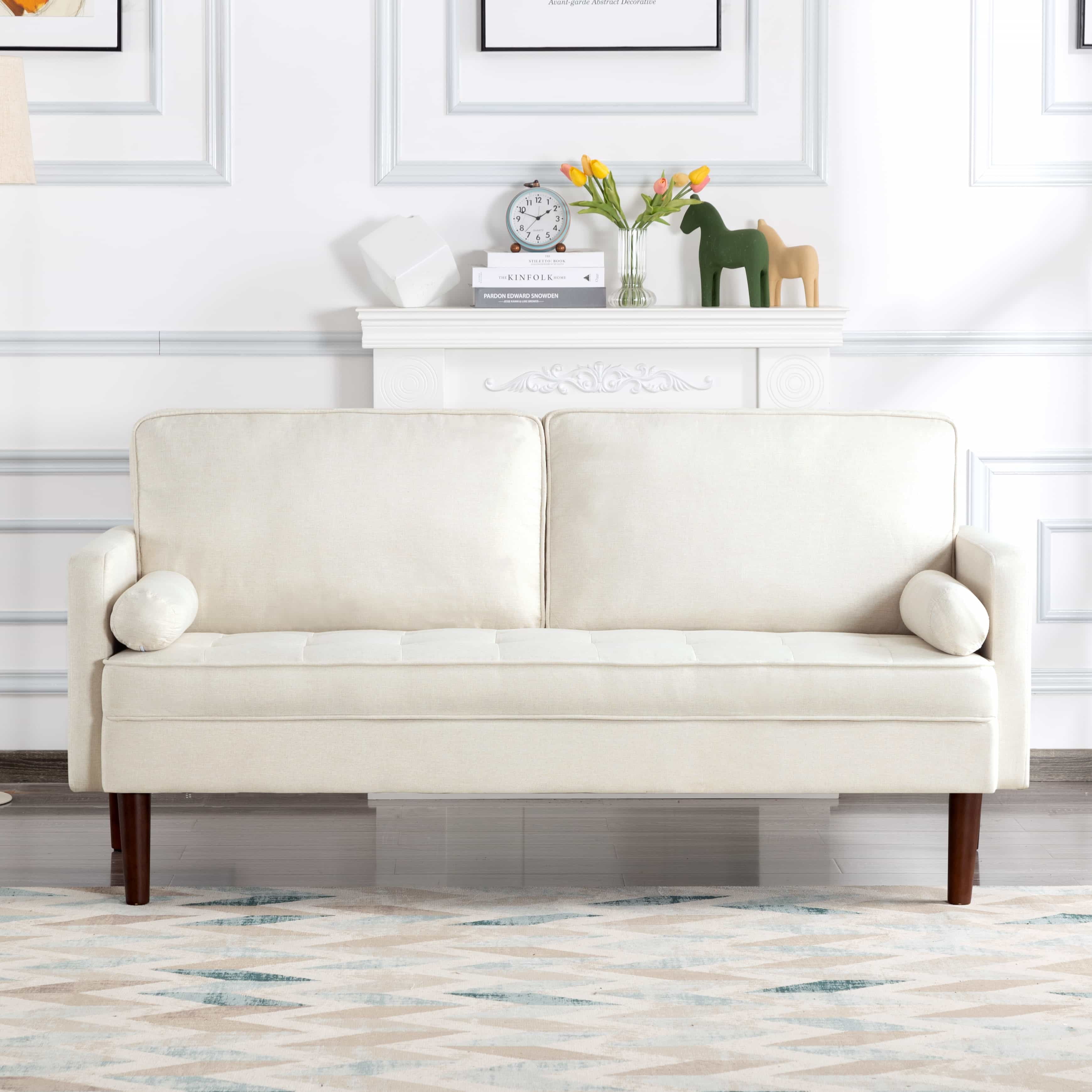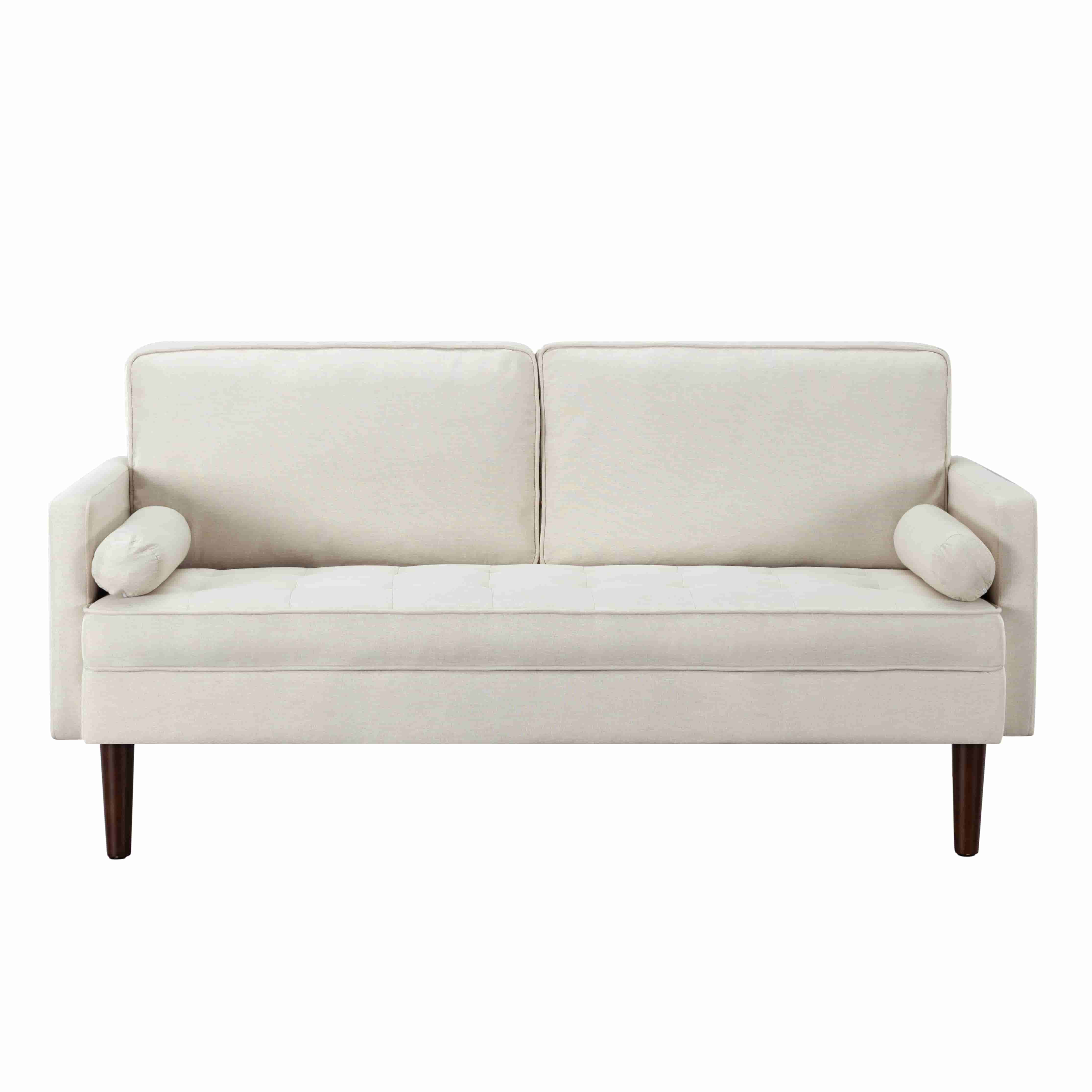 BSHTI 65”Cushion Back Modern Loveseat,2 Bolster Pillows,Removable Backrest,with Non-slip Pads,Perfect for Living Room,Home Office,Bedroom,Beige Polyester