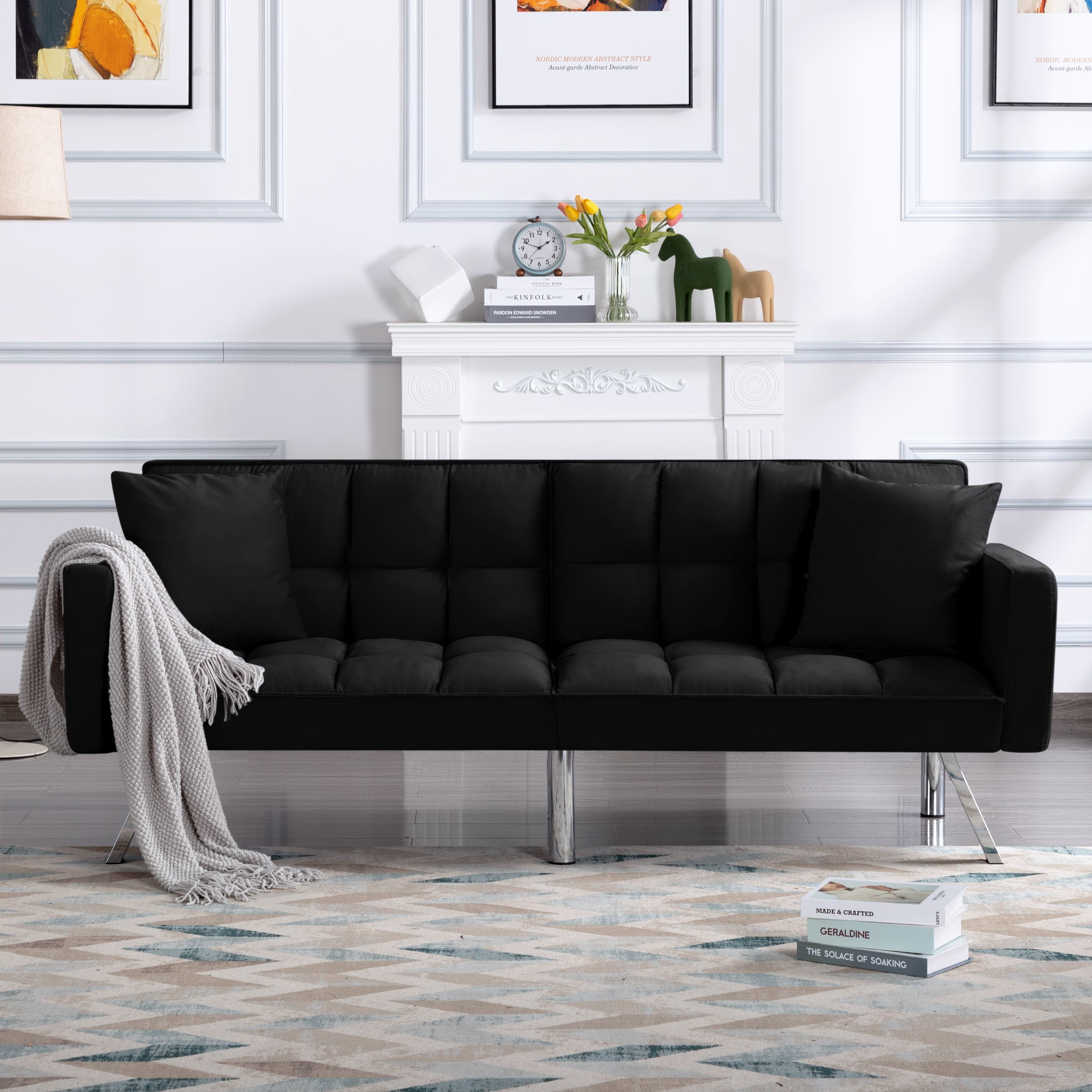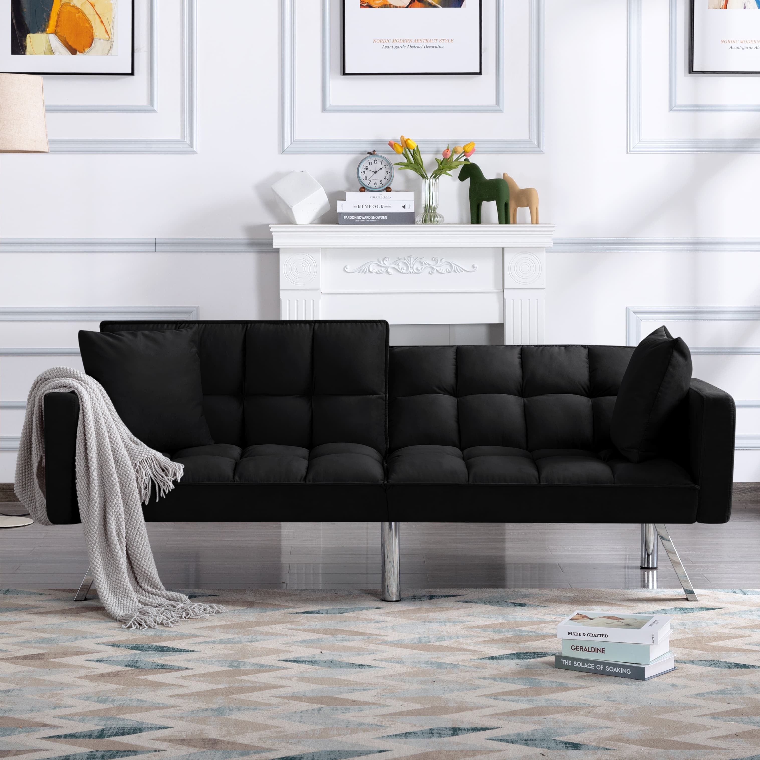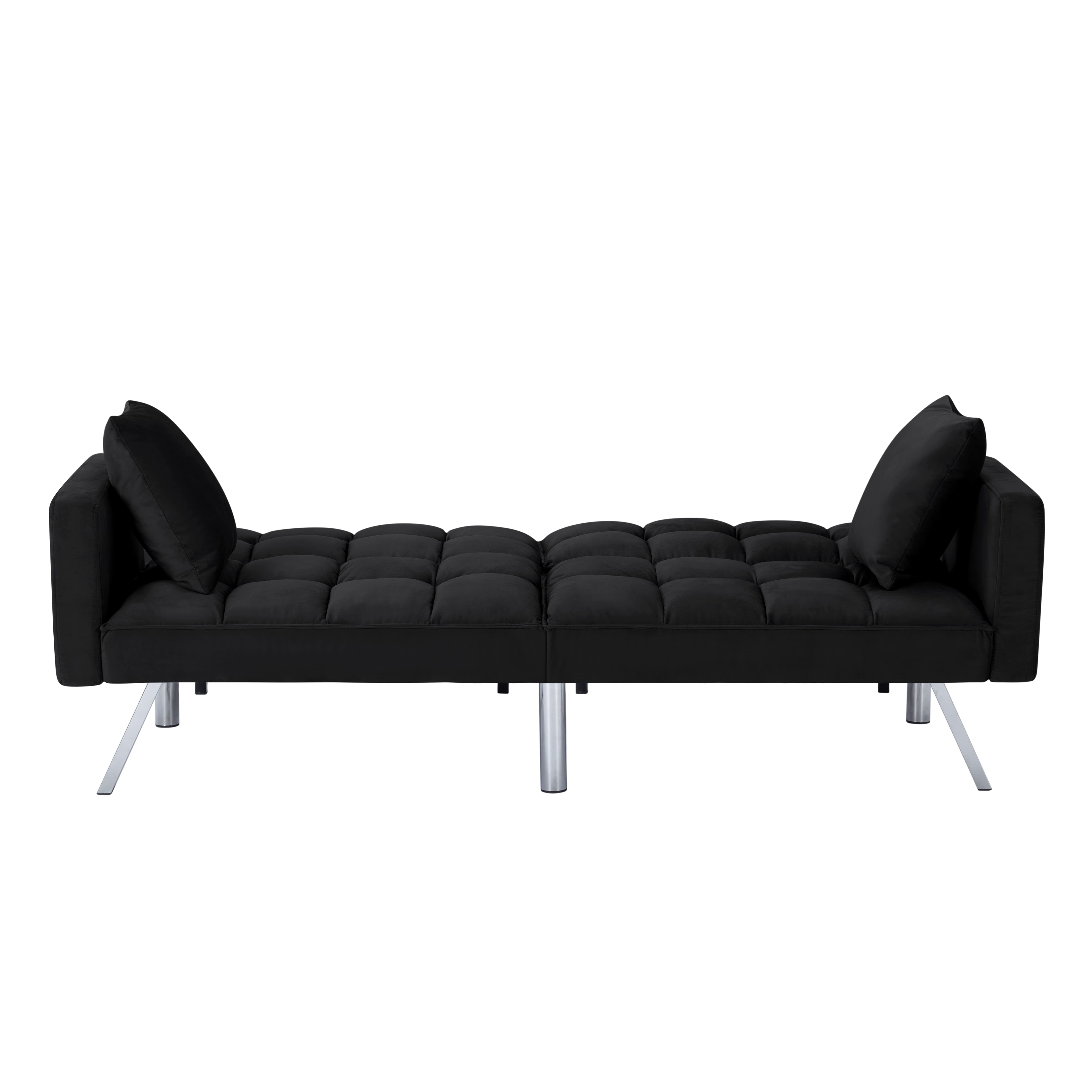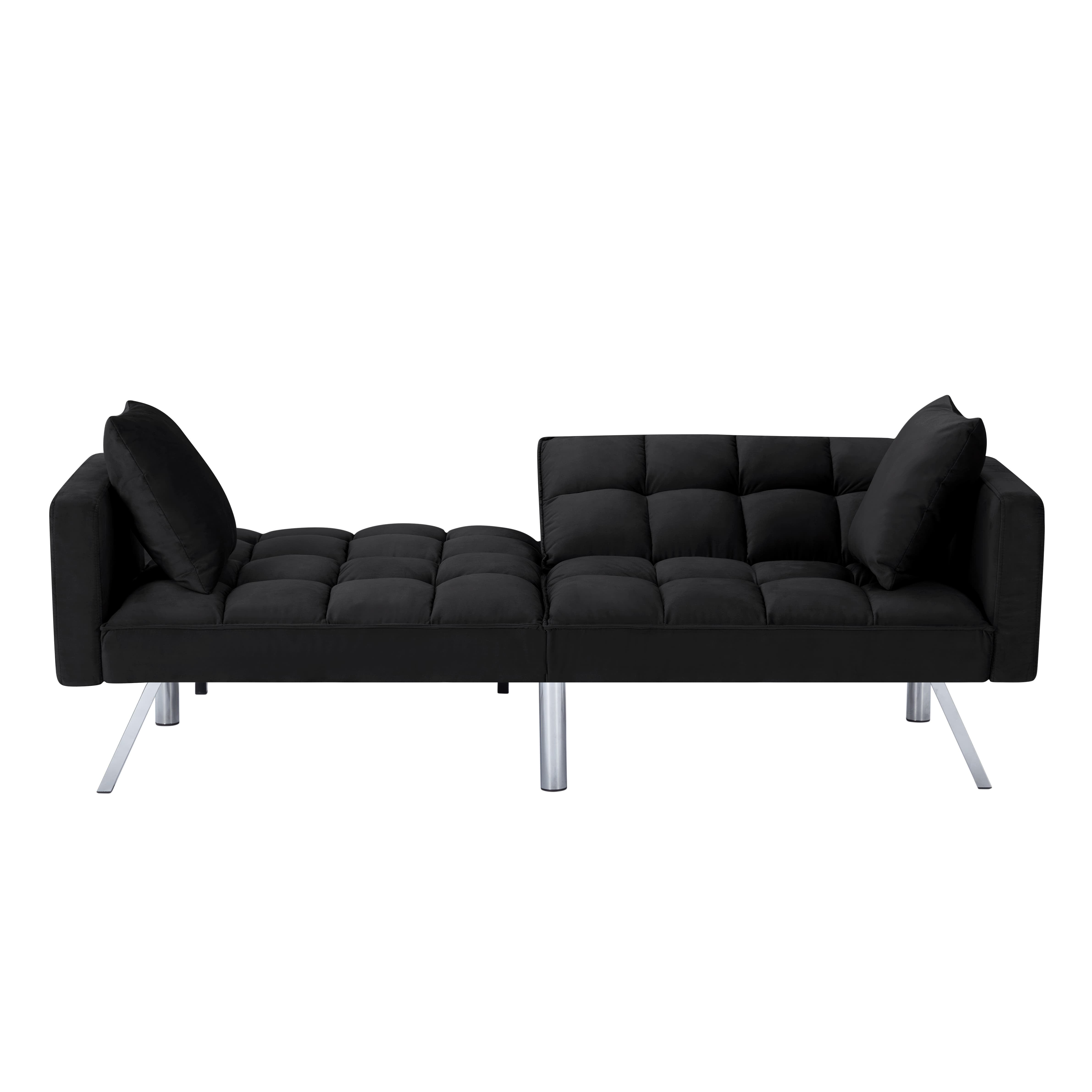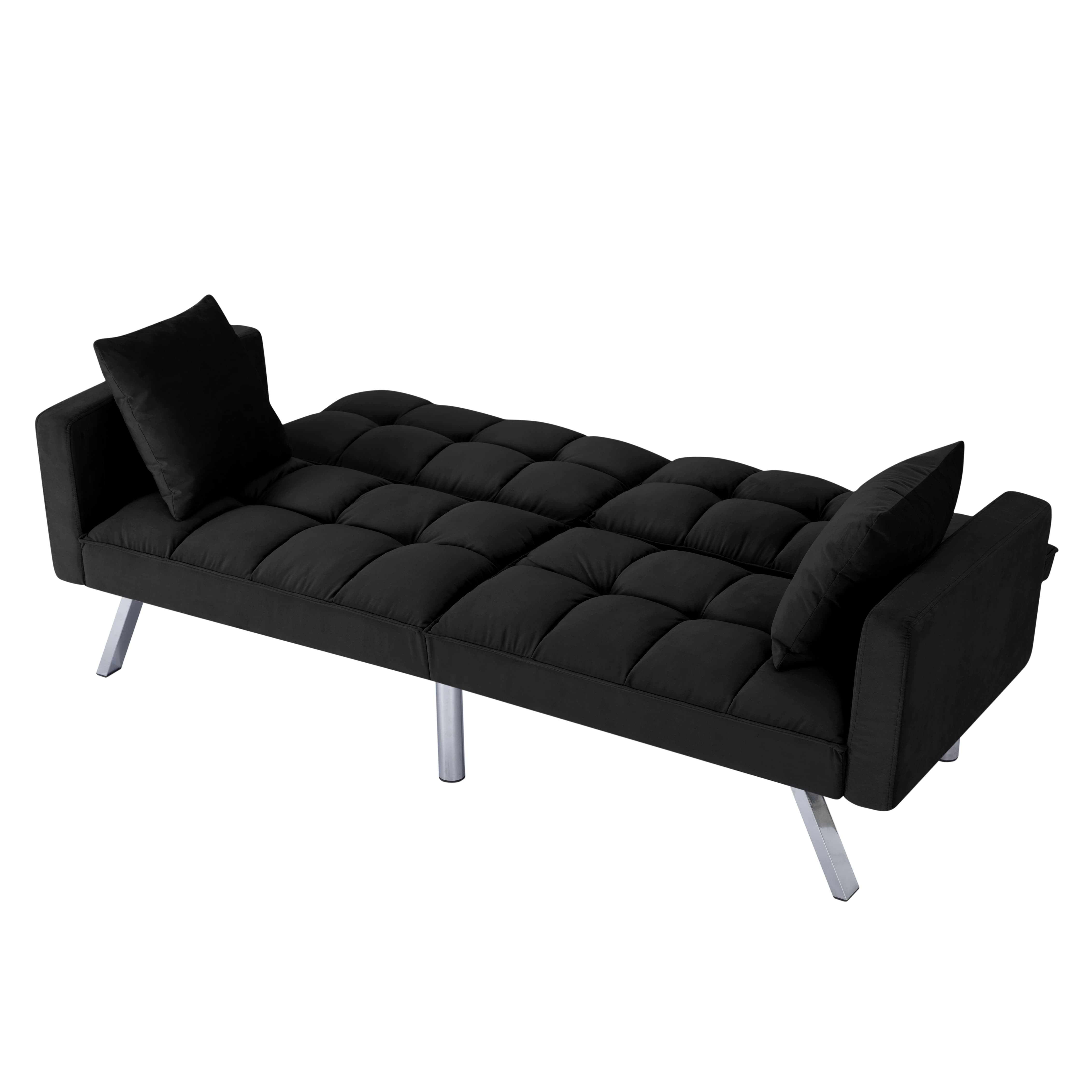 BSHTI 74”Tufted Futon Sofa Bed,Twin Size Black Velvet Fabric Sleeper Sofa,3 Angles for Adjusting Sofa,for your Home,Office,and Guest Room