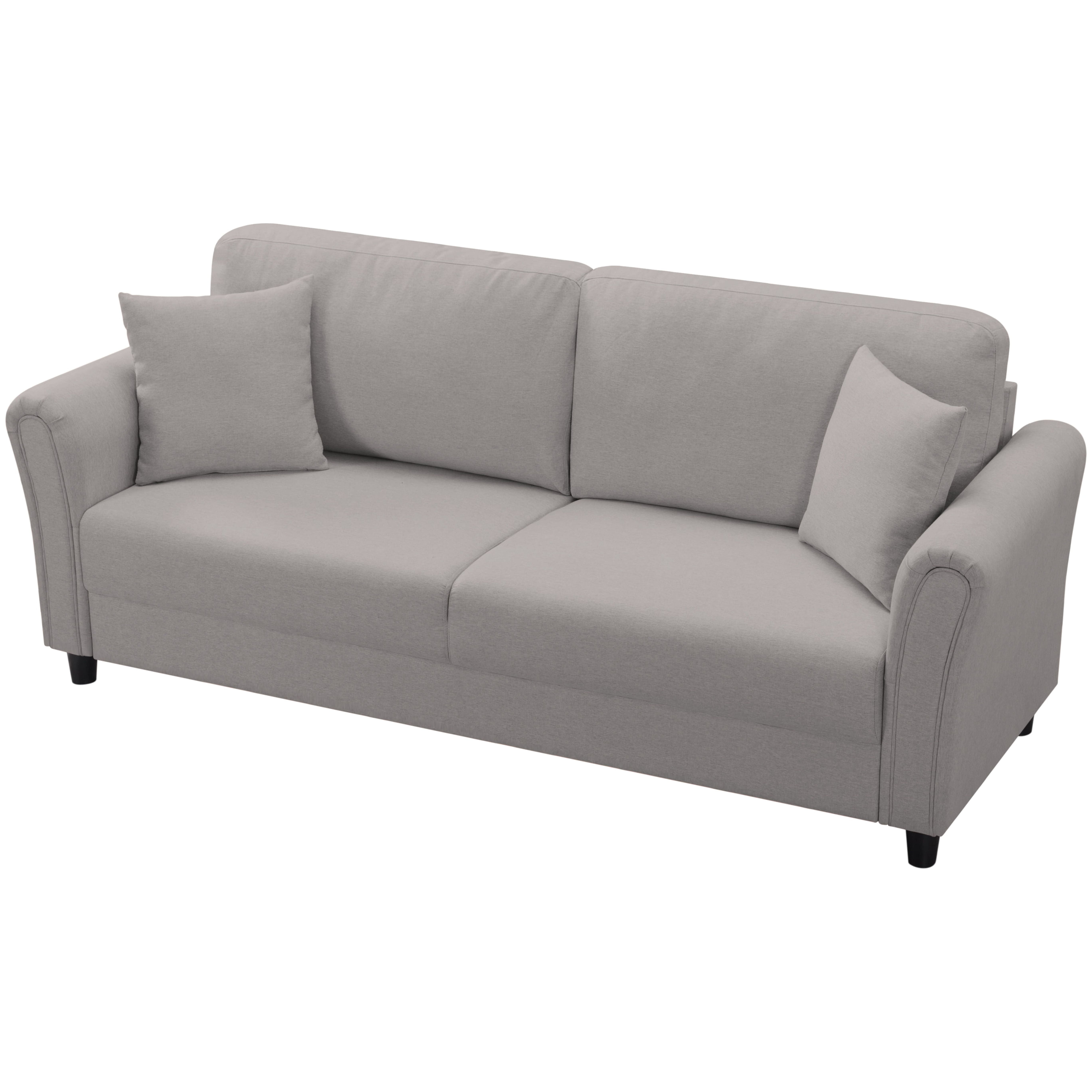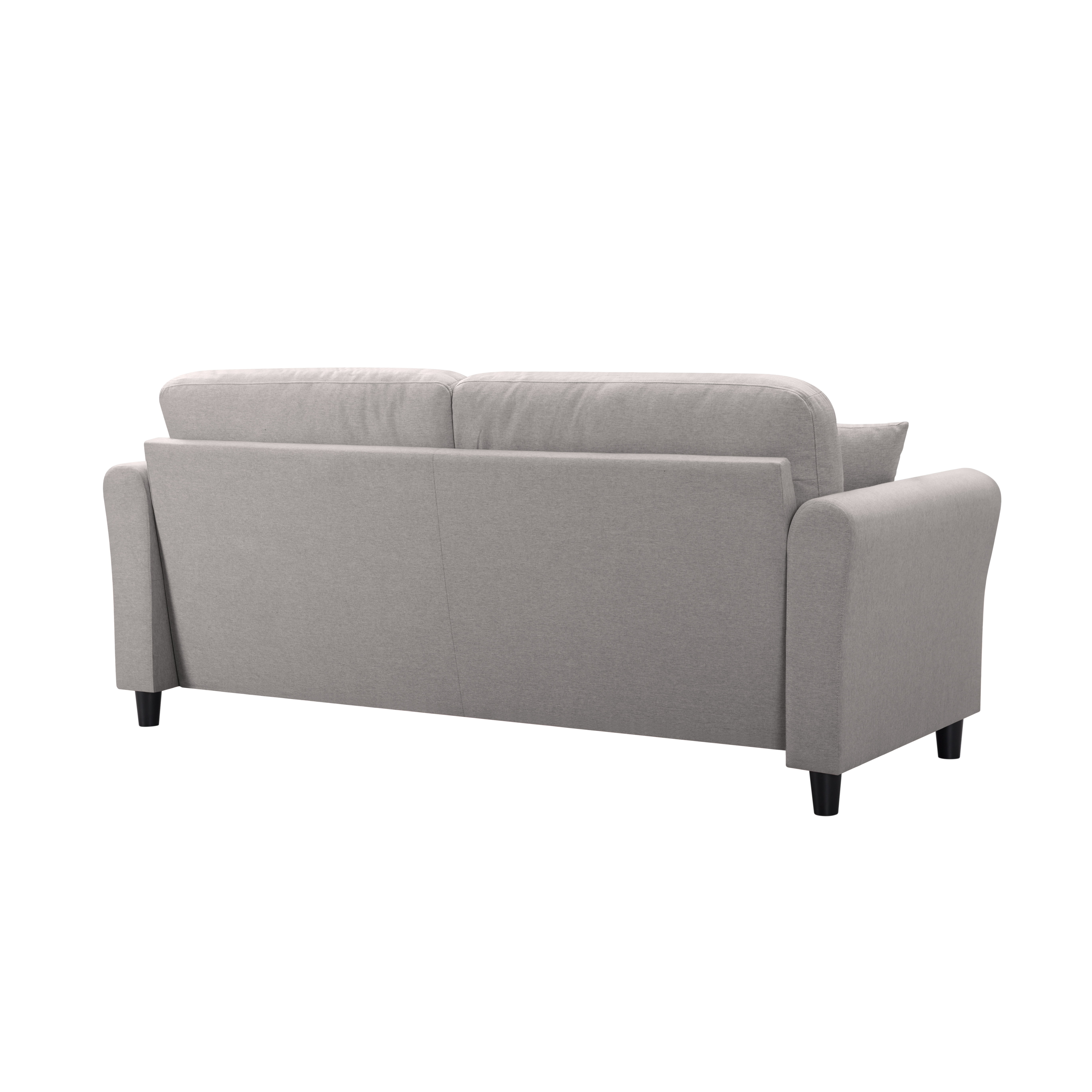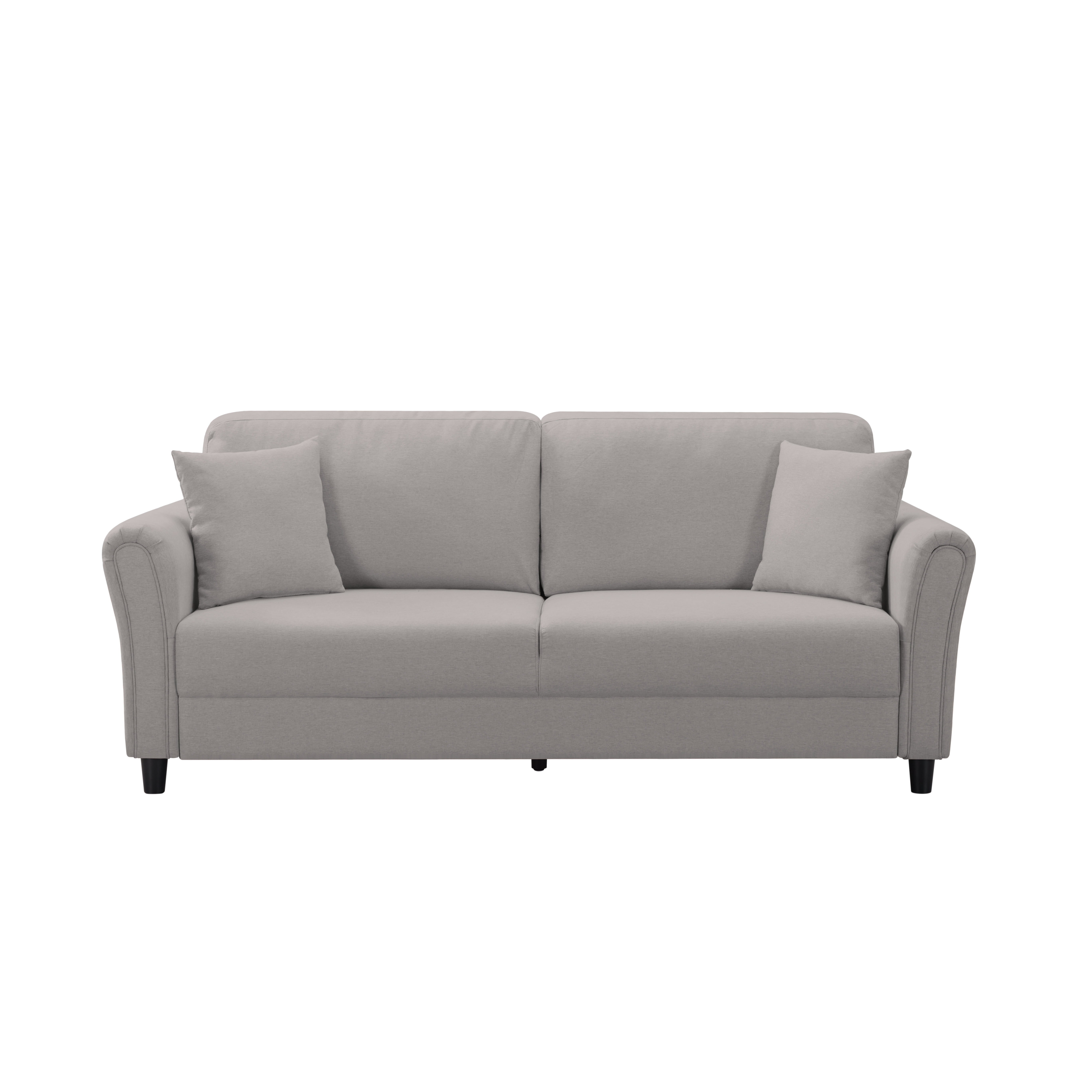 Sofa -overall size 81.5” x29.5”x 34.4”H Back Cushion 17.7”H Seat Height 17.7” Arm Height 25.6” Leg Height 3.7” Product Weight 82.5 LBS Gross Weight 93.7 LBS Carton size 69.29” x 25.59” x 17.7” Seating Capacity 2 Upholstery Material Linen Blend Upholstery Colour Beige, Light brown, Light grey, Dark Grey, Dark Blue Seat Fill Material Foam + Pocket Spring Back Fill Material Synthetic Fiber Frame Material Solid + Manufactured Wood Seat Construction Solid wood Wood Species Eucalyptus Leg Material Plastic Leg Color Black Back Type Cushion back Arm Type Rolled arm Toss Pillows 2 Back & Seat Back cushion is Removable Reversible No Storage No Joinery Corner-block-reinforced Main Wood Joinery Method Basic Butt Kiln-Dried Wood Yes Weight Capacity 300 LBS each seat Intended Use Residential Use Country of Origin China Shipping Courier Minimum Door width 18” Product Care Wipe clean with dry cloth, do not use strong liquid cleaners Assembly Assembly Required Yes Level of Assembly Partial Assembly Assembly Time 15 Minutes Adult Assembly Required Yes Suggested Number of People 2 Additional Tools Required All tools included BSHTI FUTON SOFA AT HEART At BSHTI Sofa, it’s always been about creating that sense of home throughout life’s journey. From first apartments to forever homes, every room deserves unique style and the best in materials, with thoughtfully designed futon sofa products that were made with pride. BSHTI sofa product meets you where you live, building memories together one piece at a time. Durable and easy to clean sofa : Durable and easy to clean polyester fabric makes this sofa perfect for an active household; Spot clean with a damp cloth or sponge. Modern style fashionable and minimalist sofa :Introducing our stylish and contemporary couch, designed to bring a touch of modern elegance to your living space. With its sleek and simple design, this sofa is a versatile choice for small apartments, living rooms, bedrooms, dens, and other small space rooms.Modern 3-seater sofa in durable 100% beige polyester linen. Sturdy and Durable Perfect Sofa :perfect sofa seating, padded armrests, generous cushioning, and a sturdy wood frame deliver optimal comfort and support for you and your guests. Easy and easy to assemble sofa couch :With its user-friendly design, this sofa can be effortlessly assembled in just 20 minutes, without the need for any tools. Say goodbye to frustrating setups and enjoy the convenience of an easy installation process. Sofa made of breathable and durable materials :The fabric used in this sofa is not only breathable but also resistant to pilling, ensuring its durability even in the face of everyday use and pets. You can rest easy, knowing that your sofa will withstand the demands of a busy household, while maintaining its luxurious look. Age Group:Adult. – Due to production design issues, there may be some slight deviation in the actual size of the product, but it will not affect your normal use.Please review the product dimension and check if it’s suitable for your living room. – It might be have color difference due to photograph lighting, or computer monitor displayed. It’s not quality issue.