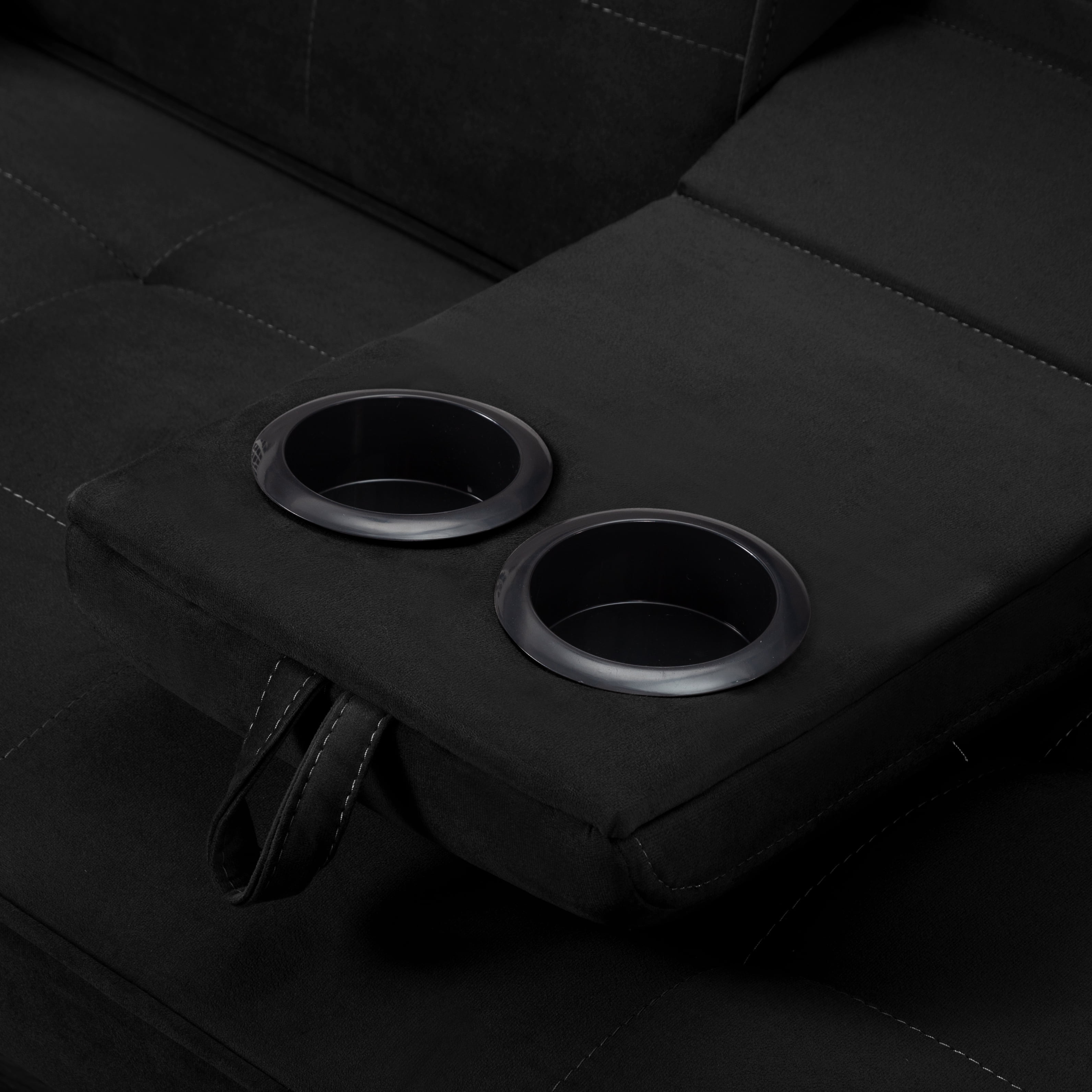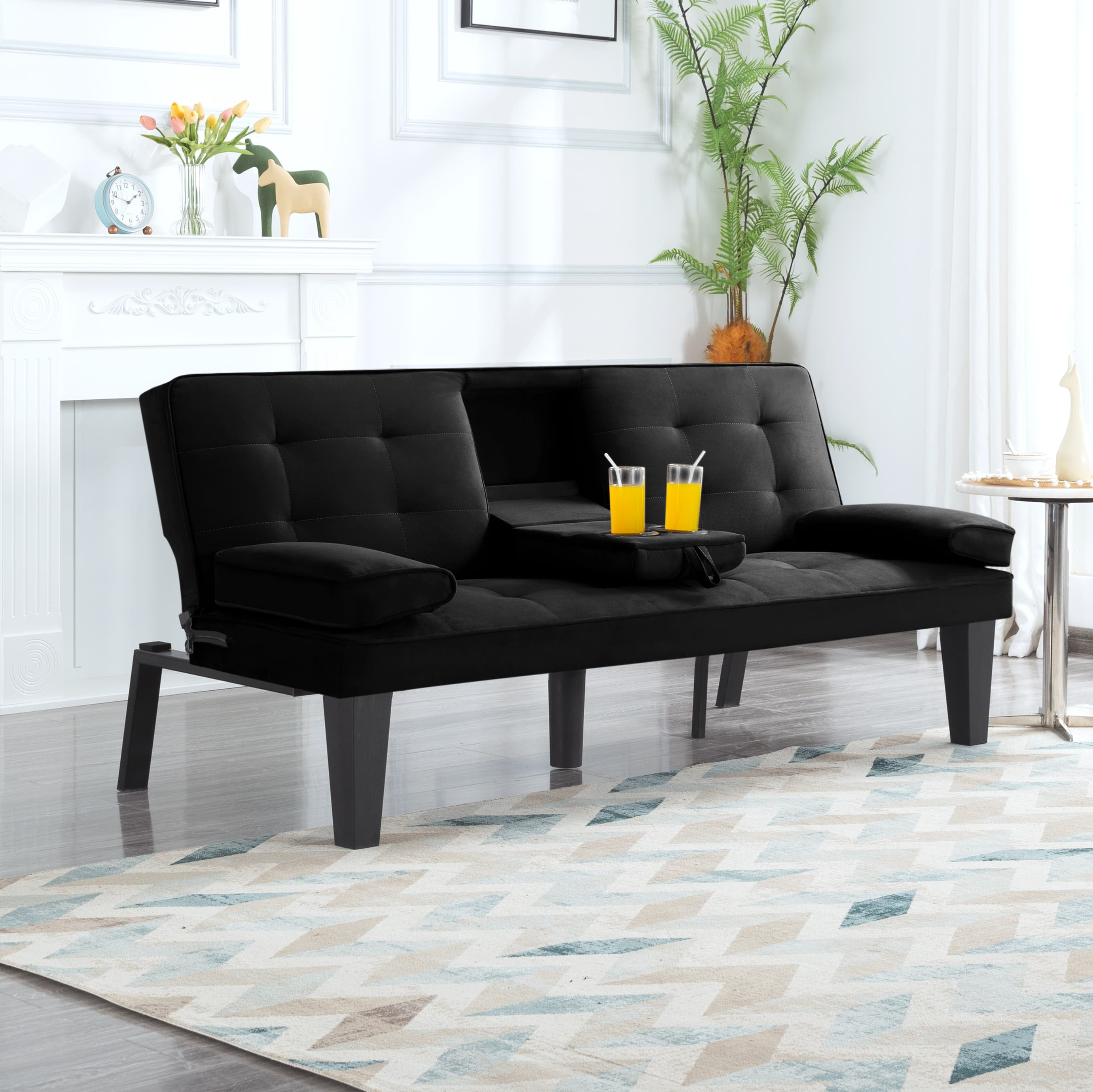 BSHTI Velvet Futon Sleeper Sofa,Drop Down Middle Back with 2 Cup Holders,3 Angles for Adjusting Backrest,for your Home,Office,and Guest Room,Black