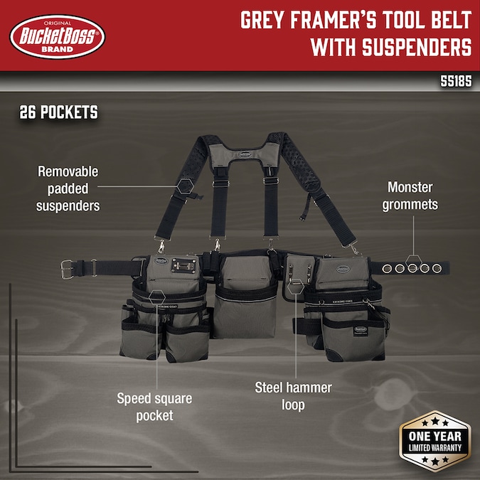 Bucket Boss 3-BAG Grey Framer Polyester Suspension Tool Rig