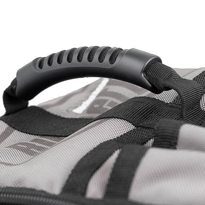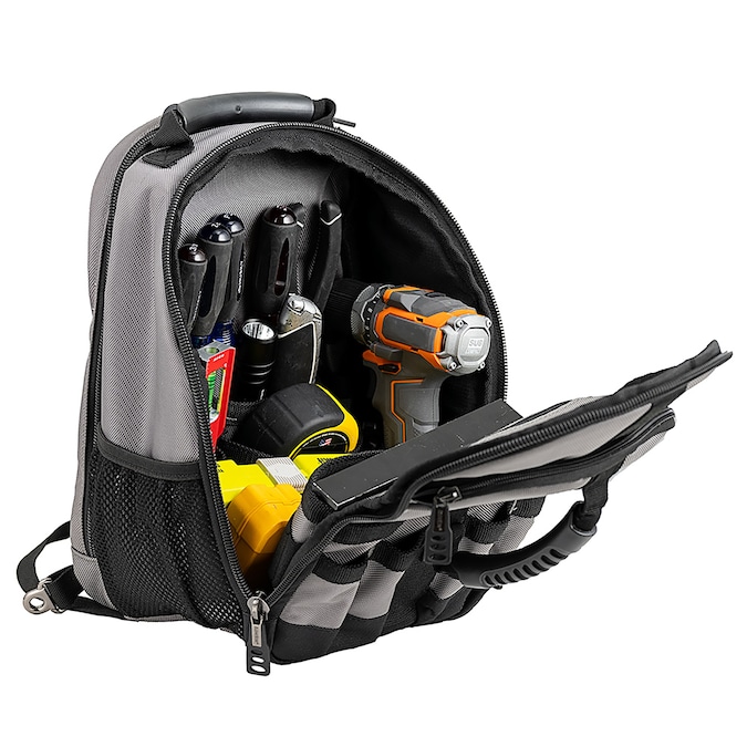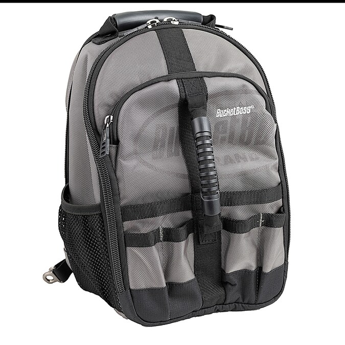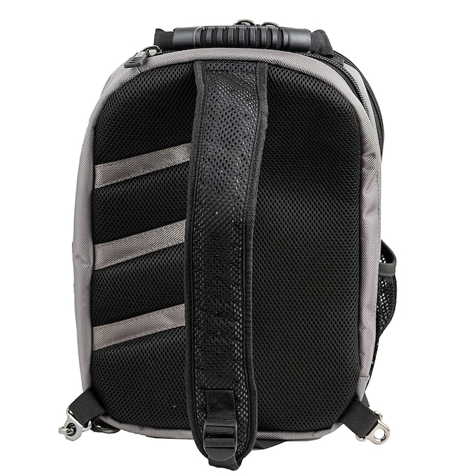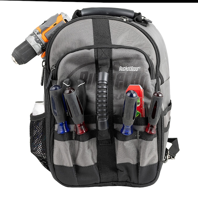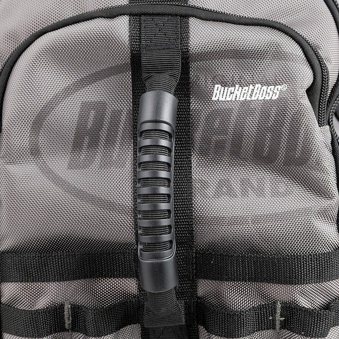 From the Bucket Boss Professional Series, the Sling Pack Tool Bag is made for the professional contractor, constructed with heavyweight 1680 2-ply poly fabric. The compact size and single shoulder strap make this backpack an ideal choice for tight working spaces. The padded sling strap can attach to the base of the bag on either side, allowing it to be worn on the left or right shoulder. Other features include 2 molded handles on the front and top of the bag that allow it to function as a workstation, 24 total tool pockets, an adjustable interior drill loop, and 2 tech-pockets. Zippered tech-pockets on front and back of the bag are lined with thick, flexible neoprene and hold a tablet and up to a 13 in. laptop respectively.