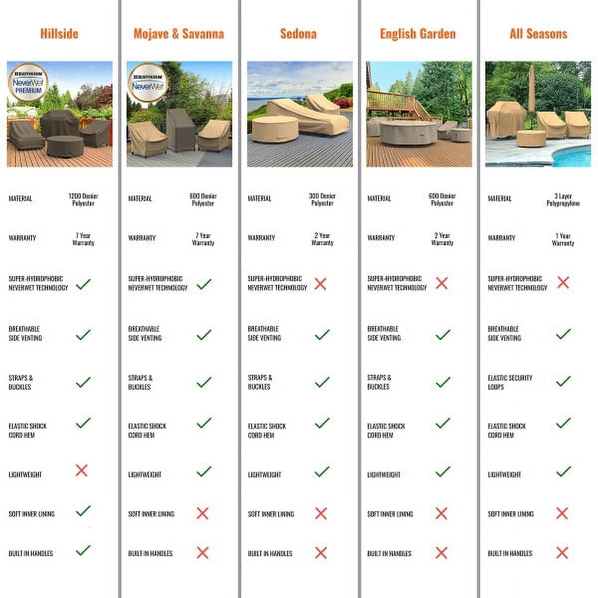 The Budge English Garden Patio Chair Cover (2 Pack), Small provides high quality protection to your outdoor patio chair. This collection by Budge Industries features a woven tan pattern with a dark gray piping, which lines the outer seams of the chair covers. The English Garden Collection will complement any outdoor garden or patio setting, all while keeping your furniture protected. This patio furniture cover material is made from heavy-duty 600 denier polyester material that will provide 100% waterproof protection to your outdoor patio furniture. This material will defend against fading, rain, sun, dust, bird droppings, and more. Four sewn-in straps are included to help better secure the cover to your furniture in windy conditions. The seams are ultra-sonically welded together to enhance both the protective properties and longevity of the covers. Vents are strategically placed throughout the covers to ensure adequate air flow to release any trapped condensation that may cause mold from growing under the cover. This chair cover measures 36″ high x 30″ wide x 27″ deep.