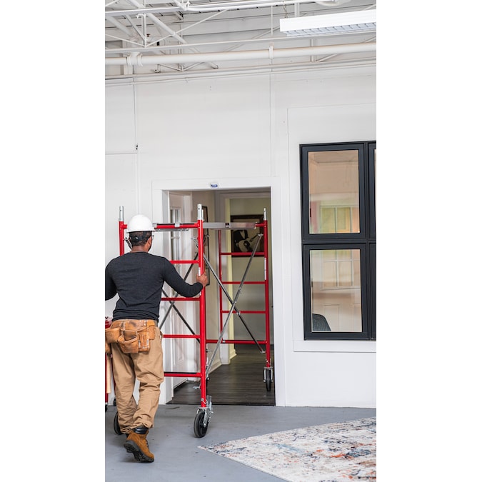 - Scafflex is convertible to fit interior hallways and exterior jobs with included extension poles and clips