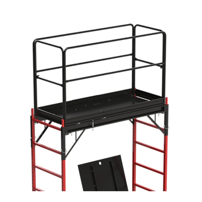 - Safety guard rail protects against accidents while on scaffolding