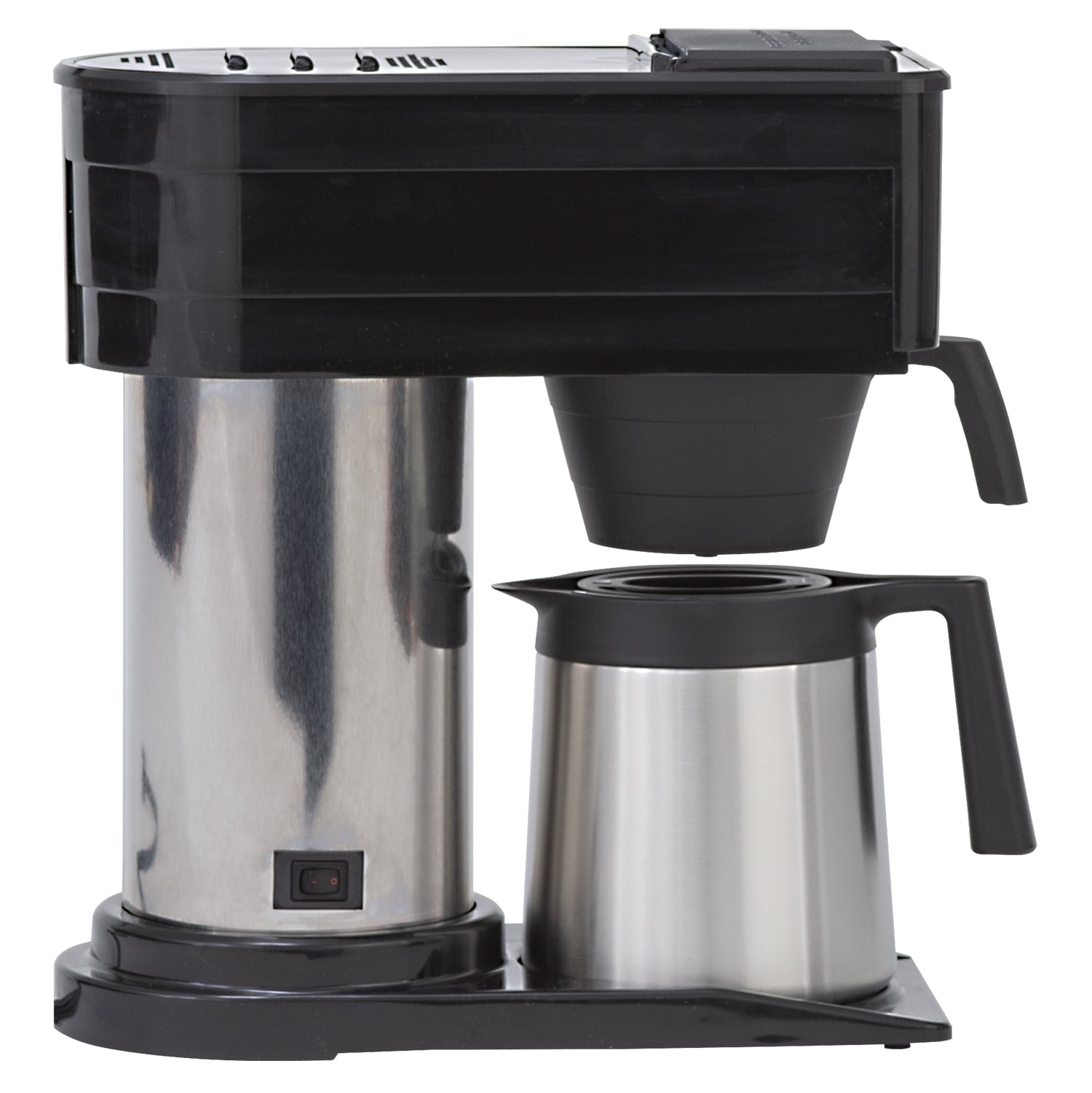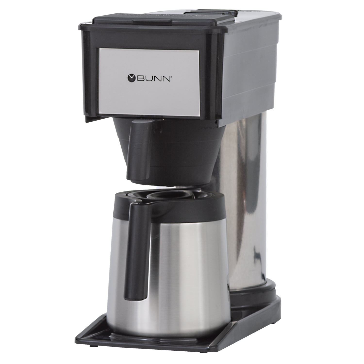 Brews 10 cups of superb coffee in just 3 minutes The internal thermostat keeps water at an ideal brewing temperature Includes double-wall, stainless-steel, vacuum-insulated and dishwasher-safe carafe with close-and-brew lid No warmer required Features vacation switch that turns tank heat off UL listed 3 year warranty Free starter pack of coffee filters Condition: New Brand: BUNN