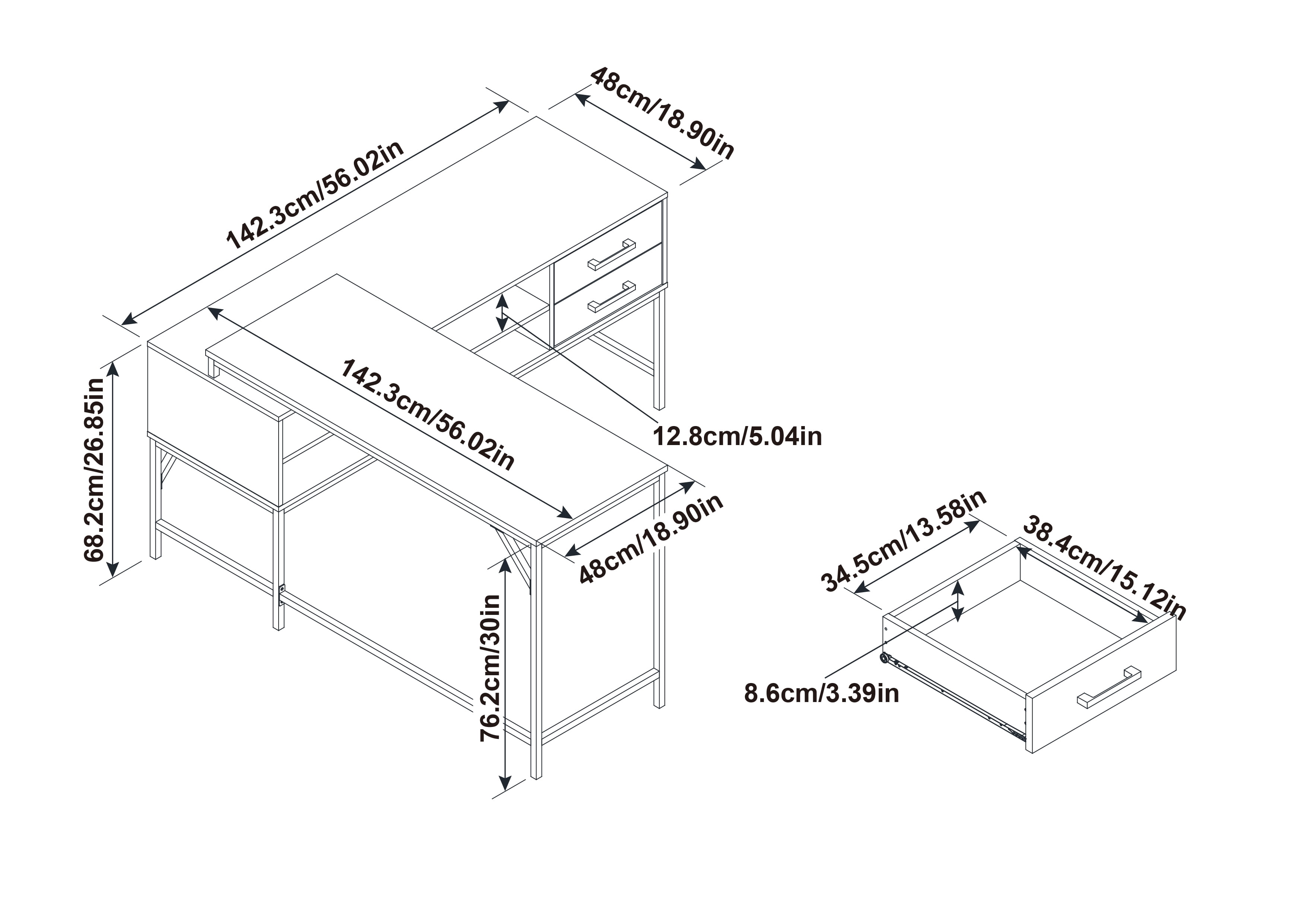 - Desk Shape: L-Shaped