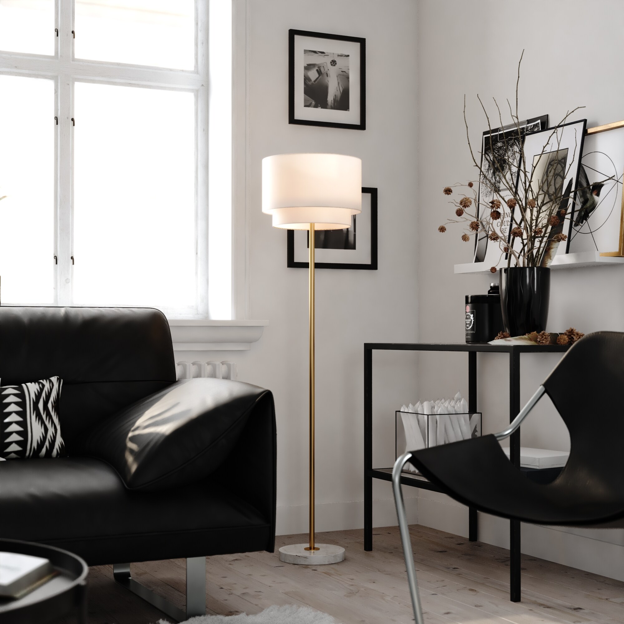 Indulge your mid-century modern dreams with this timeless collection. The Burnaby collection harkens to the days of Mad Men, inch yet brings an undeniably contemporary feel to your transitional or modern interiors with its interplay of linen and brass. This floor lamp is controlled by a brass pull chain and is perfect for your living room, office, or bedroom. Its soft mid-century modern style is enhanced by a white linen shade and sturdy white marble base.