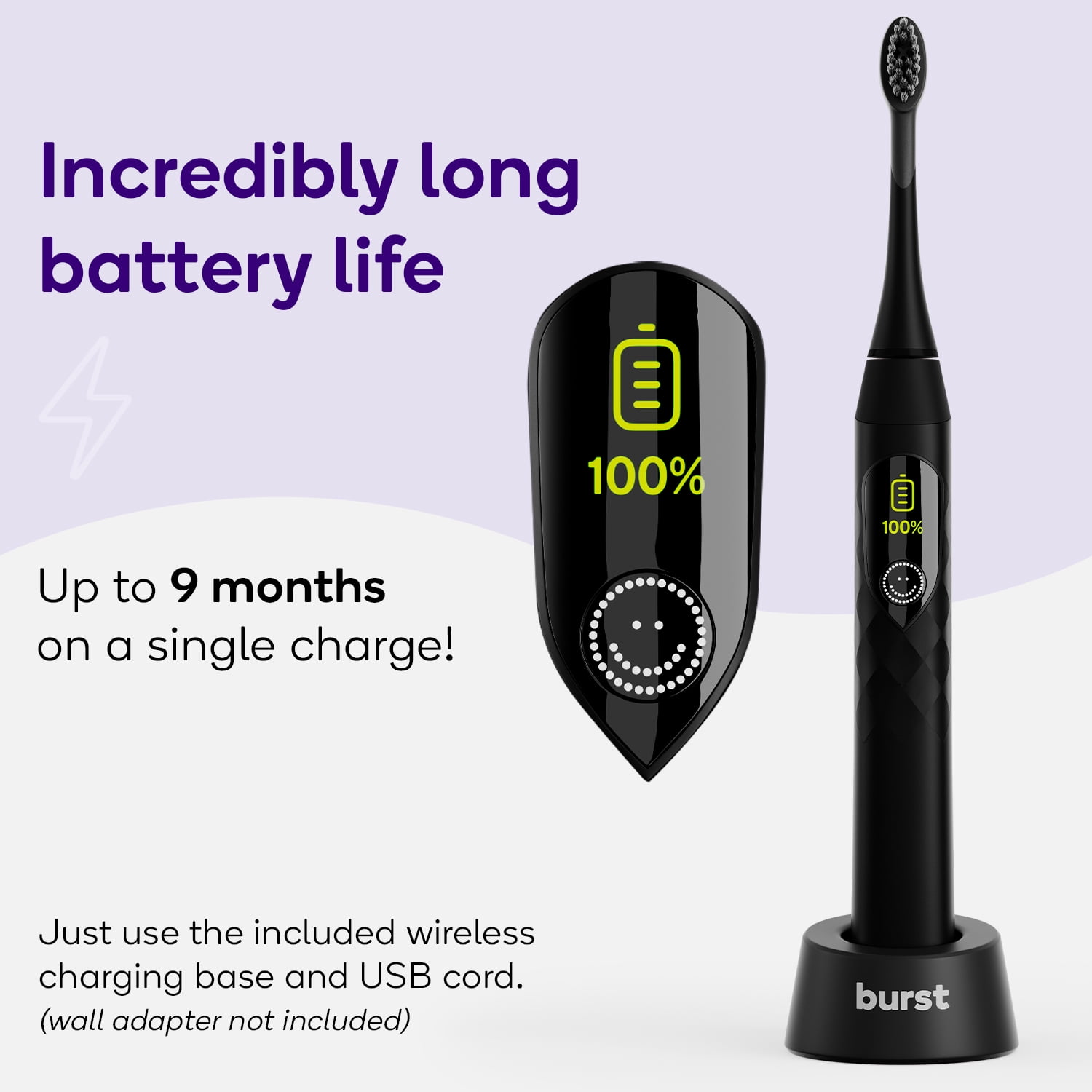 Burst Pro Sonic Toothbrush, Rechargeable Electric Toothbrush, Pressure Sensor, Black