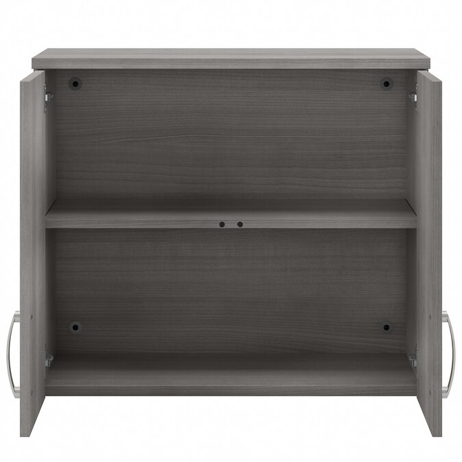 The Bush Business Furniture Universal Wall Cabinet with Doors and Shelves features a commercial quality design and contemporary styling that suits virtually any home or professional environment. Organize your office, breakroom, garage, laundry room or another work or living space with a wall mounted cabinet that’s built to last and boasts plenty of practical storage capacity. Cabinet doors with smooth Euro-style hinges open to reveal one fixed shelf and one adjustable shelf that accommodate office supplies, tools and household items of various sizes. The total weight capacity of the small wall shelf is 30 pounds. For best use, mount wall studs 16 inches apart during installation. Contemporary finish options include Storm Gray, Platinum Gray and White with Brushed Nickel hardware. This wall storage cabinet has been tested to meet ANSI/BIFMA quality standards for safety and performance and is backed by the Bush Business Furniture 10 Year Manufacturer’s Warranty. Create your own modular storage solution by adding the Universal Floor Storage Cabinet with Doors and Shelves, Floor Storage Cabinet with Drawer and Shelves, Floor Storage Cabinet with Drawers, Tall Narrow Storage Cabinet and Tall Storage Cabinet with Doors (coordinating items sold separately).