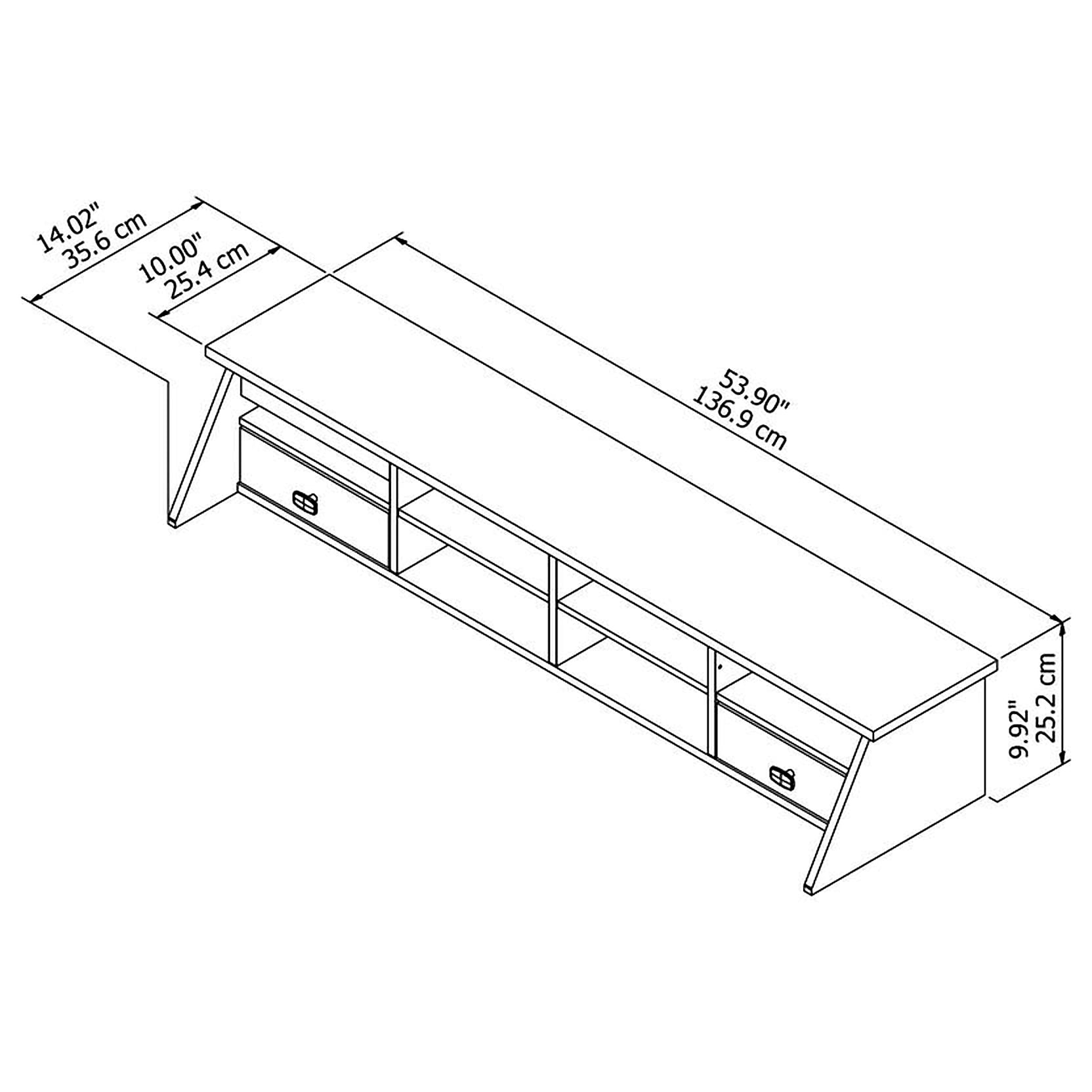 54W x 14D x 10H Desktop Organizer adds storage capacity to coordinating Broadview Computer Desks (sold separately) Eight cubby shelves organize stationery, mail, work-in-progress and more Two drawers fit any open slot to provide storage for writing utensils, notepads and other small office supplies Pullout accessory shelf is an ideal place to keep a phone or tablet; can be installed on right or left based on your preference Contemporary desk shelf comes in your choice of Pure White and Modern Gray finishes with Satin Chrome drawer pulls See the complete Broadview Collection for coordinating items available, including a 6 Cube Bookcase, Lateral File Cabinet and Office Chair (sold separately) Tested to meet ANSI/SOHO quality standards for safety and performance Backed by the Bush Furniture 1 Year Manufacturer’s Warranty