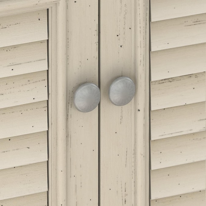 With its practical design and casual appearance, the Bush Furniture Fairview Small Storage Cabinet with Doors offers a versatile solution to organizing your home. A slightly weathered finish with Antique Pewter hardware brings about the welcoming charm of modern farmhouse styling, while a durable build and functional features ensure the 2 door Storage Cabinet will have long lasting appeal. The low profile design works well in small spaces while still providing ample storage capacity, making this accent cabinet a good fit for an entryway, office, living room or bedroom. Elegant louvered doors on Euro style hinges open to reveal three shelves, two of which can be adjusted to hold items of different sizes. The top of the Storage Cabinet offers a sturdy surface with enough space to display your favorite trinkets and mementos. Available in attractive Antique White/Tea Maple and Antique Black/Hansen Cherry finishes, the Small Storage Cabinet with Doors works well on its own or it can be matched with coordinating items from the Fairview Collection to extend your home’s laid back cottage ambience. This organizer has been tested to meet ANSI/SOHO standards for safety and performance and is backed by the Bush Furniture 6 Year Manufacturer’s Warranty.