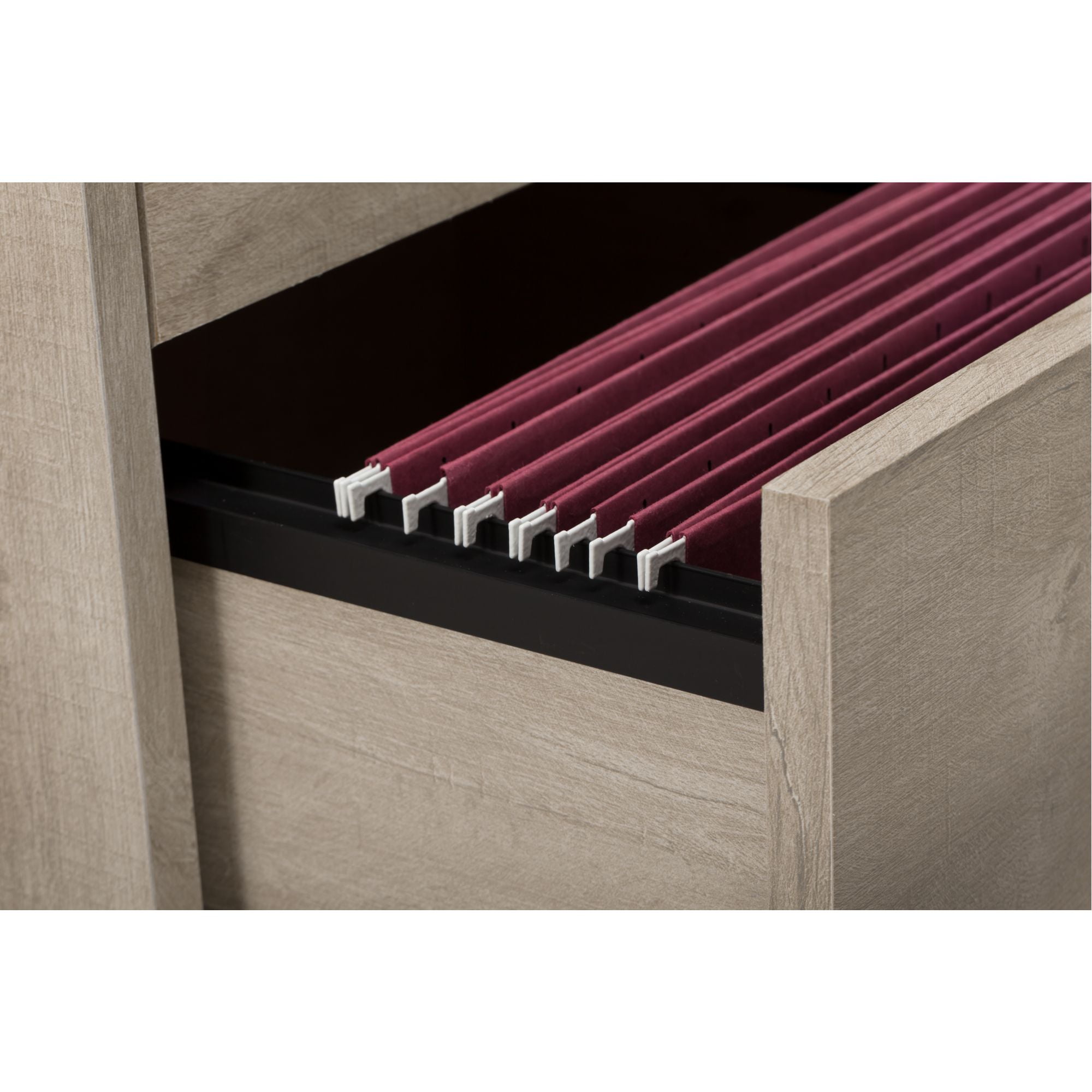 Bundle includes: 60 W L shaped desk, 2 drawers mobile file cabinet 60W L shaped desk can be placed in a corner Mobile filing cabinet fits underneath the corner desk and includes locking front casters for secure placement The file drawer opens on full-extension ball-bearing slides and accommodates letter-size documents while a box drawer provides storage for office supplies and utensils. Both items feature fully finished backs, allowing this home office furniture set to look great facing any direction Sturdy post leg design and unique X pattern accents on side panels create a relaxed and airy style Authentic washed gray finish with aged bronze drawer pulls inspired by the laid back charm of farmhouse decor Tested to meet ANSI/SOHO standards for safety and performance