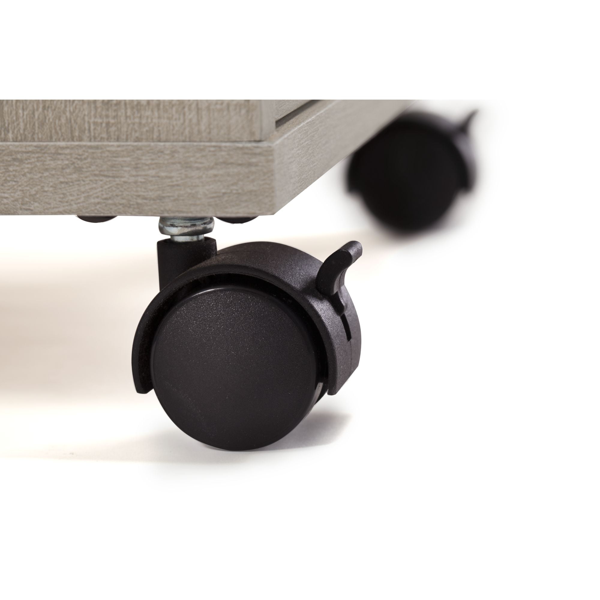 The Bush Furniture Key West 60W L Shaped Desk with Mobile File Cabinet turns any room into a practical home office with easy going style. Save floor space in compact areas by rolling the Cabinet under the Desk and placing the set in a corner, or make use of the fully finished backs to take a prominent position in the middle of the room. At 60W x 60D, the durable work surface is spacious enough to spread out with a computer, paperwork and more when taking on your task of the day. A sturdy post leg design with unique X pattern accents on the side panels creates a relaxed, open appearance while quality construction and materials allow the corner desk to support up to 200 pounds. The 2 drawer filing cabinet rolls on dual-wheeled casters and locks into place for secure positioning. The file drawer opens on full-extension ball bearing slides and accommodates letter size documents while a box drawer provides storage for office supplies and utensils. Available in your choice of several casual finishes, this L shaped computer desk with storage coordinates with a wide range of products including Desktop Organizers, a Lateral File Cabinet and a 5 Shelf Bookcase (all sold separately) to complete your personal workspace with laid back charm of farmhouse decor. This home office furniture set is tested to meet ANSI/SOHO quality standards for safety and performance and is backed by the Bush Furniture 1 Year Manufacturer’s Warranty.