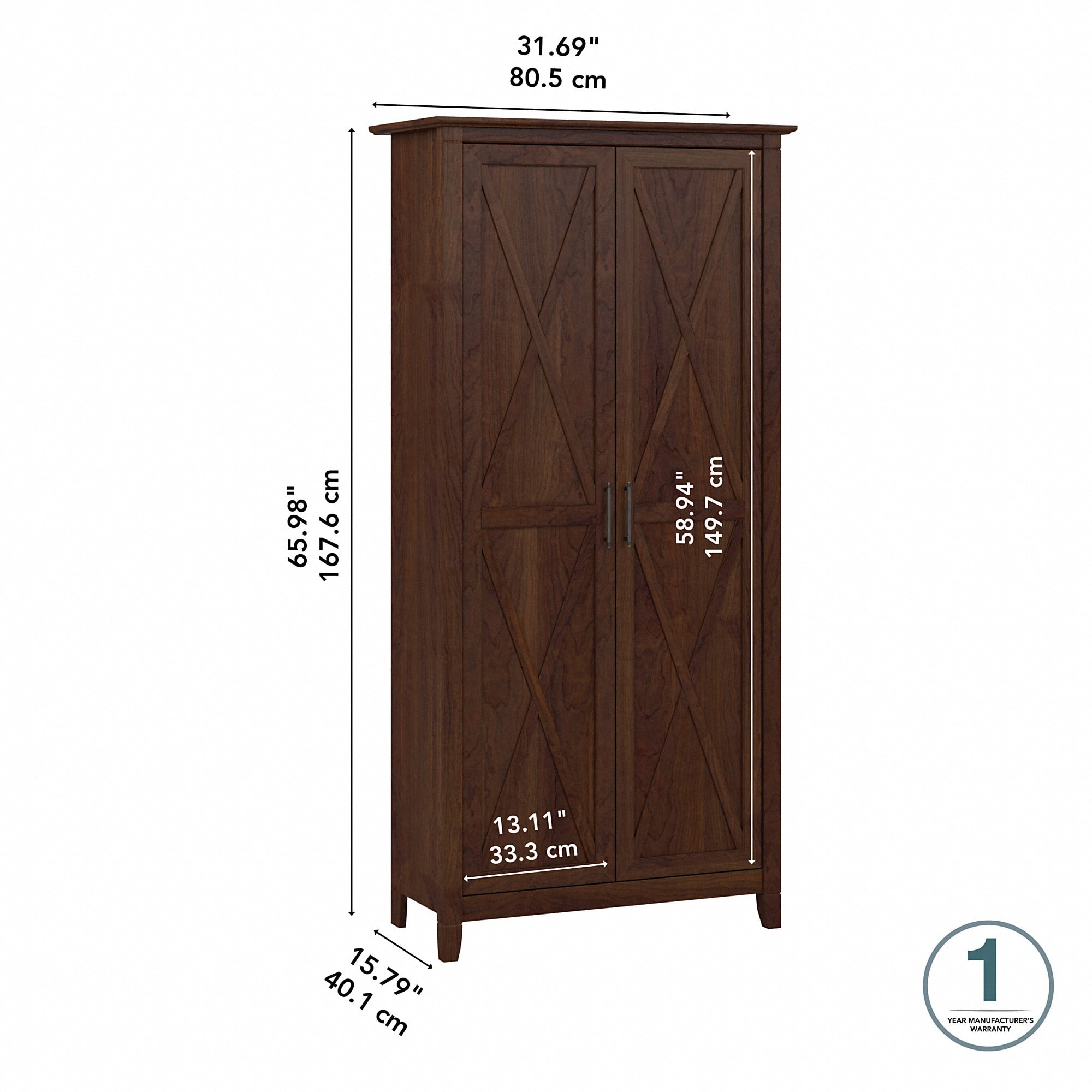 From Bush Furniture’s Key West Collection, this Tall Bathroom Storage Cabinet with Doors in Bing Cherry is perfect for your organization needs. Measuring 32″W x 16″D x 66″H, this piece of furniture offers an ideal storage solution in any home. With 2 doors attached on smooth Euro-style hinges, you can quickly access bathroom supplies, cleaning materials or any other stored item with ease. Tested and approved to meet or exceed industry standards, this accent cabinet withstands years of use. Cabinet features 2 fixed shelves and 3 adjustable shelves with 25 pounds of weight capacity each. To accommodate bulkier items like hardcover books, binders or photo albums, simply move the adjustable shelves up or down. With attractive edge detailing and tasteful pattern accents, this versatile storage cabinet adds a stylish touch to your bedroom, living area, office space or entryway. At Bush Furniture, we’ve been serving our customers nationally for over 60 years. Our mission is to offer quality, affordable furniture with the best customer service in the business.