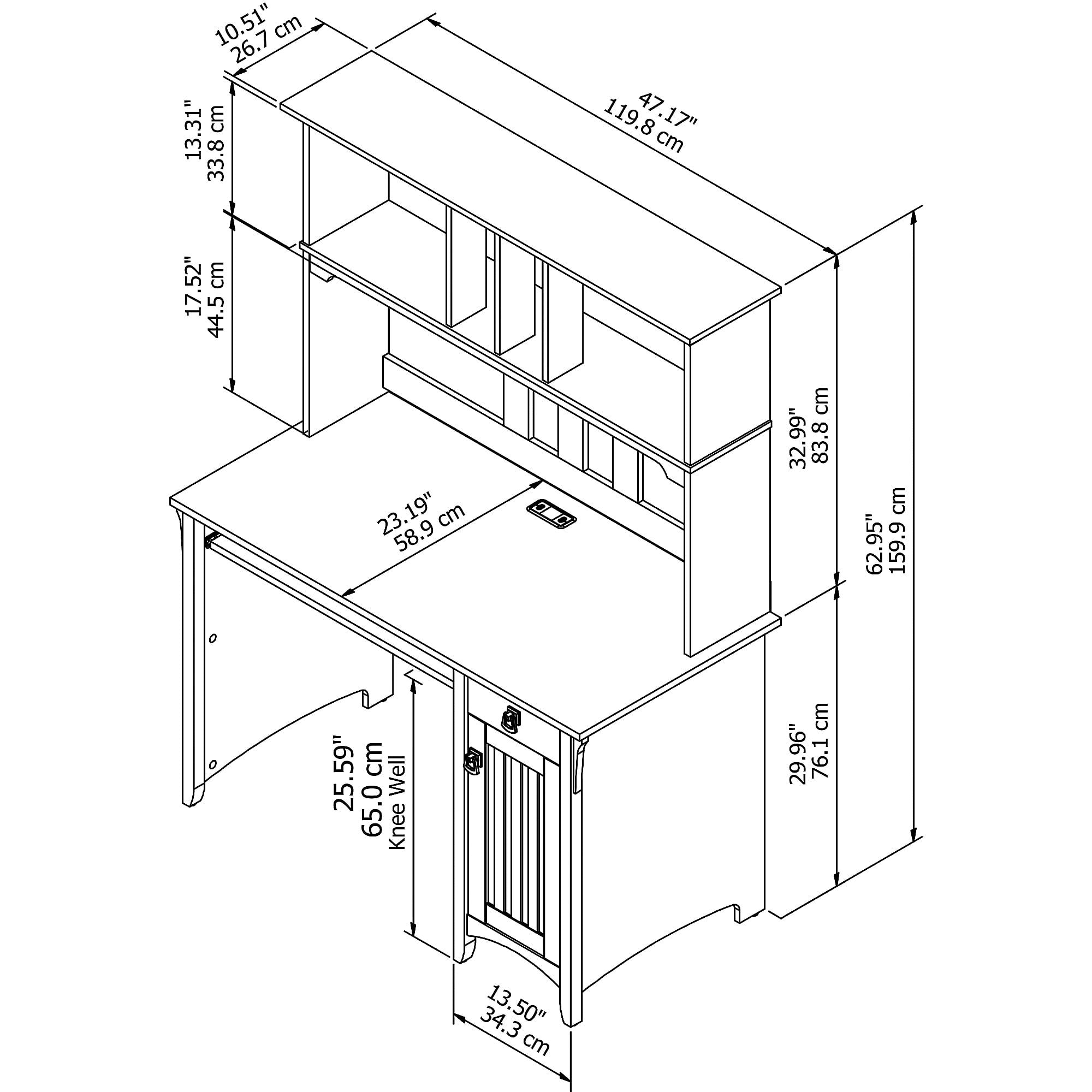 Compact 48 W x 23 D design presents an ideal computer desk for small spaces Desktop includes wire management to keep your work area free from cords and cables Durable work surface supports a computer, books and more. Convenient pull-out shelf accommodates a keyboard or laptop; vertical storage cabinet and box drawer keep supplies close by Open storage on Hutch provides plenty of room to display books, photos, decorations and more Distressed finish options include a cream colored Antique White, Pure White with Shiplap Gray, Cape Cod Gray, Vintage Black, Ash Brown, Reclaimed Pine and Driftwood Gray Tapered legs, curved base rails and vertical accents inspired by timeless Mission style Complete your workspace with a coordinating Office Chair, File Cabinet, Storage Cabinet and Bookcase (sold separately)