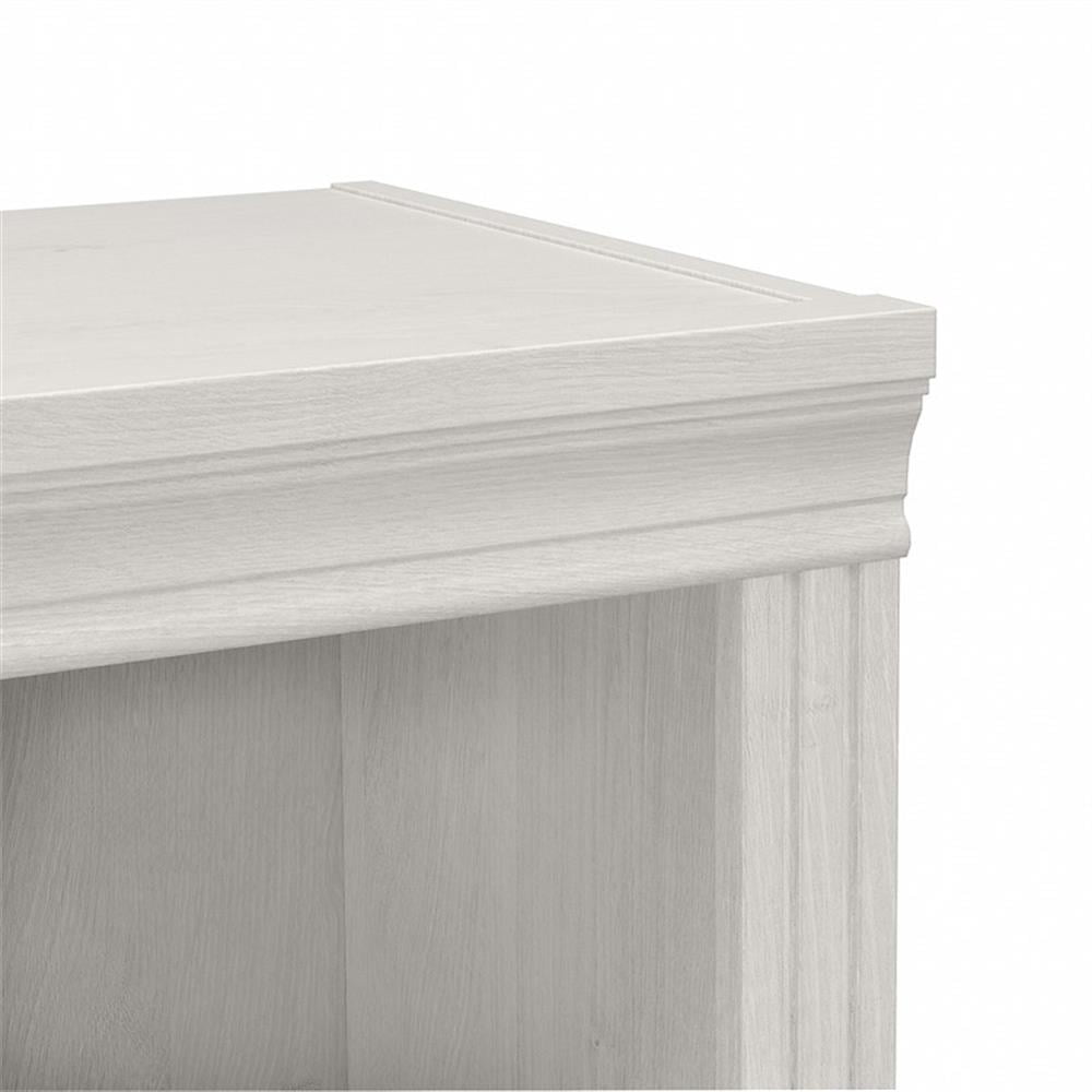 Enjoy the refined elegance of timeless traditional styling while showcasing your favorite books and decorations with the Bush Furniture Saratoga Tall 5 Shelf Bookcase Set. A perfect choice for virtually any office or private study, these matching Bookcases both feature three adjustable shelves for flexible storage space and two fixed shelves for strength and stability. Each shelf supports up to 25 pounds, so you can organize your personal library and display larger items with confidence. Hardware is included to safely anchor the 30W x 13D x 72H bookshelves to a wall. The tall bookshelf set’s classic appearance is enhanced by decorative top, base and side rail detailing. This Tall Bookcase Set has been tested to meet ANSI/BIFMA standards for safety and performance and is backed by the Bush Furniture 10 Year Manufacturer’s Warranty. See the full collection for coordinating items available. Features: Matching 30W x 13D x 72H Tall 5 Shelf Bookcase Set presents a practical storage solution with timeless traditional style Each Bookcase has three adjustable shelves for books and decorations of various sizes; two shelves are fixed for stability Each shelf supports up to 25 pounds Position the bookshelves side by side to create a large storage wall or separately to showcase items in different areas of your home Tall bookshelf set’s decorative top, base and side rail detailing brings a classic charm to any work or living space Available in your choice of Harvest Cherry, Linen White Oak and Modern Gray finishes Tested to meet ANSI/BIFMA quality standards for safety and performance Backed by the Bush Furniture 10 Year Manufacturer’s Warranty Complete your personal workspace with a coordinating Computer Desk, Office Chair and Lateral File Cabinet (sold separately) Specifications: Product Dimensions: 5 Shelf Bookcase: 29.88″W x 12.60″D x 71.65″H Product Weight: 140.6 lbs