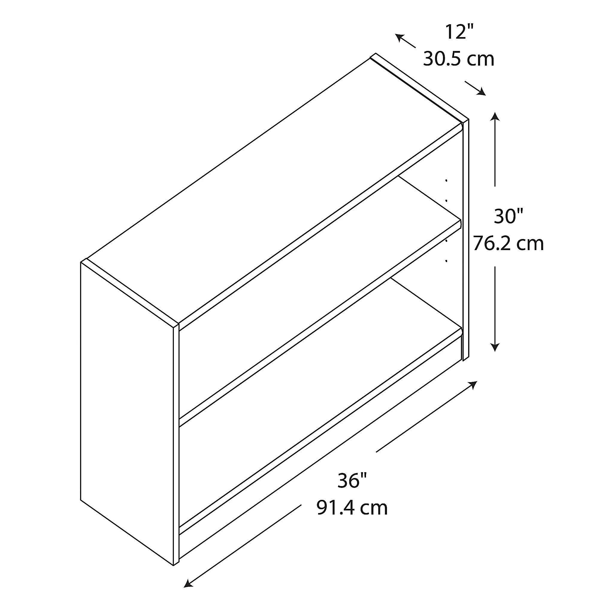 Each 37W x 12D x 30H Low Bookshelf offers a versatile storage and display solution for the home or office Durable 1-inch thick center shelf resists sagging over time; each shelf supports up to 50 pounds One adjustable shelf on each bookcase accommodates larger items like binders and photo albums Tip Guard(TM) safety features include a stable design and wall attachment hardware Smooth side panels allow you to seamlessly place 2 or more bookshelves side by side for added home or office storage Choose from a variety of finish options to find the perfect Small Bookshelf Set to match your current decor Bush Furniture’s commitment to safety includes rigorous testing that meets or exceeds ANSI/BIFMA standards Backed by the Bush Furniture 1 Year Manufacturer’s Warranty