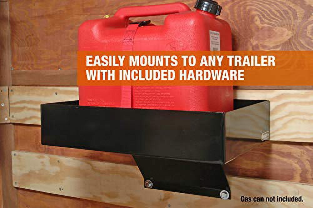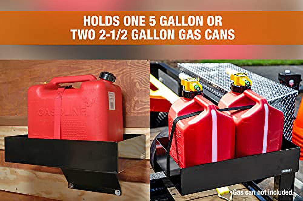Holds One 5 Gallon Or Two 2.5 Gallon Polymer Gas Cans Includes Strap To Secure Cans Can Be Mounted On Open Or Enclosed Trailer Constructed From Black Powder Coated Steel For Maximum Corrosion Resistance