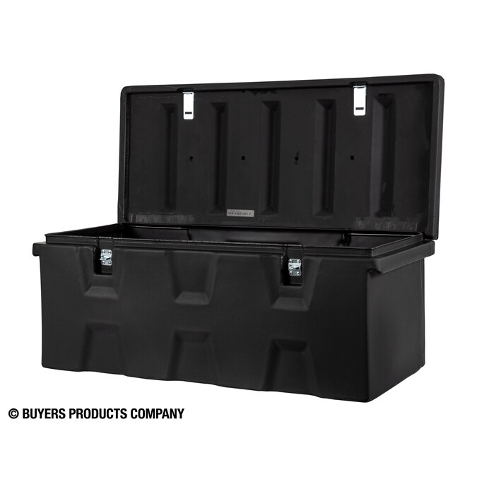 Buyers Products Black Poly All-Purpose Chest gives you increased durability in a lightweight package with dent- and rust-resistant, molded high-density ribbed polyethylene construction. The chest is designed to mount securely to your trailer frame. It helps protect its contents from weather and theft with a double-wall lid and a hinge with zinc-plated hasp (fits standard padlocks).