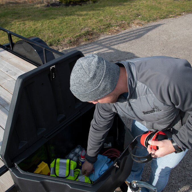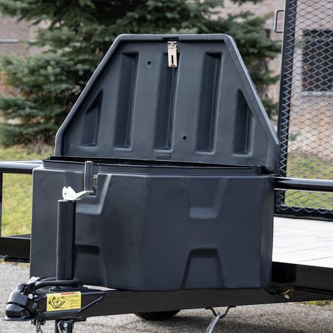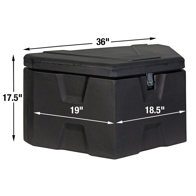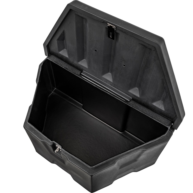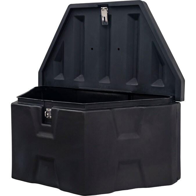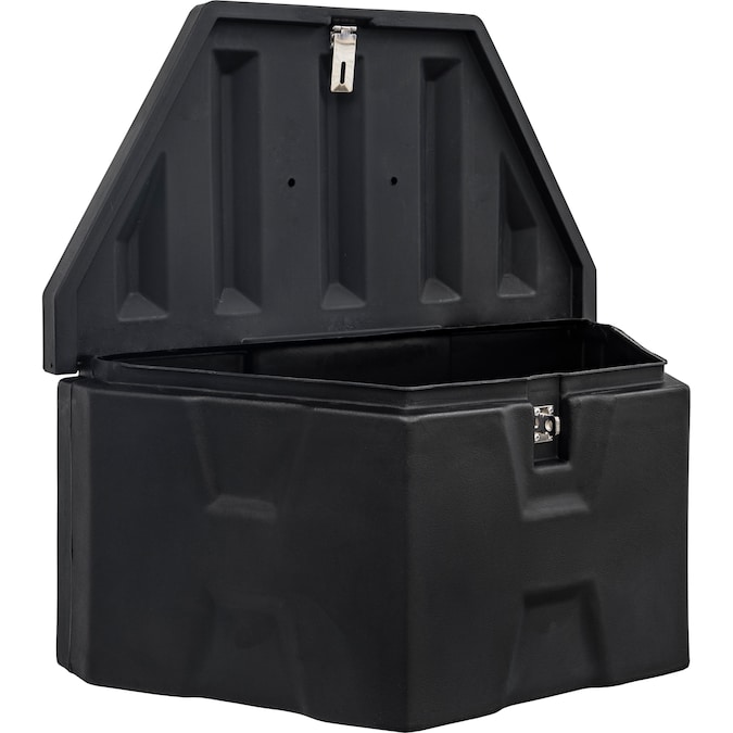 The Black Poly Trailer Tongue Truck Tool Box gives you increased durability in a lightweight package with its dent- and rust-resistant molded, high-density ribbed polyethylene construction. It’s designed to provide a secure fit when mounting to the front of an A-frame trailer. The chest helps protect your equipment with a double-walled lid and weather resistant zinc-plated hasp (fits standard padlocks).