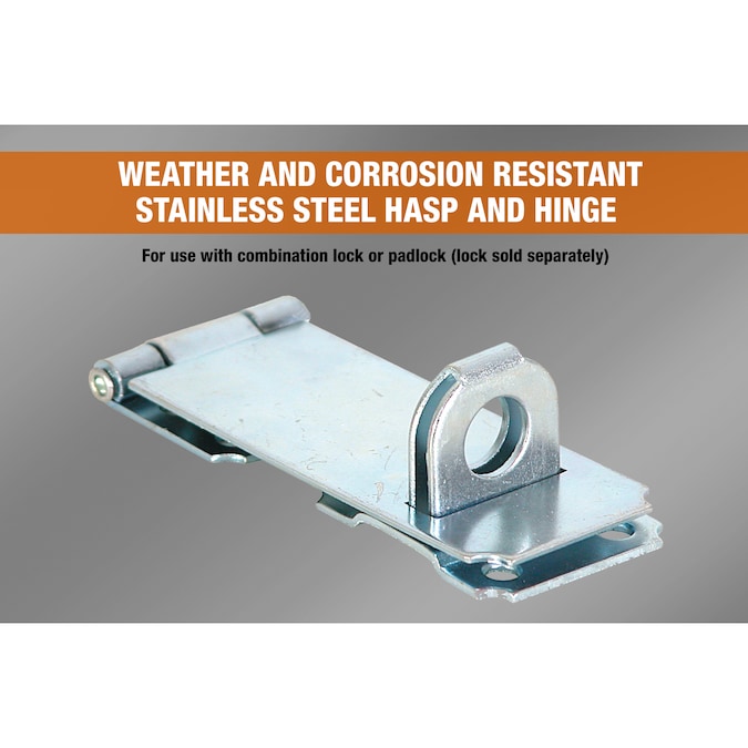 - Corrosion resistant zinc-plated hasp fits standard padlocks