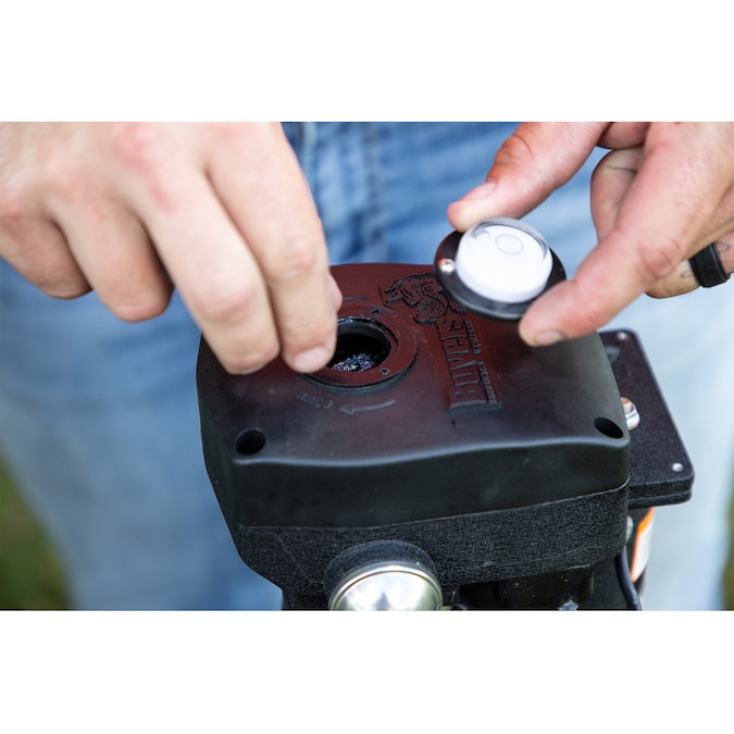 The 12 Volt Electric Jack from Buyers Products is a convenient electric way to raise, lower, and level your parked RV or trailer. It has a 48 in. pre-wired trailer connector power supply for quick, plug-in operation. Mounted into an A-frame coupler, the jack can power 3,500 lb of tongue weight up to 18 in., with another 6 in. available by releasing a manual drop leg extension. The jack features a built-in leveling gauge and an LED night light. Its oversized zinc-plated foot prevents divots. A corrosion-resistant black powder-coated finish and weather-sealed switches protect the jack from the elements. Should you need it, a manual crank can be used in place of electrical operation.