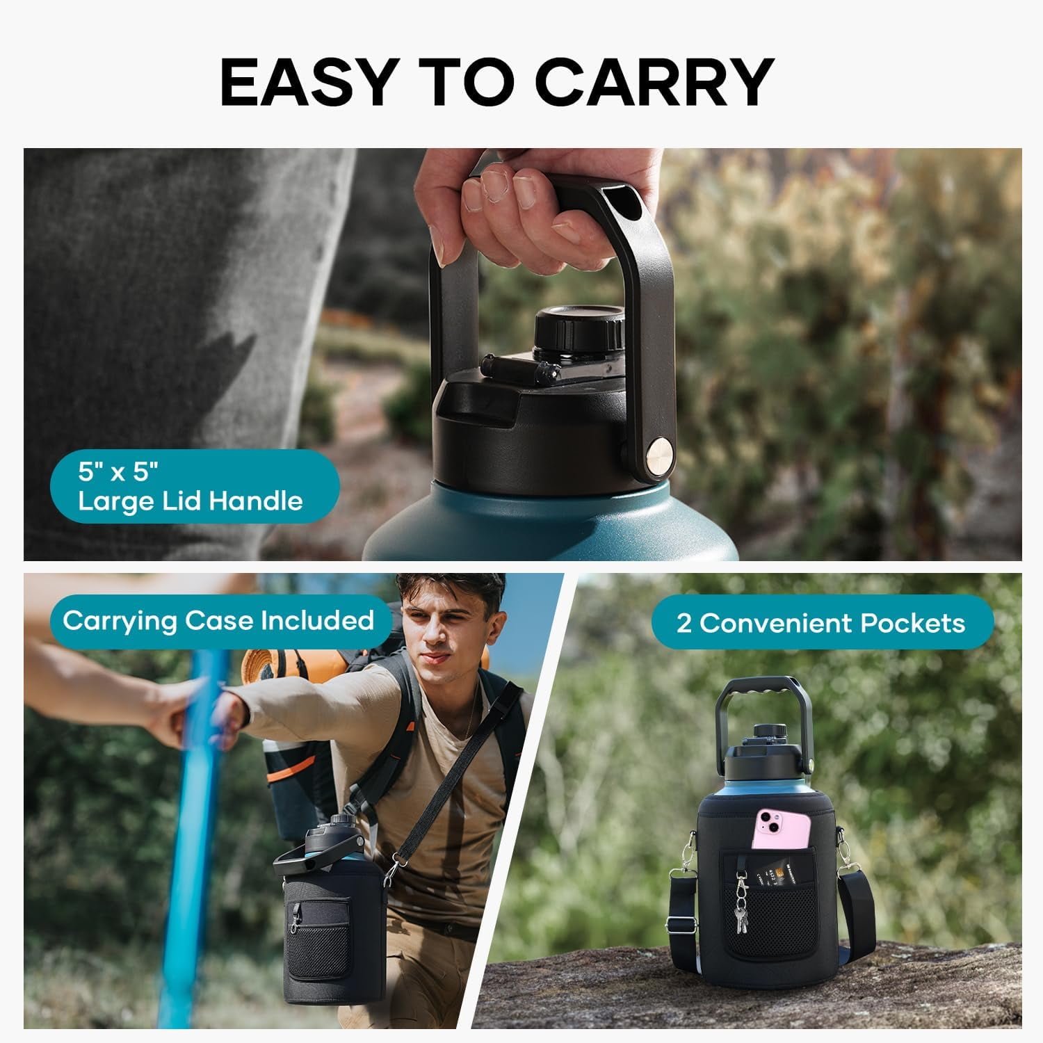 1 Gallon Mega Capacity: No more dehydrations on the road, this super large 128 oz jug allows you to enjoy sufficient cold water to stay refreshed and beat the smoldering heat throughout the day and you’ll have enough to share. Larger capacity, way more fun. Vacuum Insulated : BUZIO gallon bottle is built with double wall stainless steel applying patented ThermoArmour technology. Keeps cold for 48 hours and hot 24 hours, so the last sip is as refreshingly cold or reassuring warm as the first. One-hand Use: The leak-proof screw cap is accessible with one hand; upgraded wide handle enhances the comfort and portability of using the jug; ice filling and bottle grabbing are made easy with the wide-mouth 3.5 inch lid and BUZIO powder-coat sweat-free technology. LEAK-PROOF A& NON-SLIP: The spout cap is equipped with a leak-proof silicone ring and utilizes advanced sealing technology, ensuring 100% leak-proof performance. Super Safe Material: Made of 100% non-toxic BPA-free plastics & durable food-grade 18/8 stainless steel, the water flask is resistant puncture, oxidation, and flavor transfer with extended lifespan.