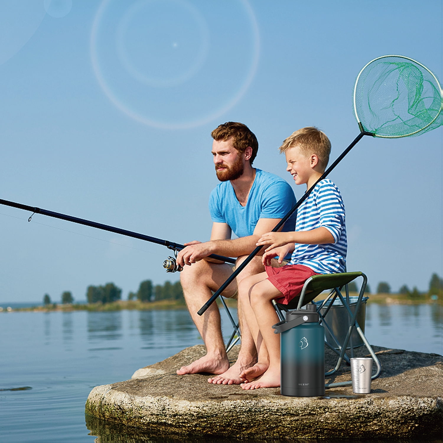 BUZIO 1 Gallon Insulated Water Bottle, 128 oz Stainless Steel Vacuum Metal Water Jug,Large Water Bottle with 2 Beer Cups for Gym,Hiking,Camping,Travel