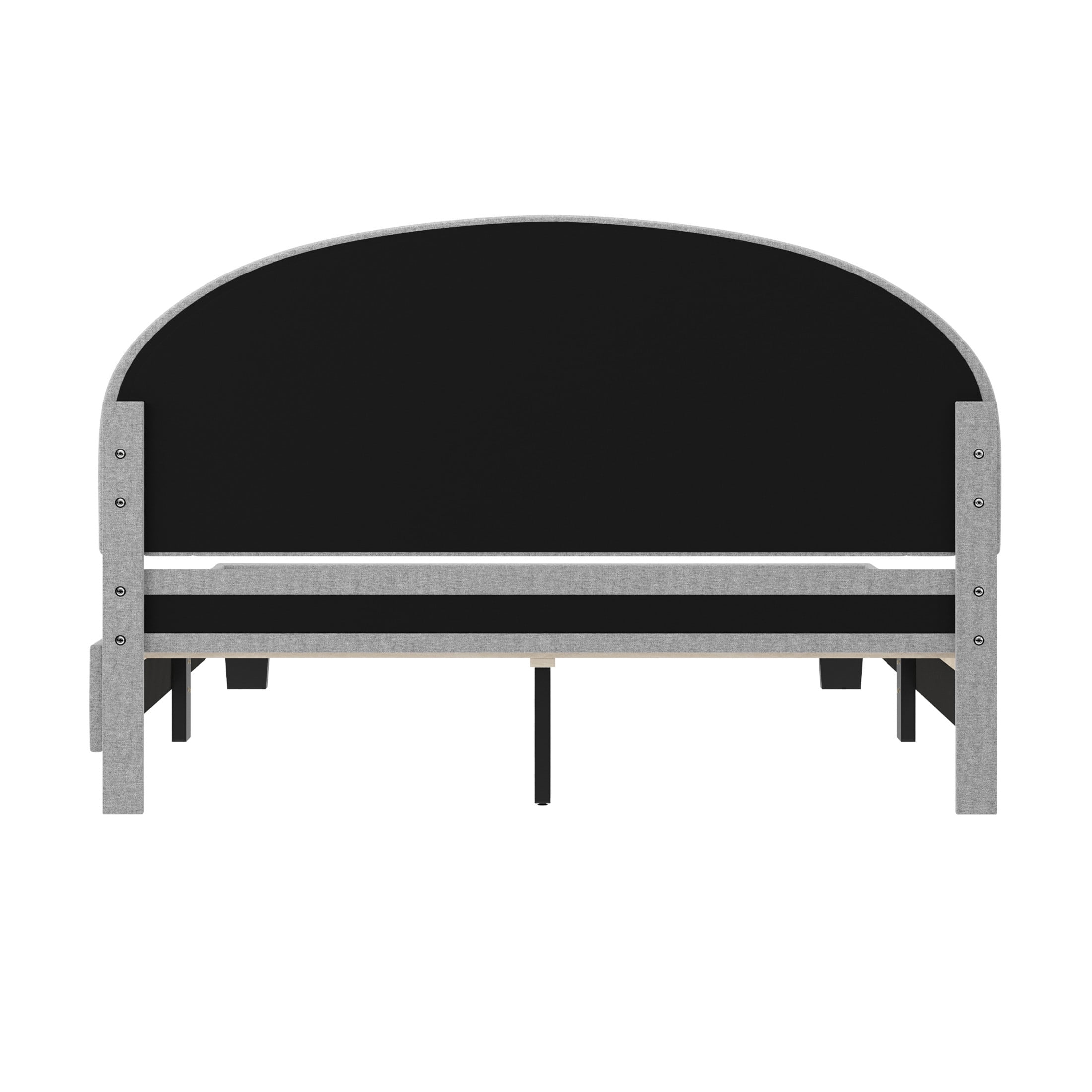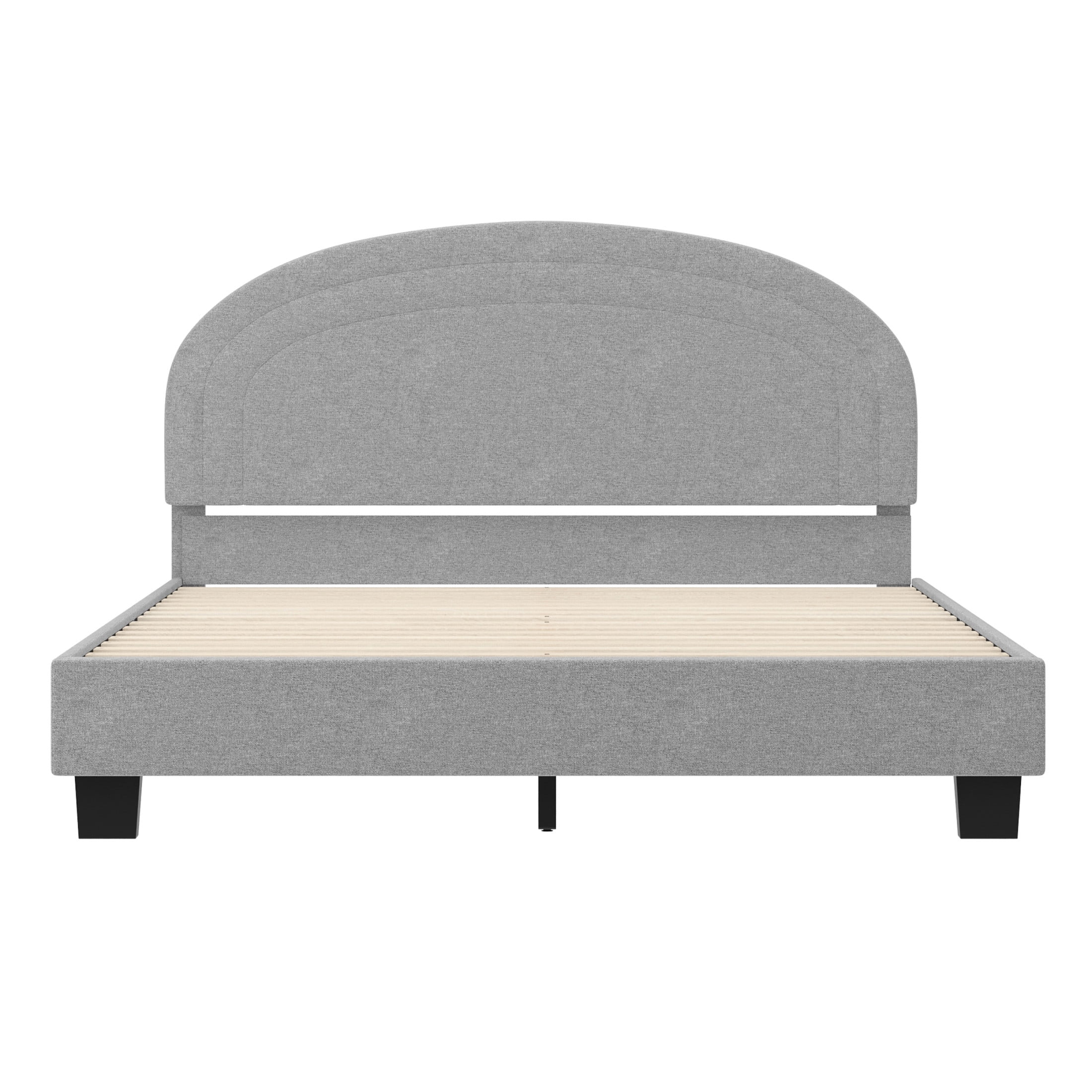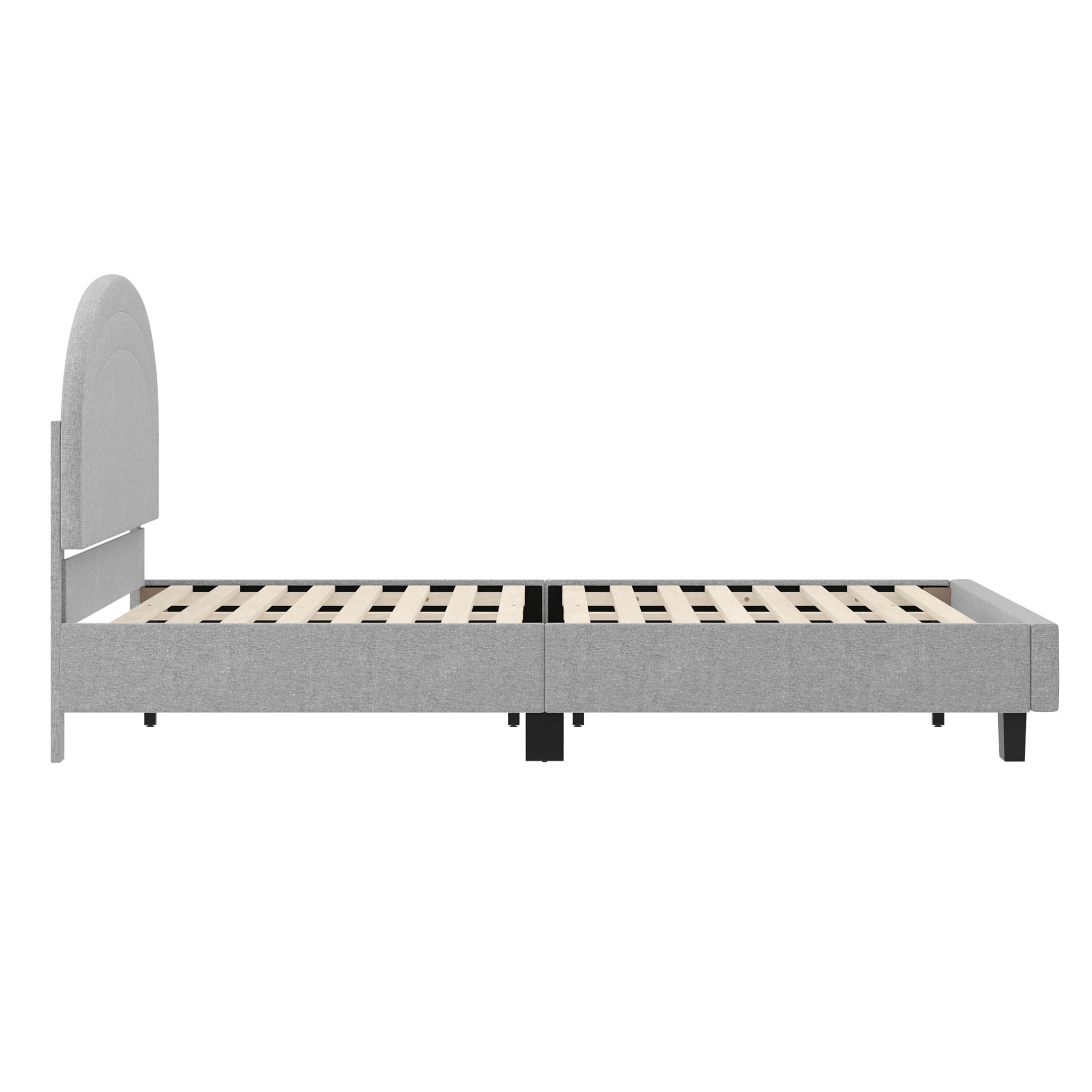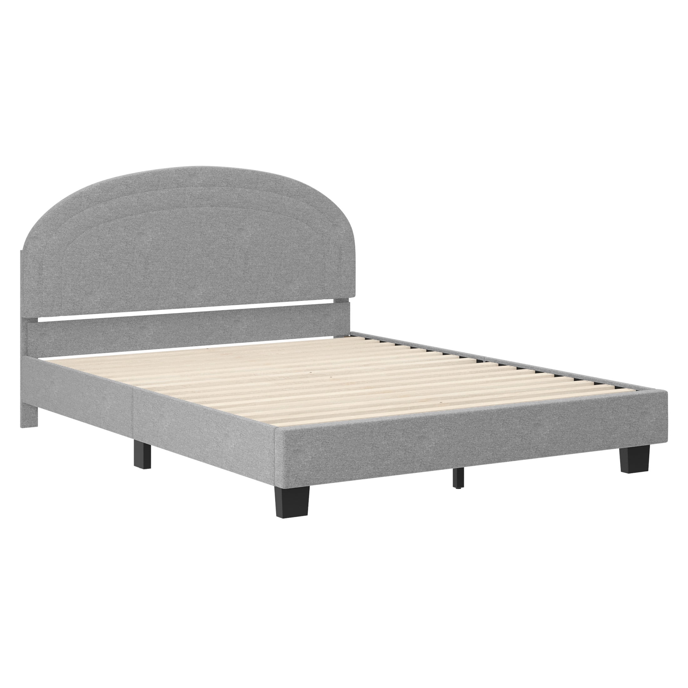 Buzz & Bloom Kids Full-Size Platform Bed with Curved Channel Stitched Headboard, Gray Boasts a gently rounded headboard adorned with curved channel stitching details Durable wood slat foundation No box spring needed Features approximately 4″ of underbed clearance for convenient storage space Easy to clean – lightly brush or vacuum All tools and step-by-step instructions are included for a hassle-free assembly Full-size bed: 58.5″W x 79.75″D x 38.5″H