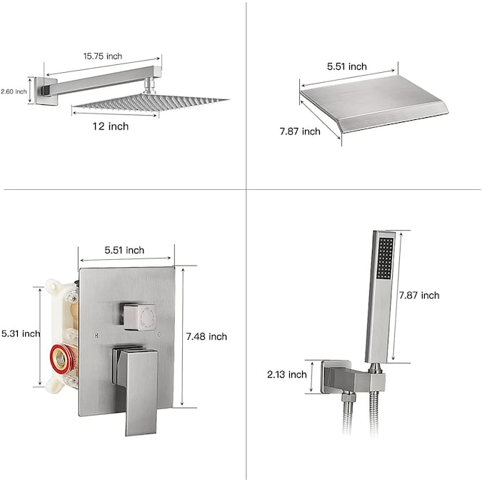 - Shower Head Width (Inches): 12